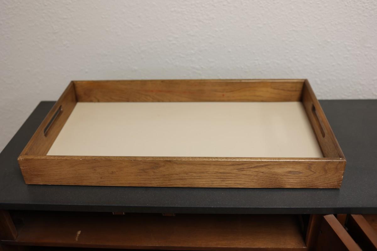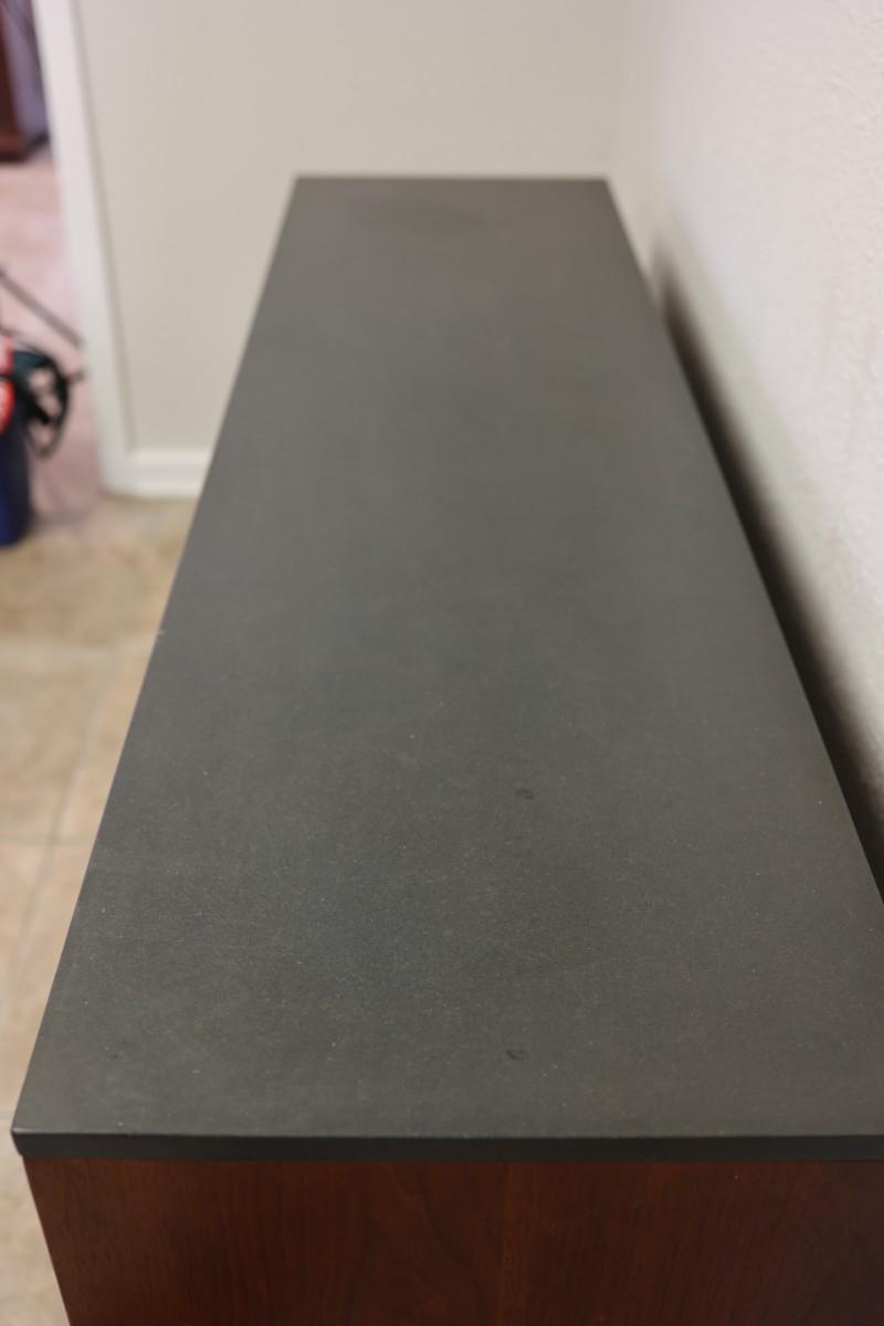 Beautiful solid walnut buffet with a slate top, dated 1964. Features a slide-out tray in the top left compartment. Well-crafted and functional.