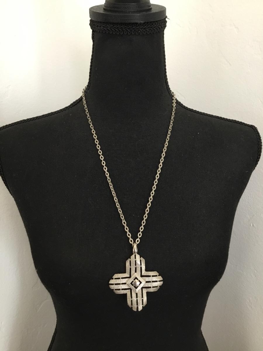 Mid century brushed, silver, toned, cross, pendant, , statement, necklace