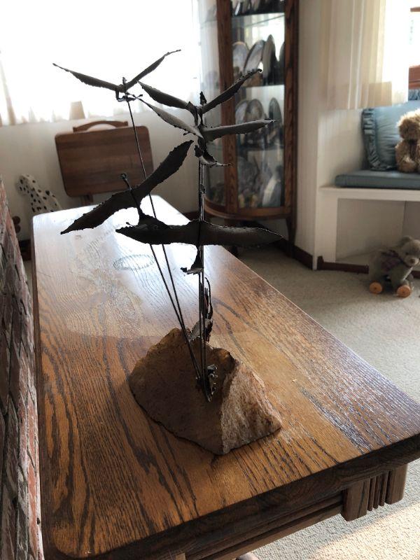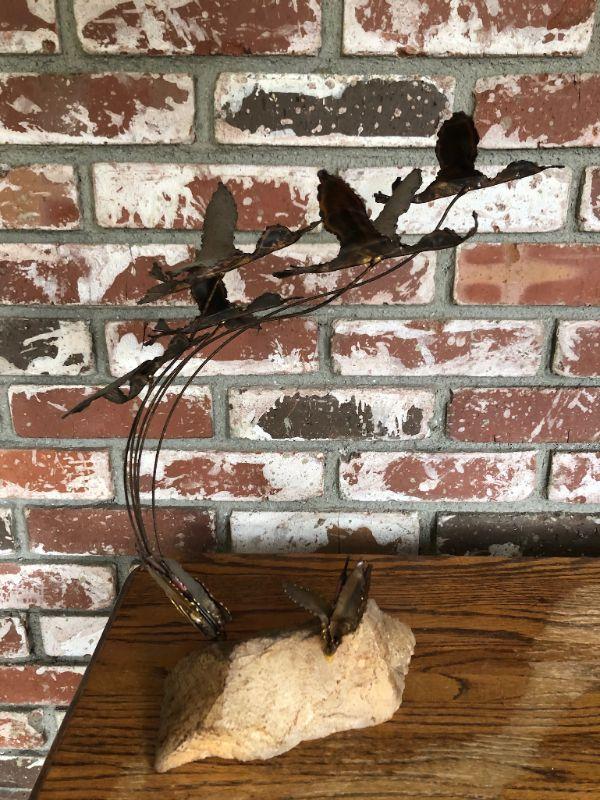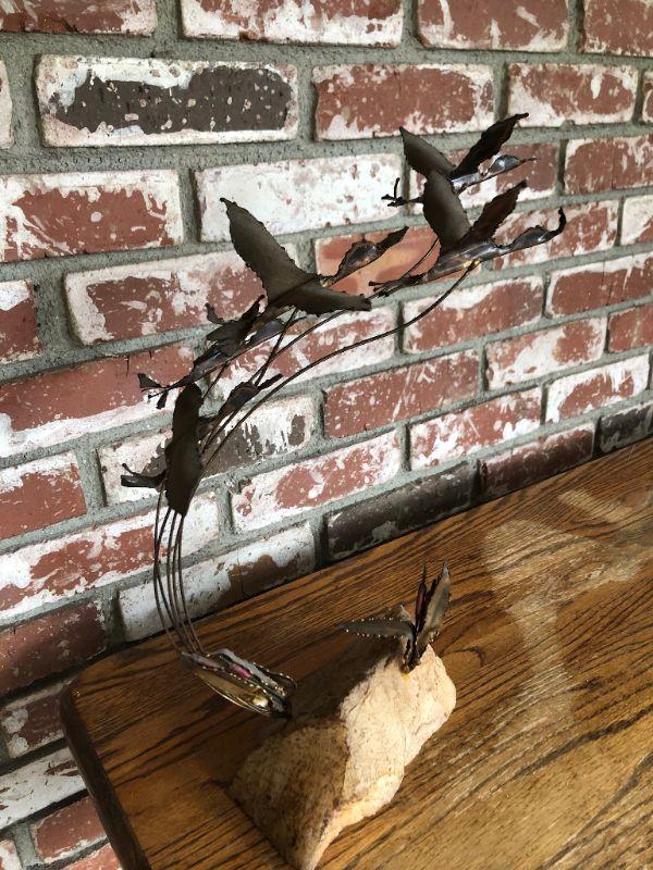 Mid Century Brutalist Brass Metal Flying Ducks Art Sculpture