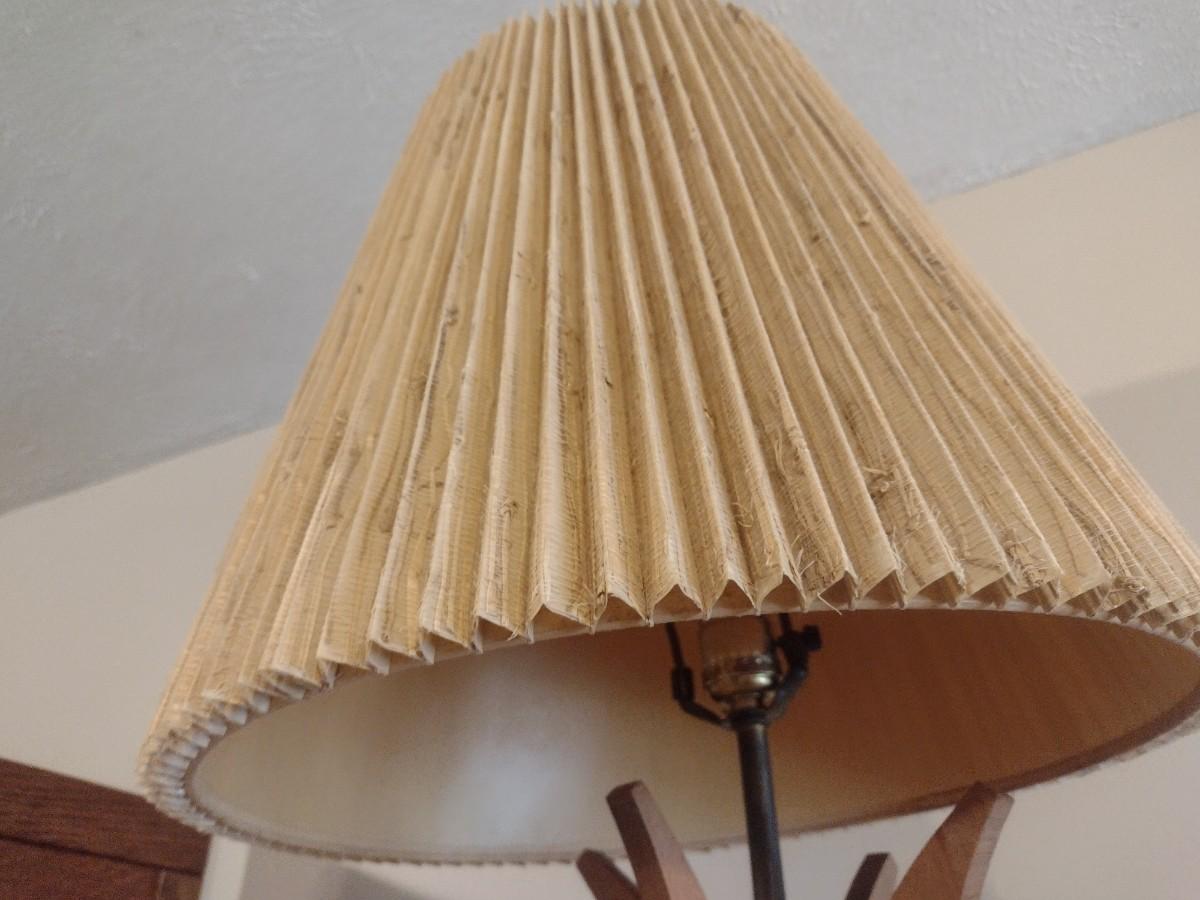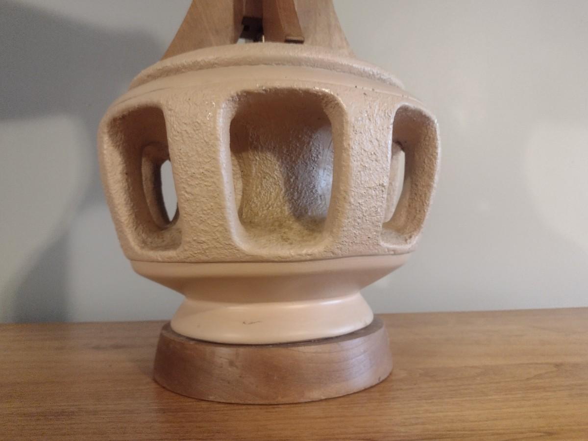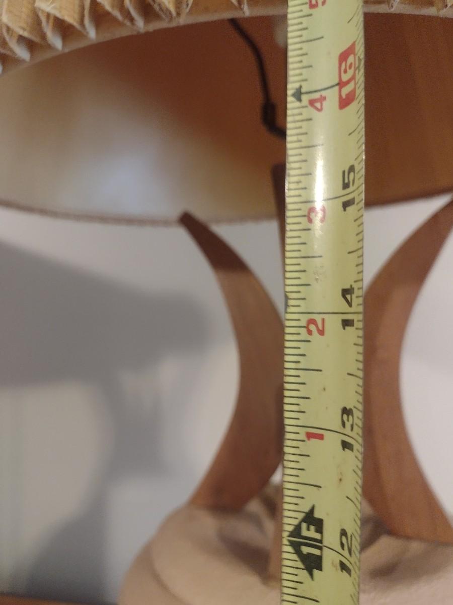 Mid Century Brutalist Chalkware Lamp with Teak Accents and Pleated Lamp Shade
