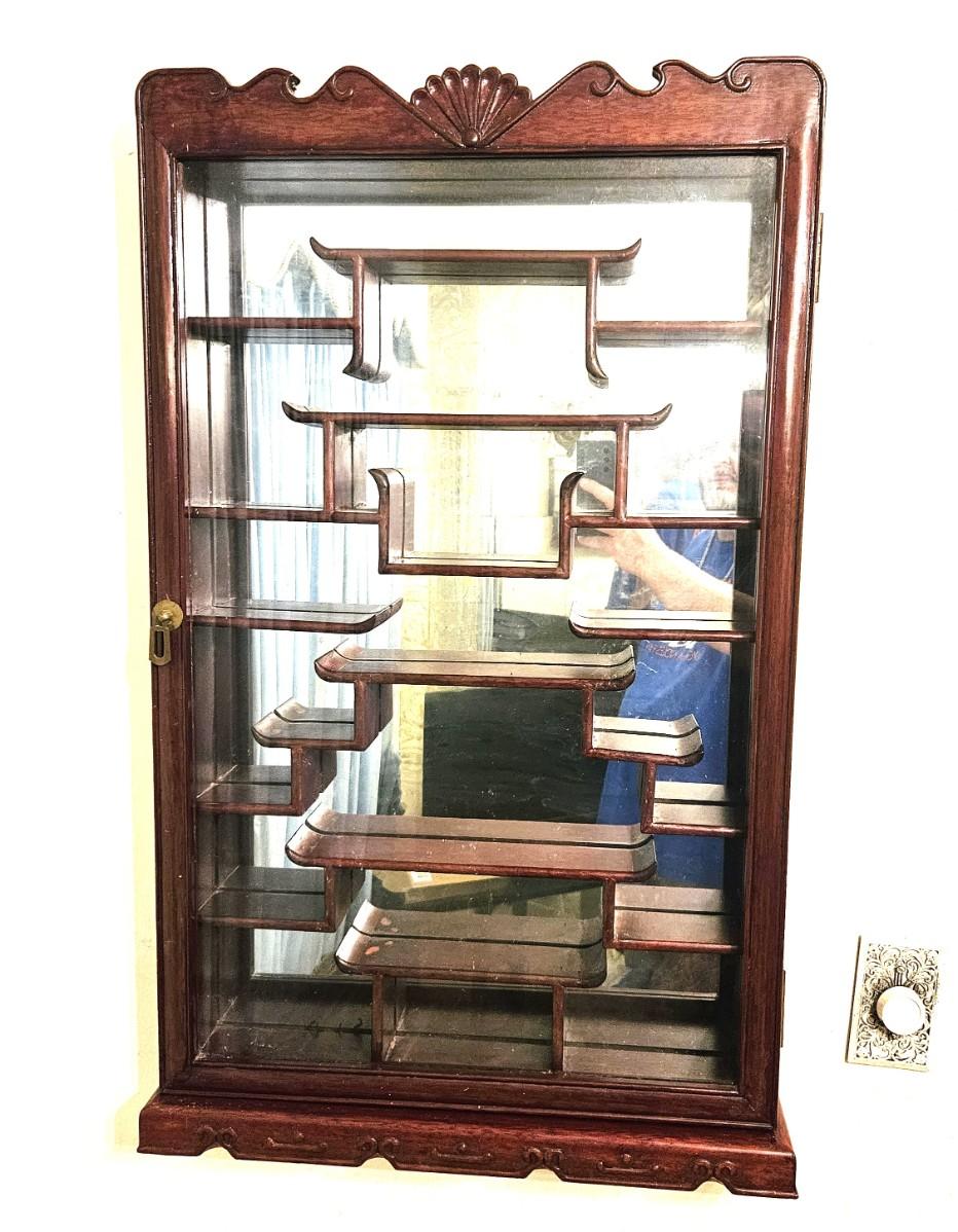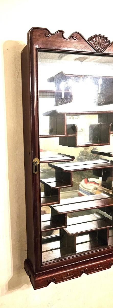 Mid Century Chinese Hardwood Wall Mounted Display/Curio Cabinet