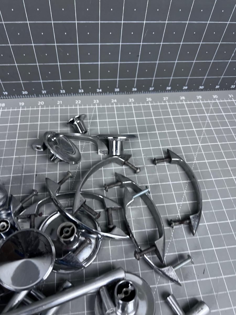 Mid Century Chrome and Brushed Aluminum Drawer Pulls