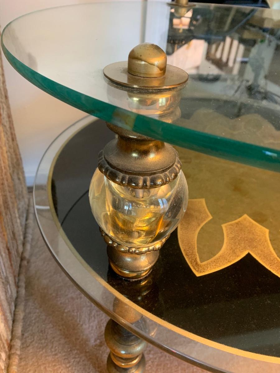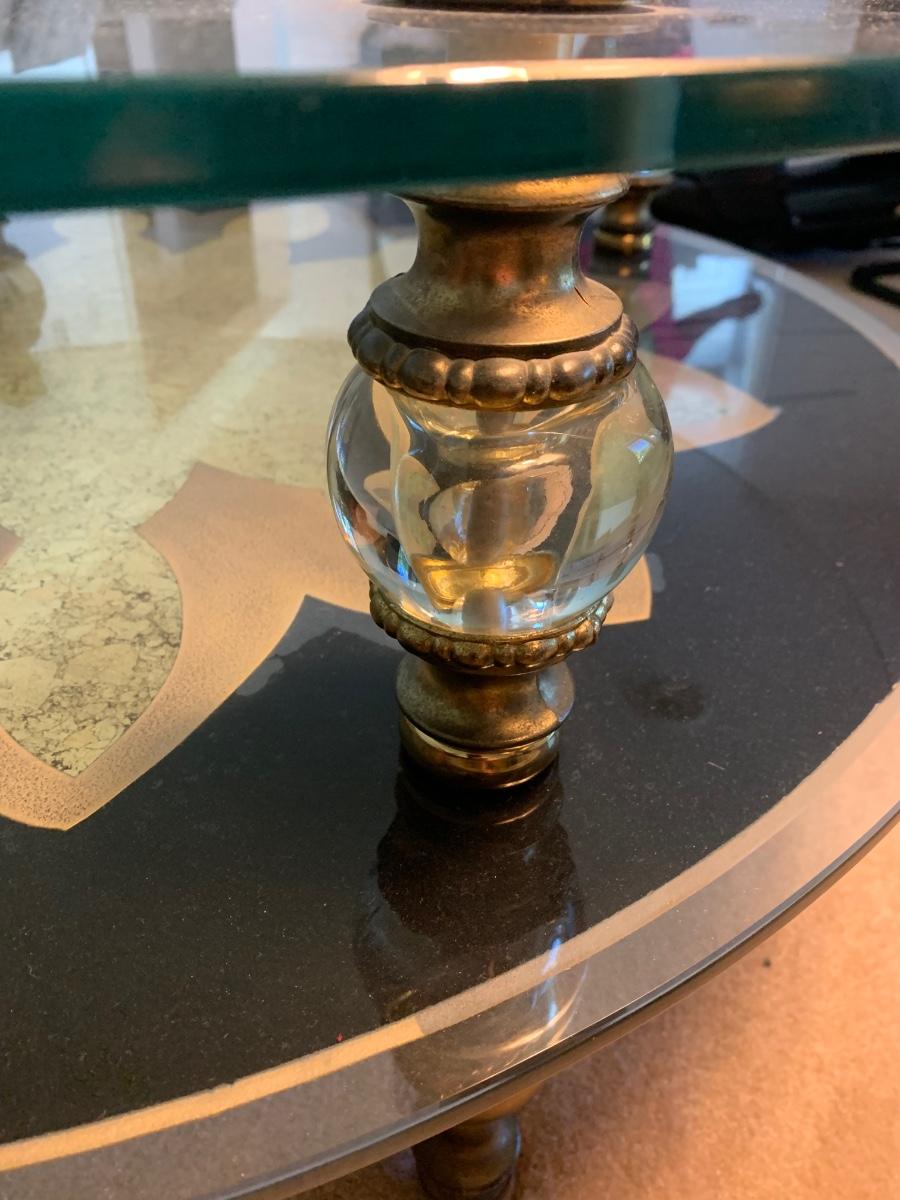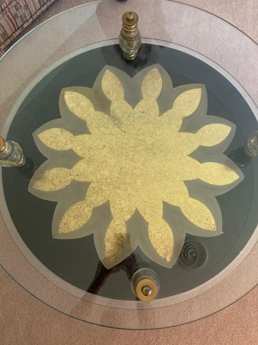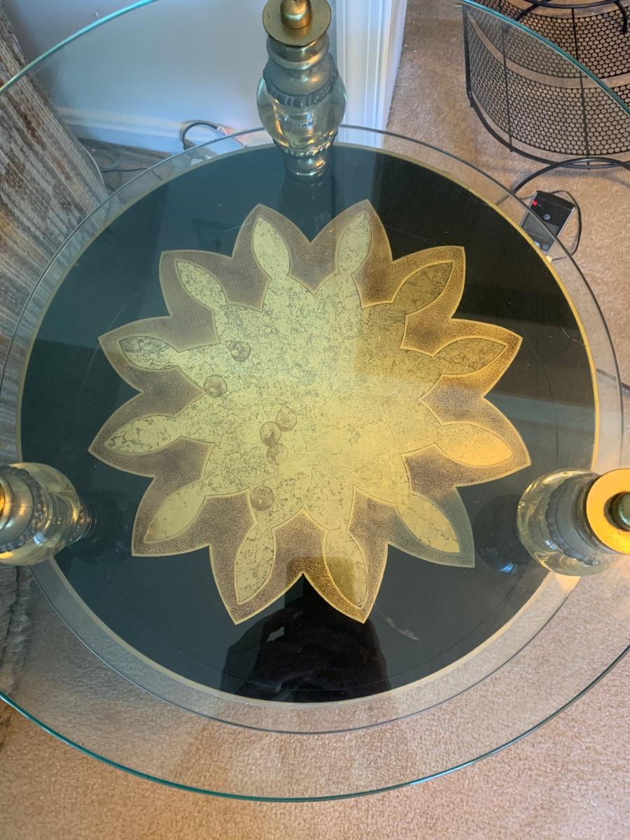 Coffee table is 36" in diameter and Two End Tables measure 22 " in diameter each. .See photos for other measurements, content and condition. One end table has slight discoloration as shown in last photo. Fantastic, groovy set - you will not be disappointed!