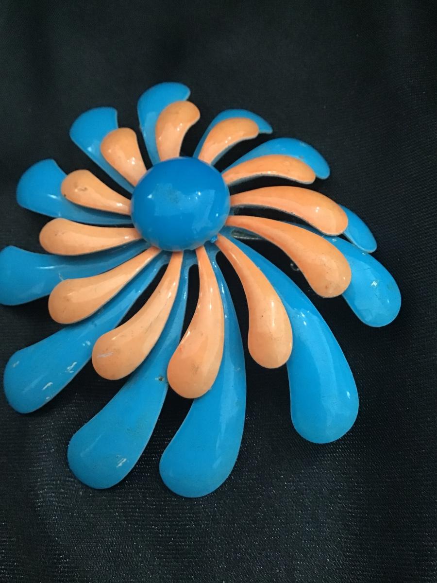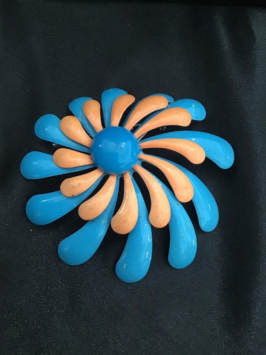 Mid century, coral, orange blue mod brooch