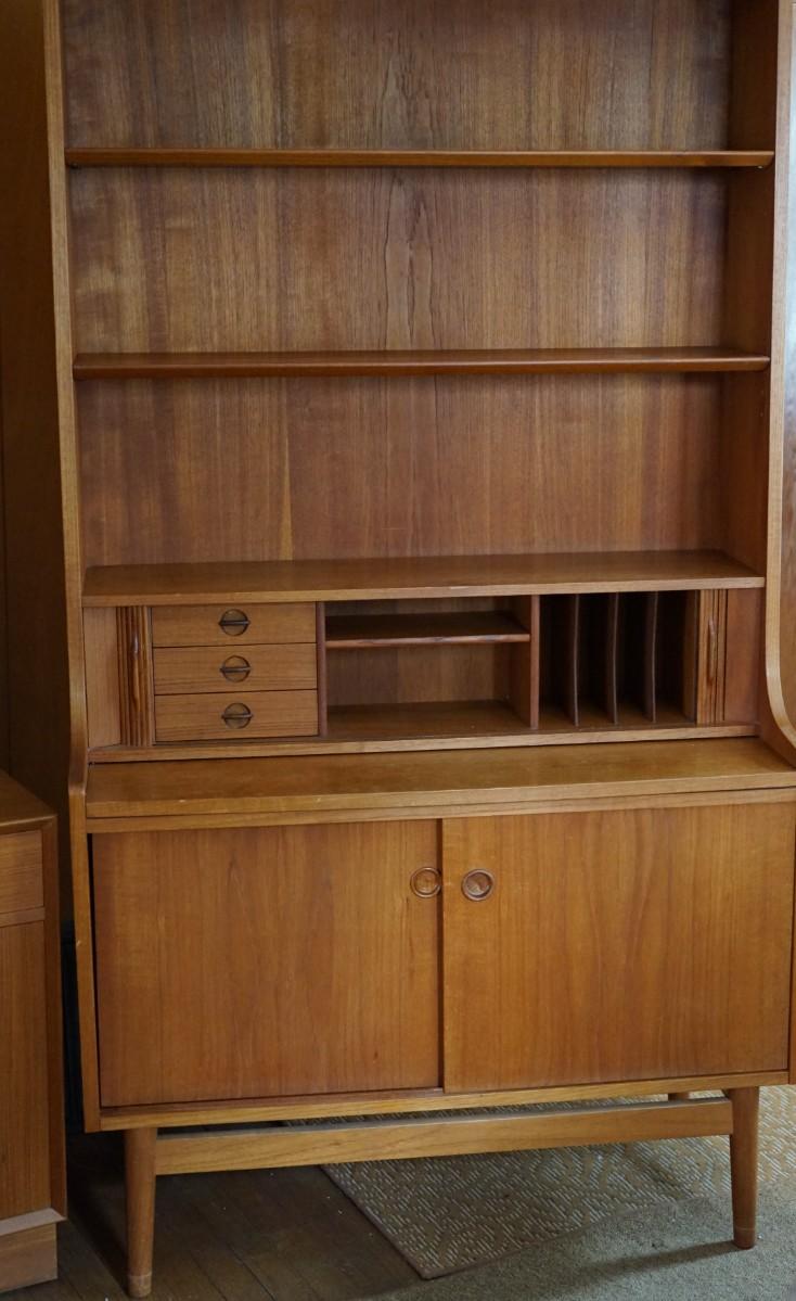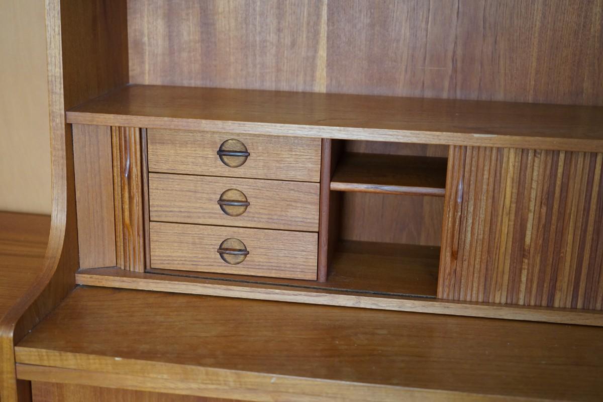 MID CENTURY DANISH TEAK TAMBOUR DOOR SECRETARY DESK BOOKCASE BRANDE MOBELFABRIK