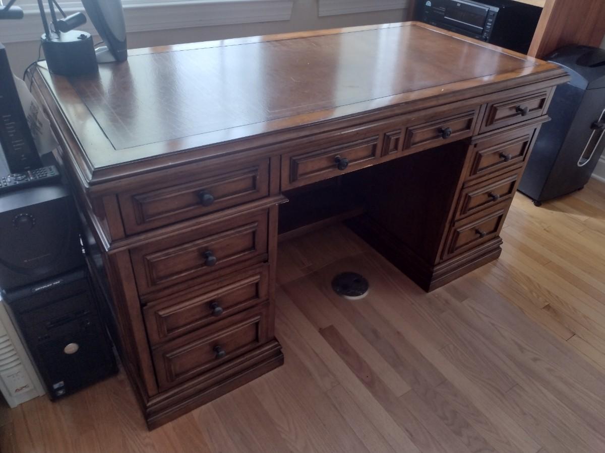 Sligh Mid Century Executive Office Desk with Leather Inlay Top