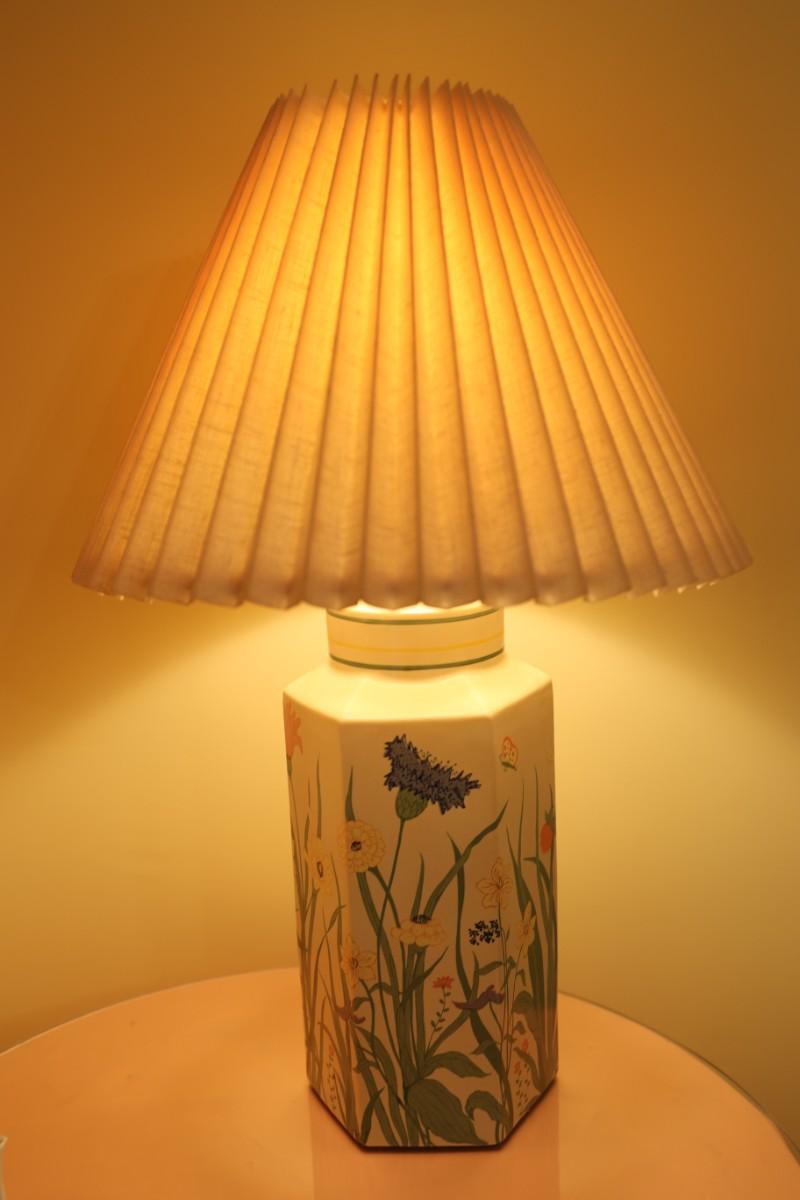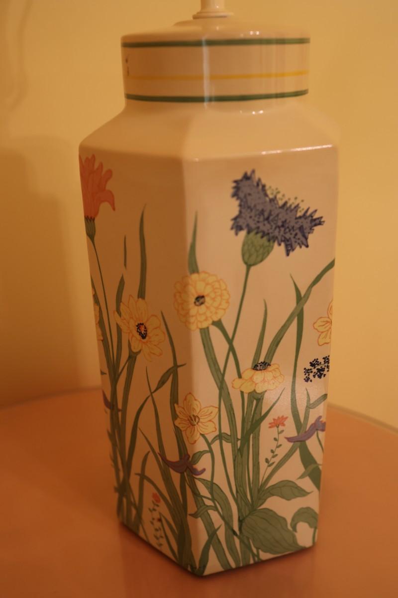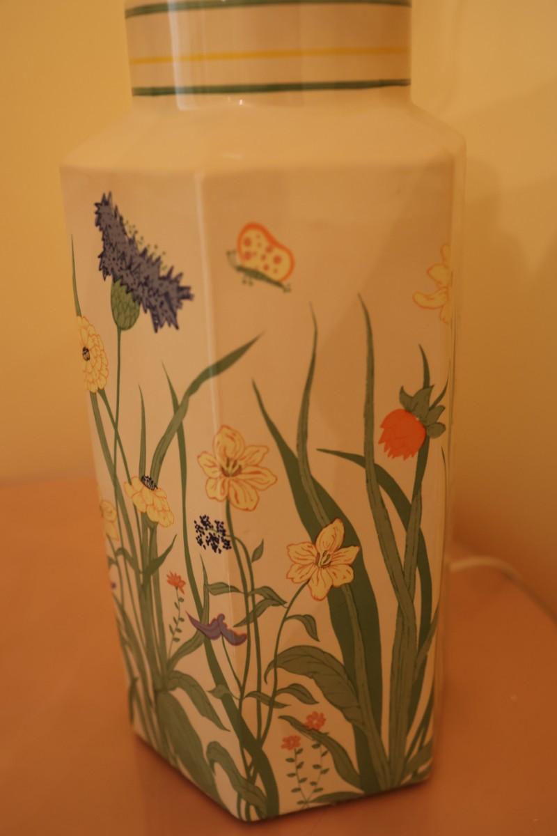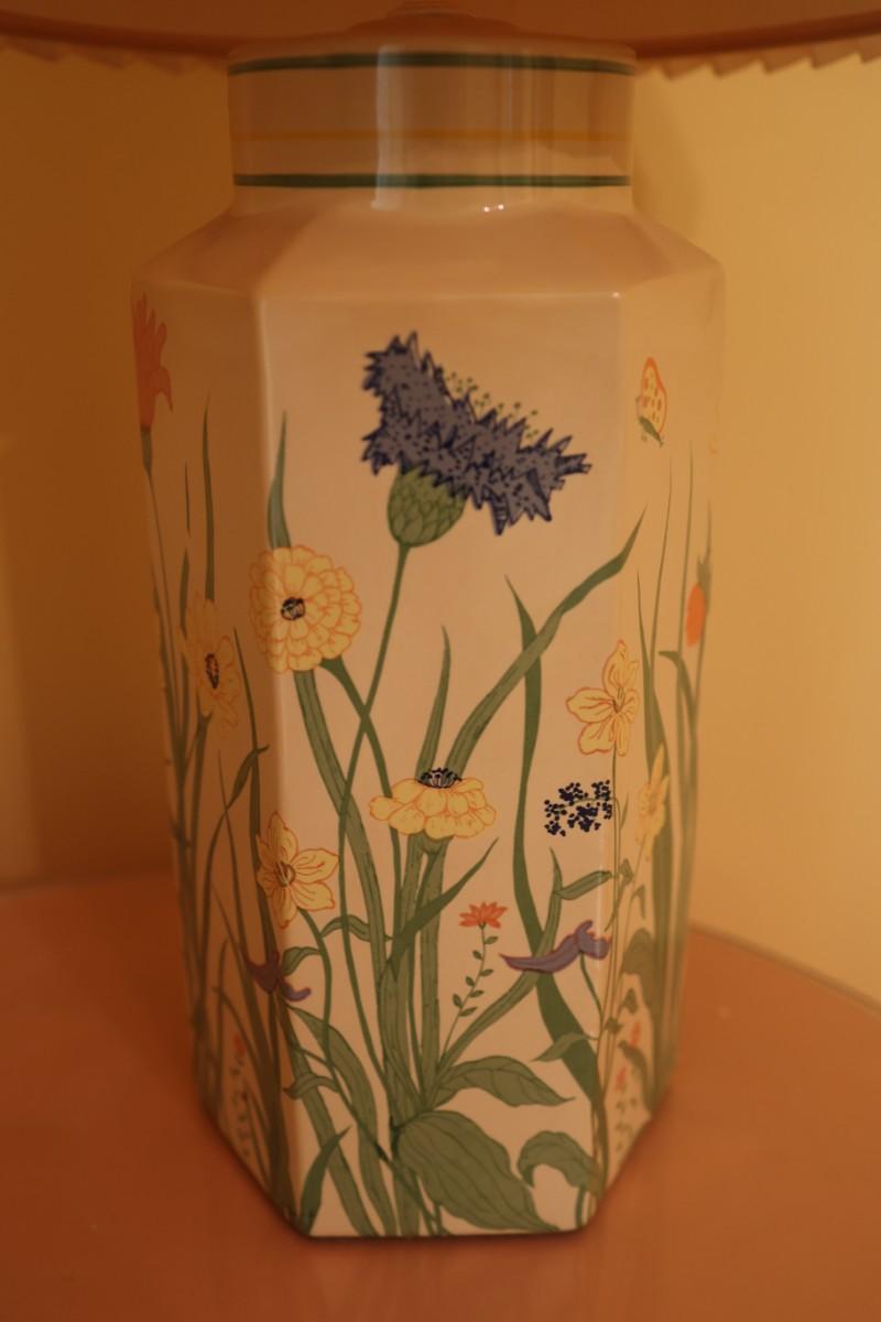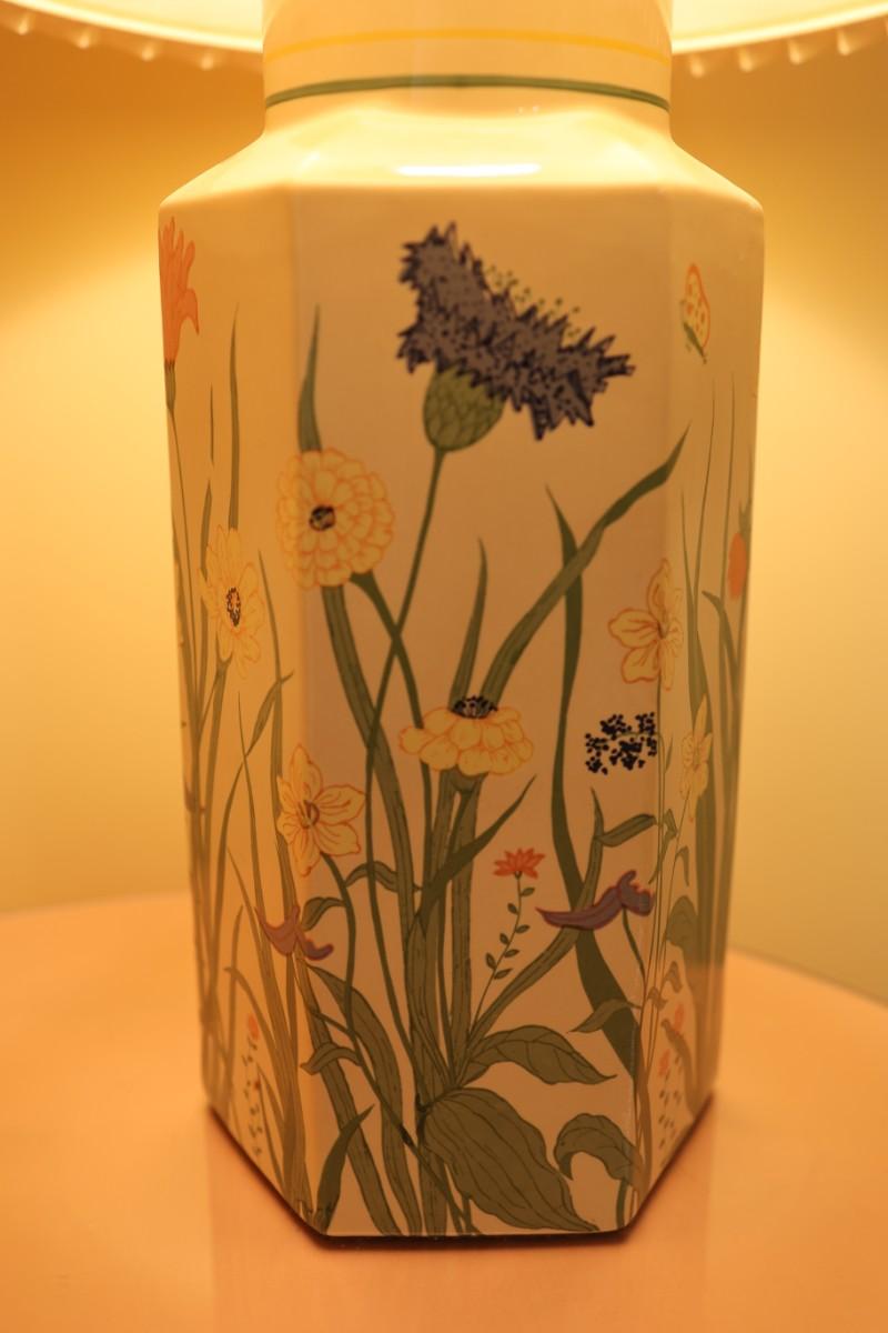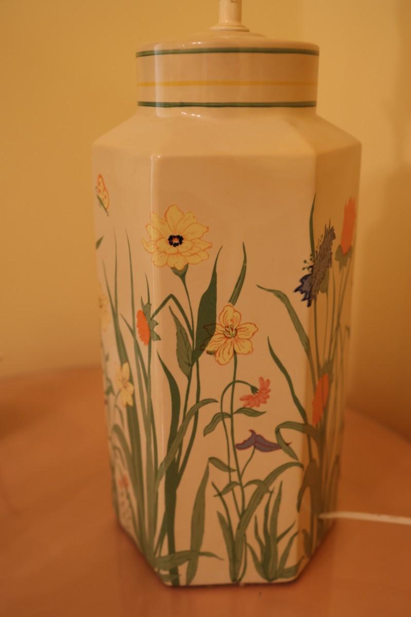 Mid Century Floral Butterfly Ginger Jar Table Lamp