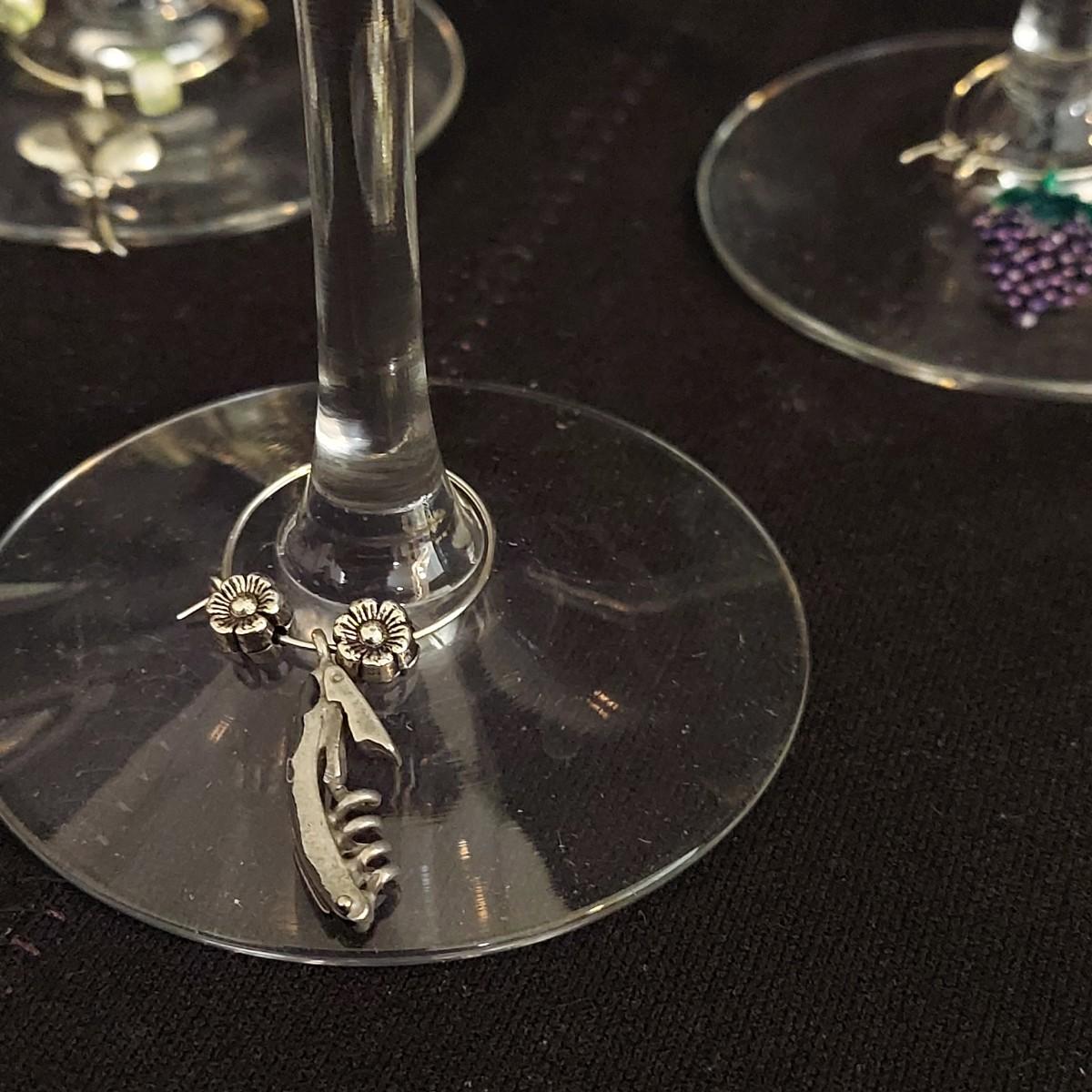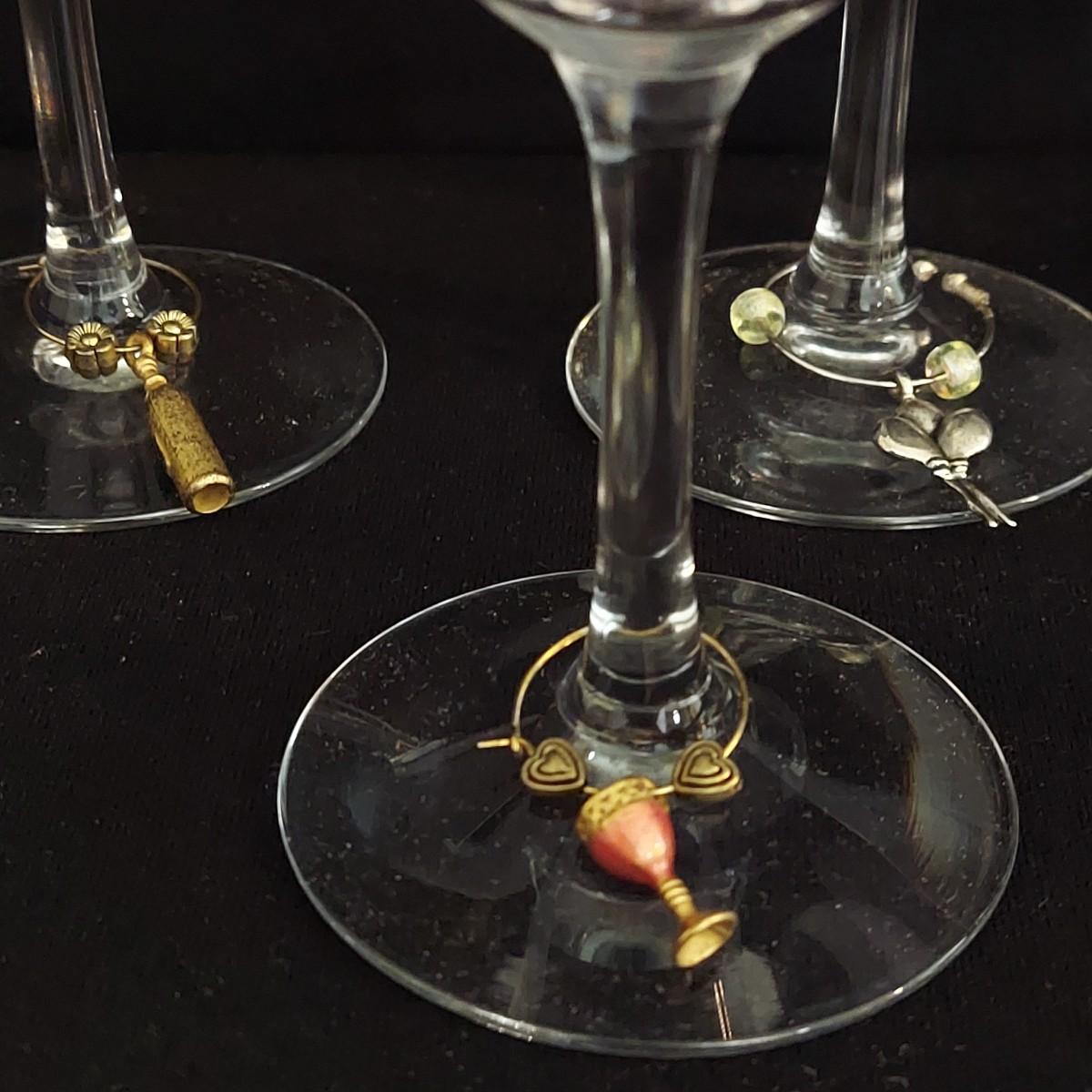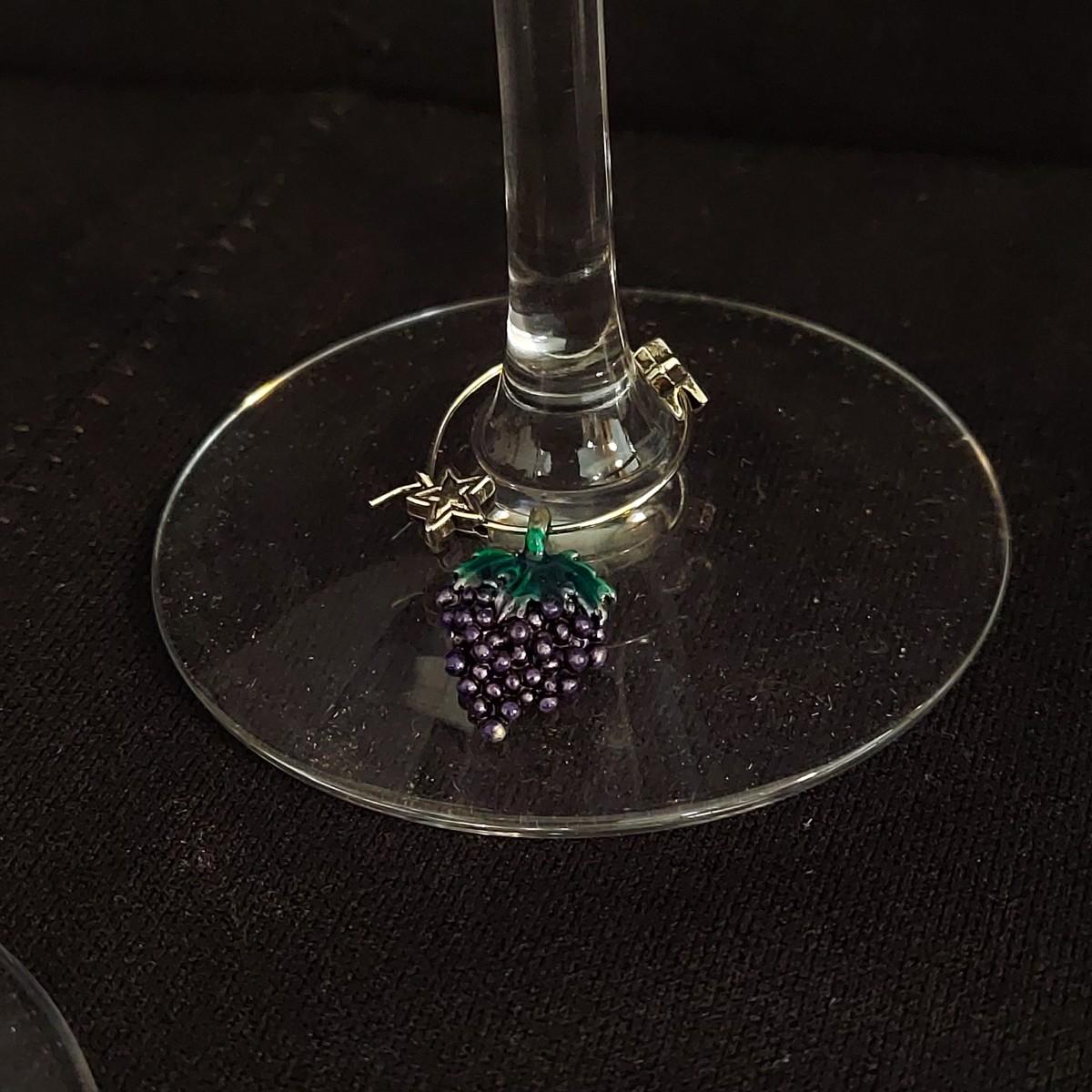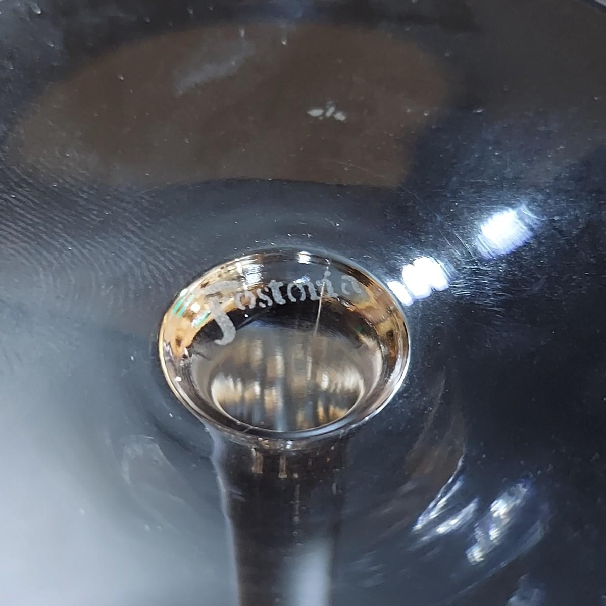 Mid Century Fostoria stemware. It appears to be crystal with a gold trim. There are 36 glasses total: 12 Champagne coupes that are 5" tall, 12 red wine glasses that are 7" tall and 12 white wine glasses that are 6" tall. Some of the red wine glasses have removable wine charms attached. Shipping available. Shipping can be costly. We suggest contacting our preferred local shipping provider, Postage Express, with dimensions and getting an estimate before bidding: (828) 670-5501 or postageexpress@yahoo.com.