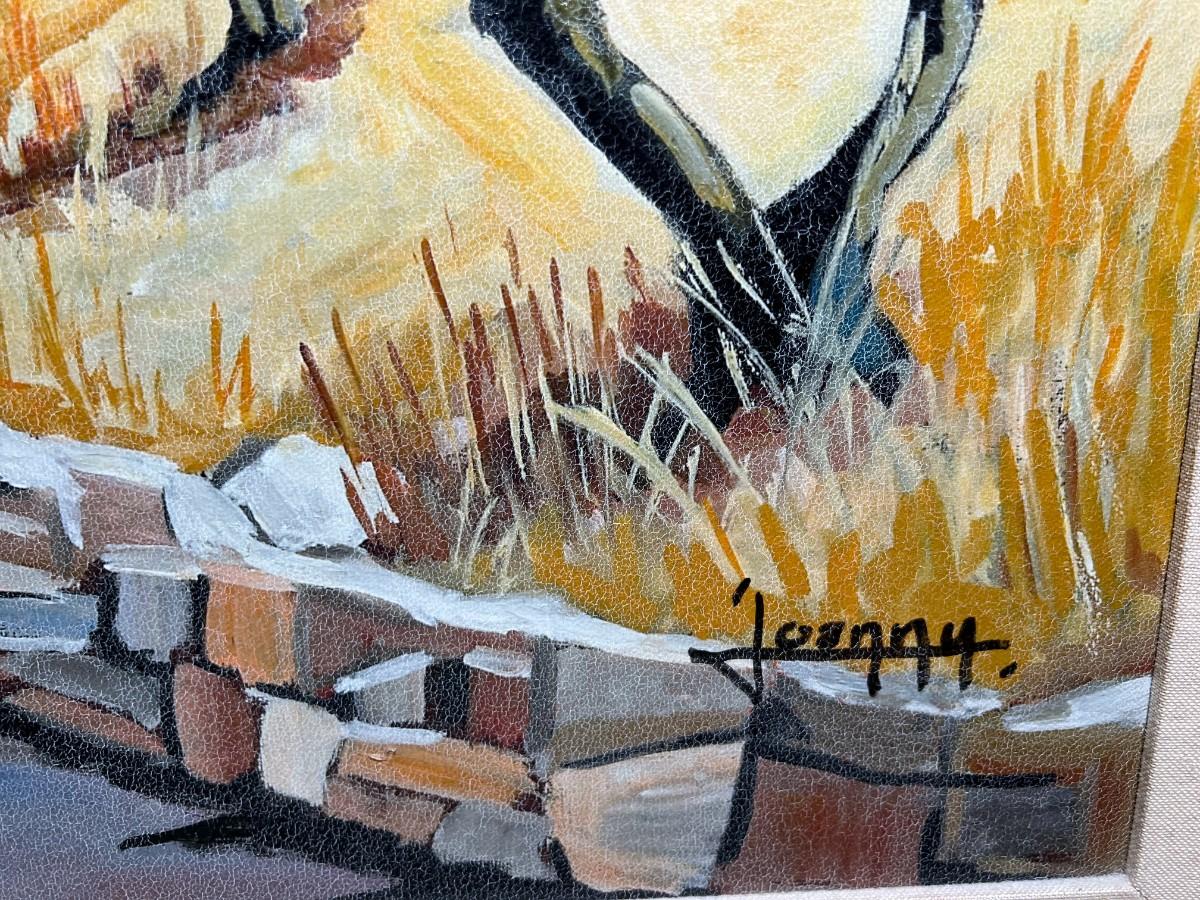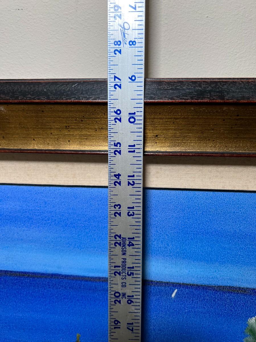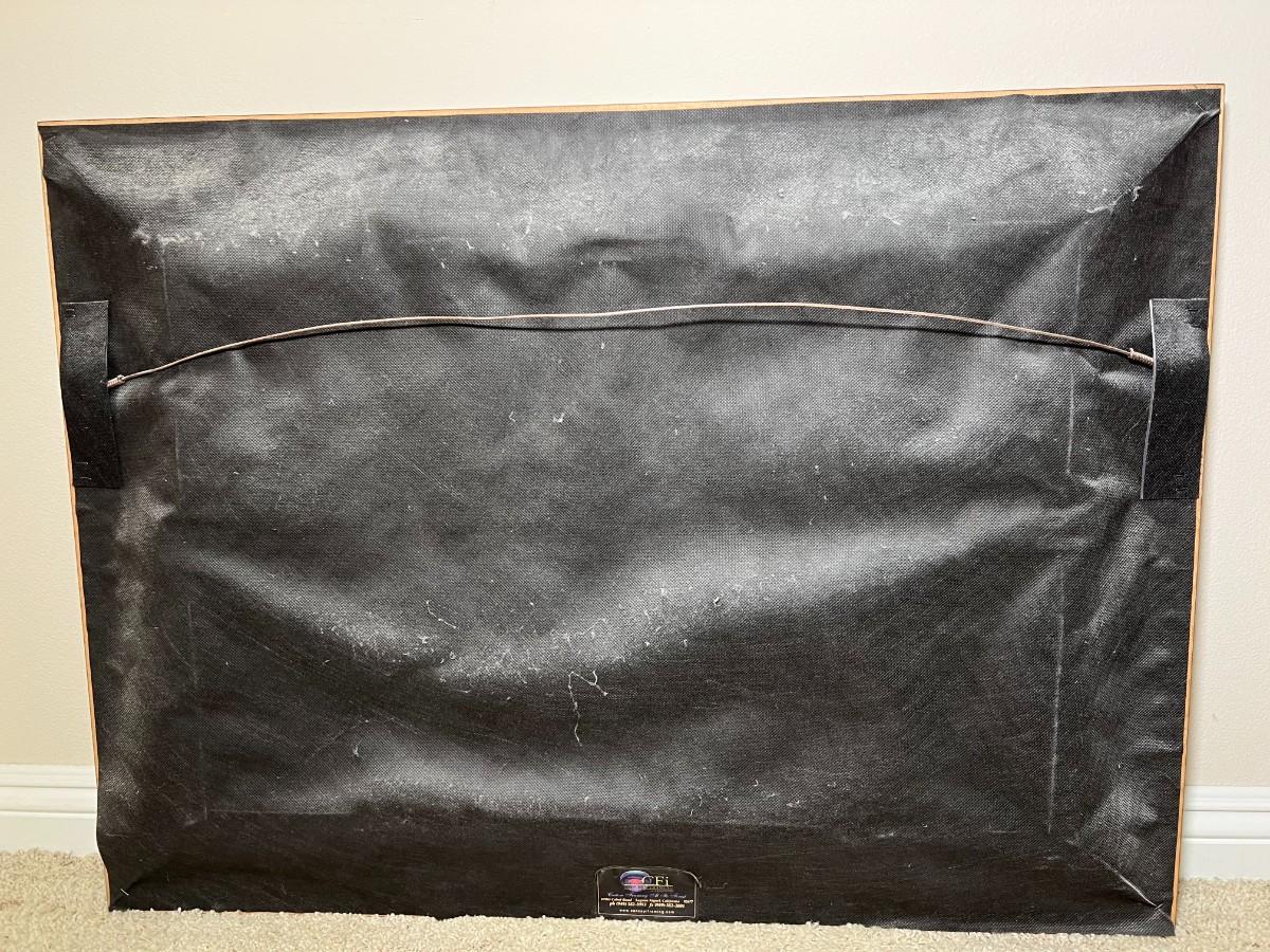 There is some light cracking on the canvas, but there is no significant damage and is in overall good collectible or displayable condition. Check pictures for more details and for sizing.