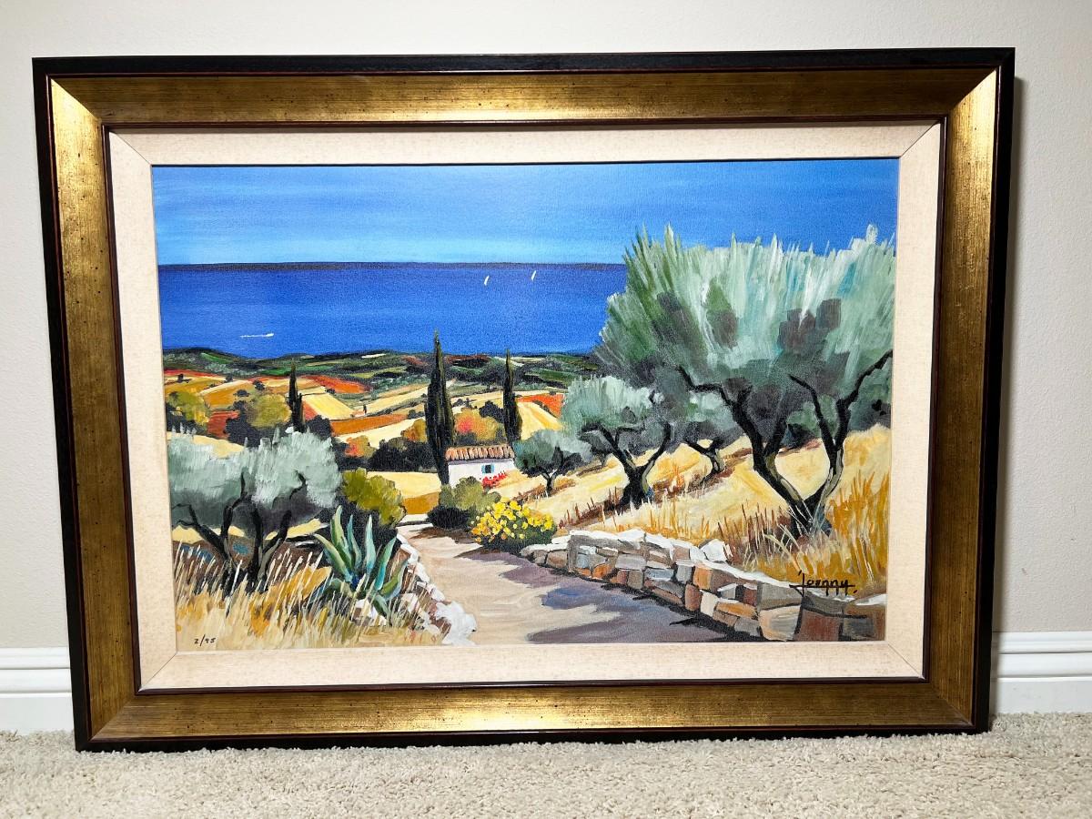Mid Century Framed Signed & Numbered Impressionist Coastal Landscape Art Print Painting