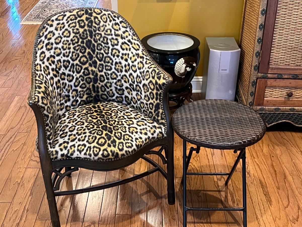 Mid Century French Style Leopard Print Chair w/ Side Table