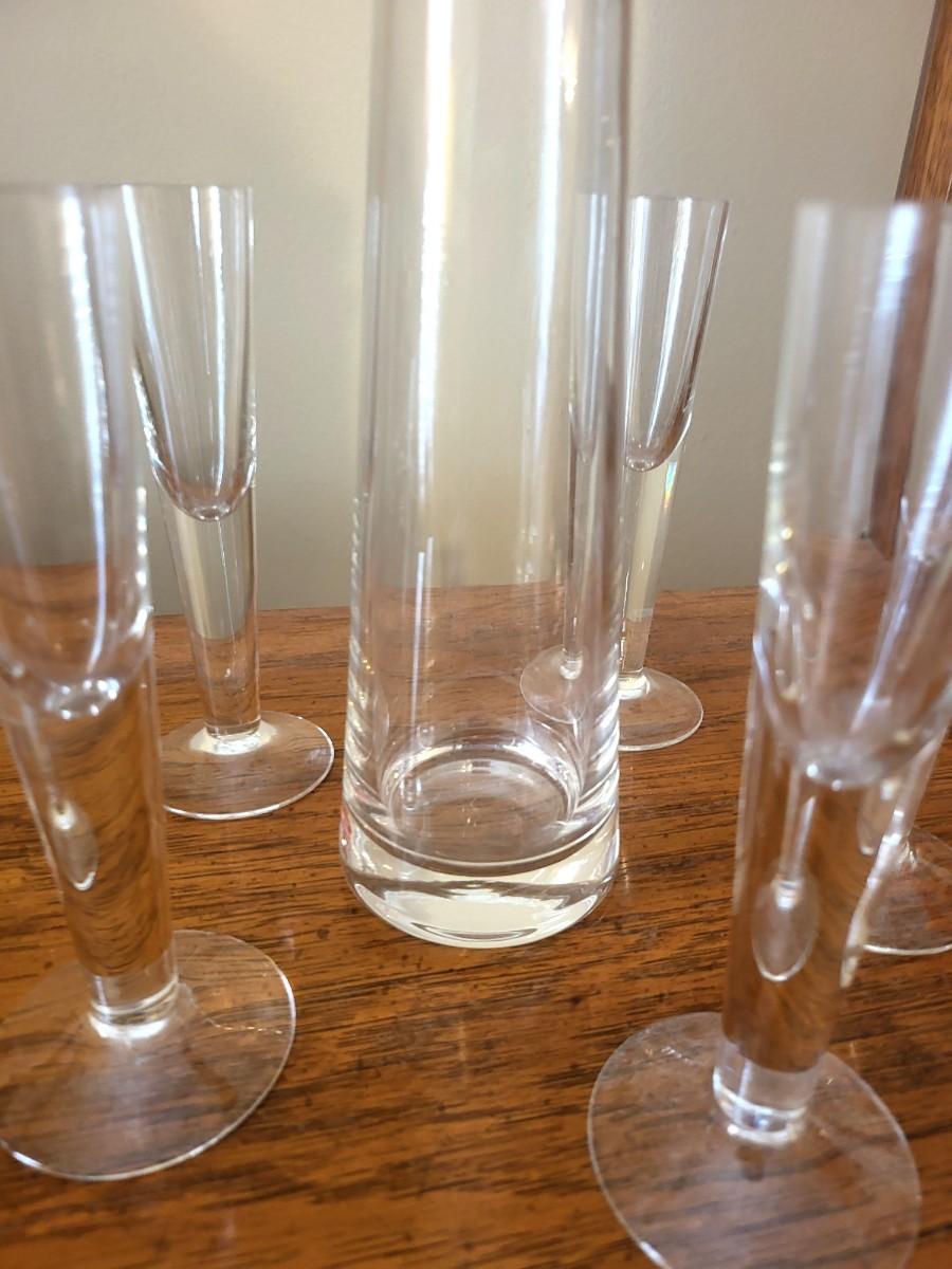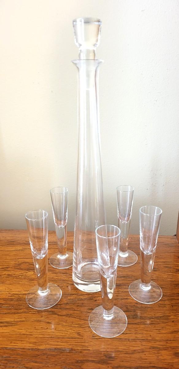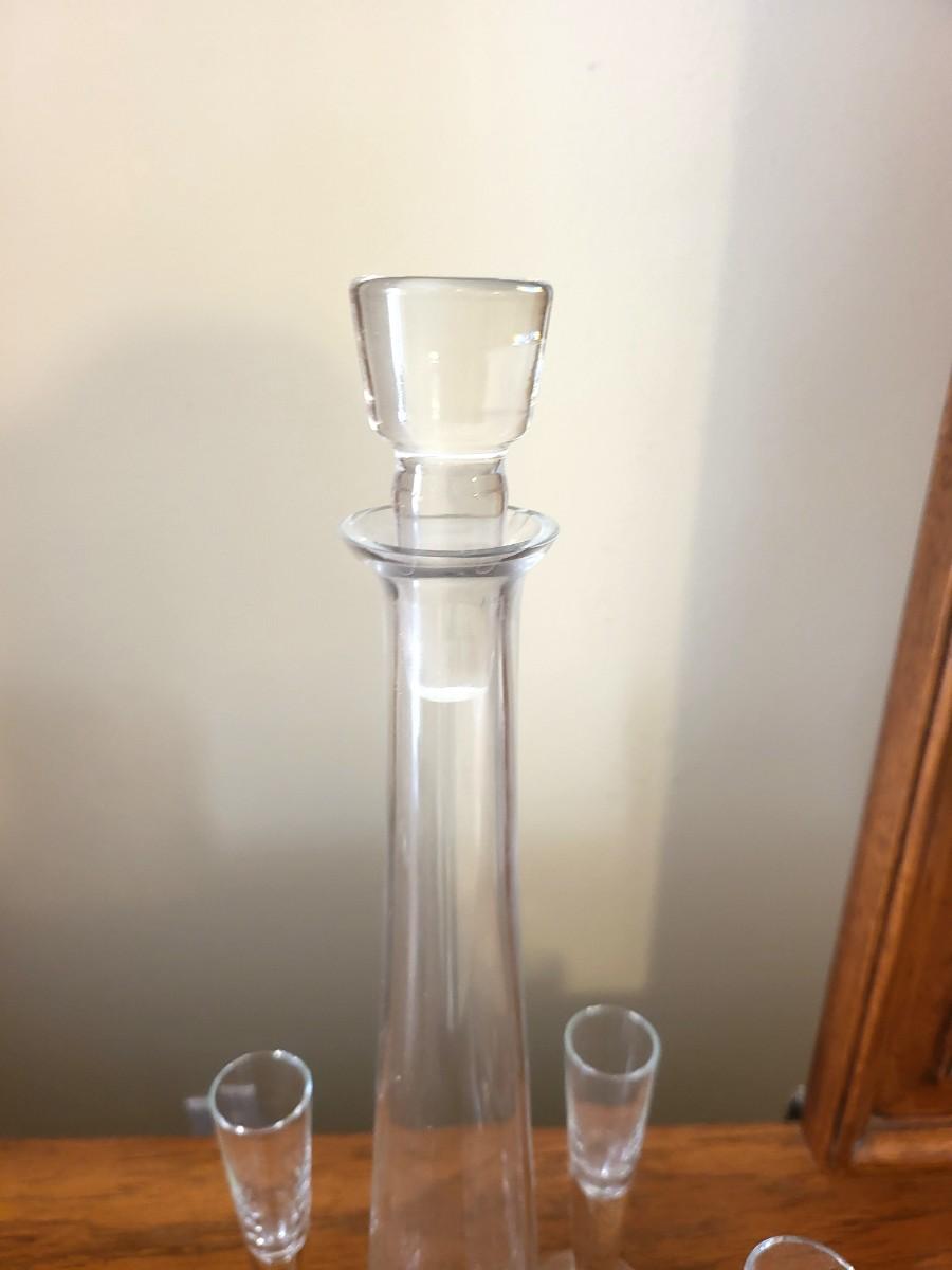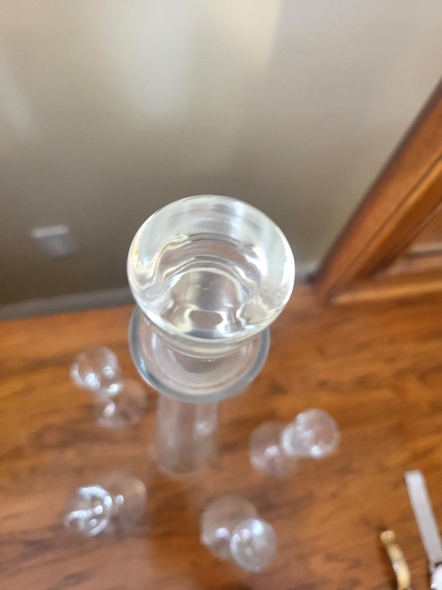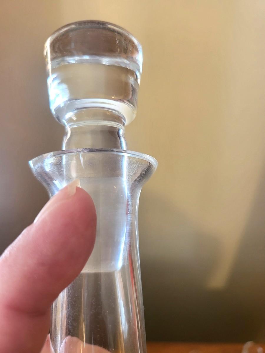 Decanter has 2 small chips near the topper. Not very noticeable.