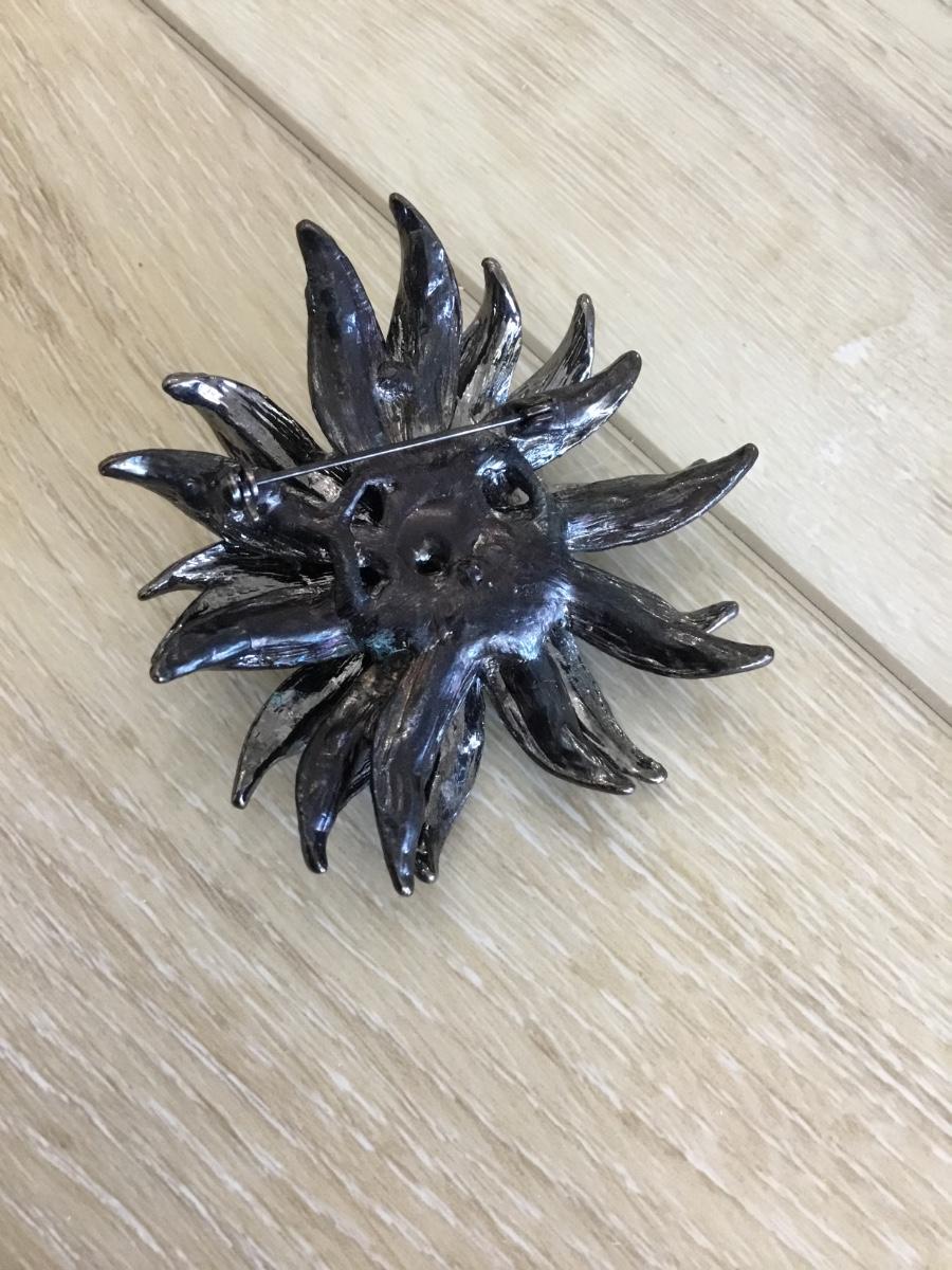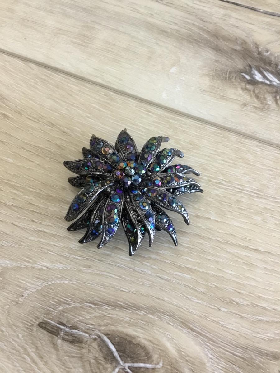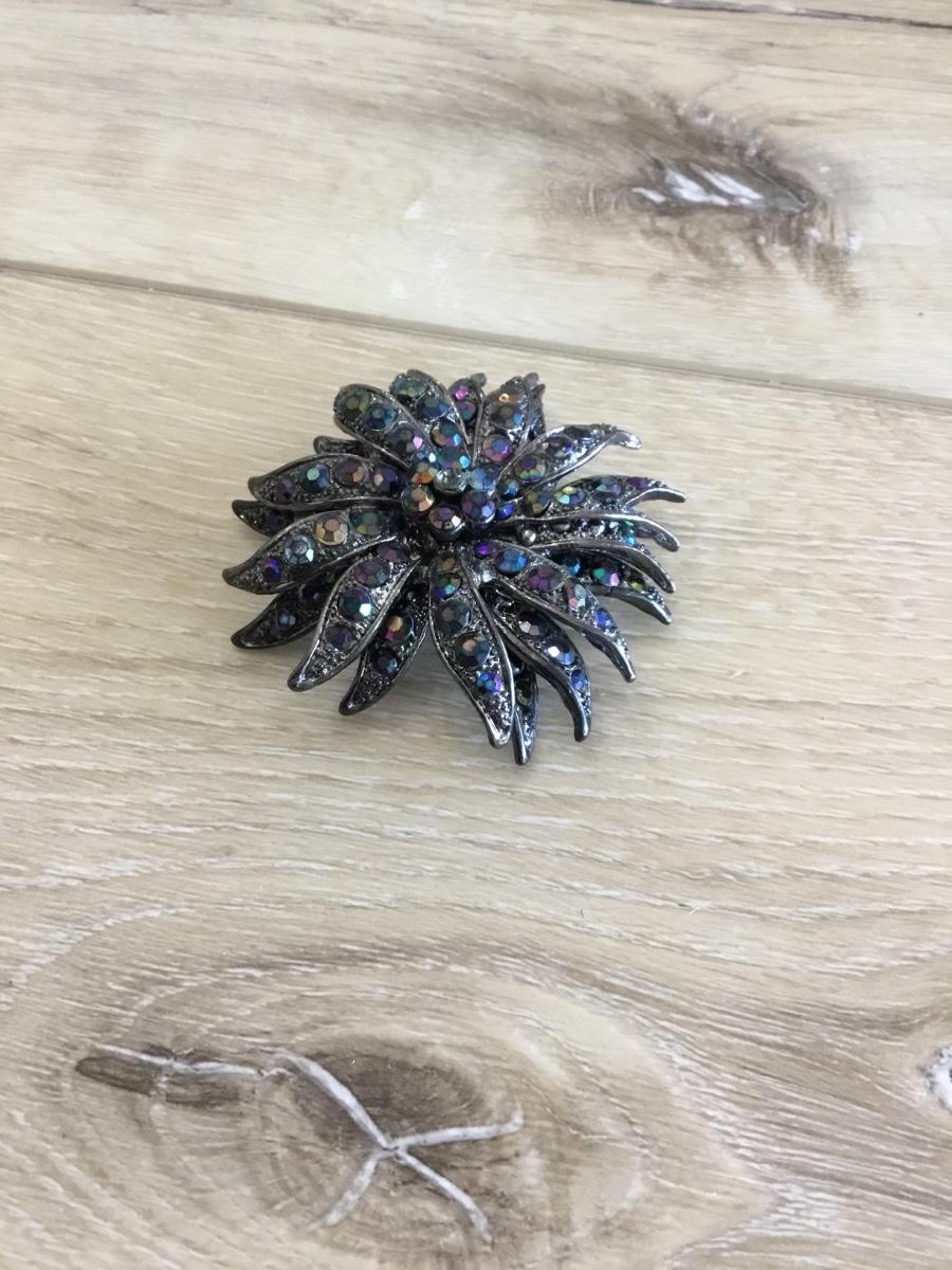 Mid century, gunmetal and blue tone, rhinestones diamonds, starburst, heavy brooch