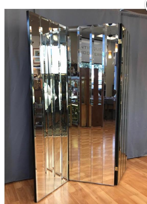 Mid Century Frank Lloyd Write era mirrored room divider Hollywood glam