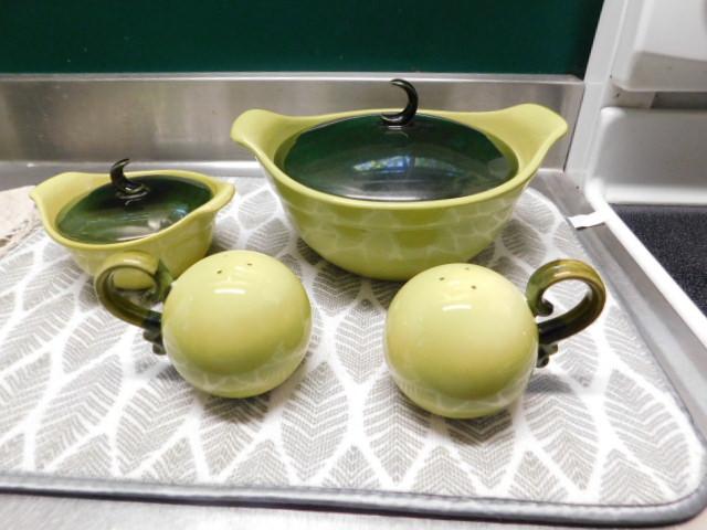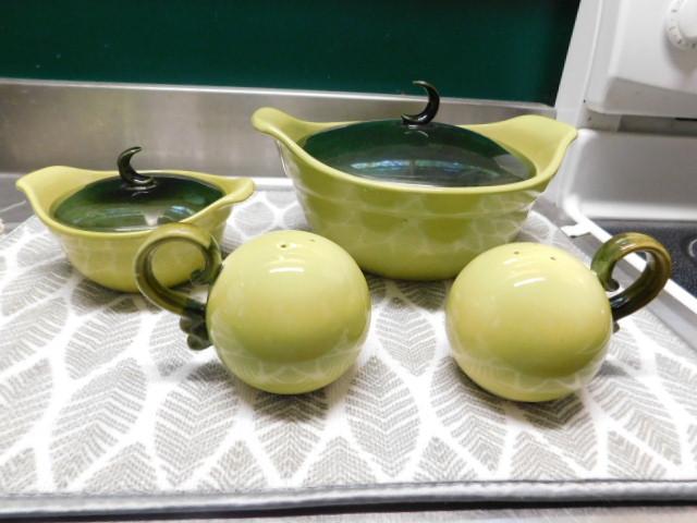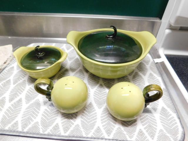 Mid Century Hull Pottery Service Pieces larger dish has a chip as shown