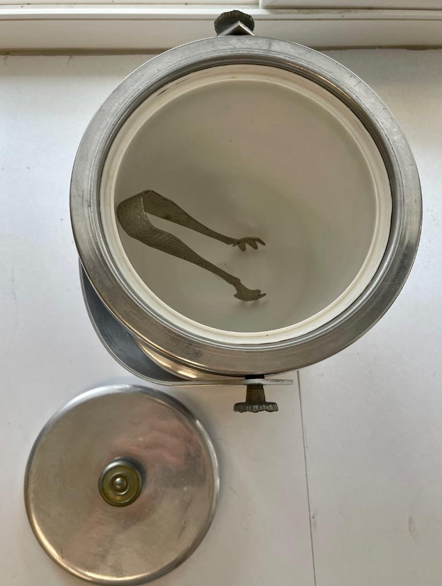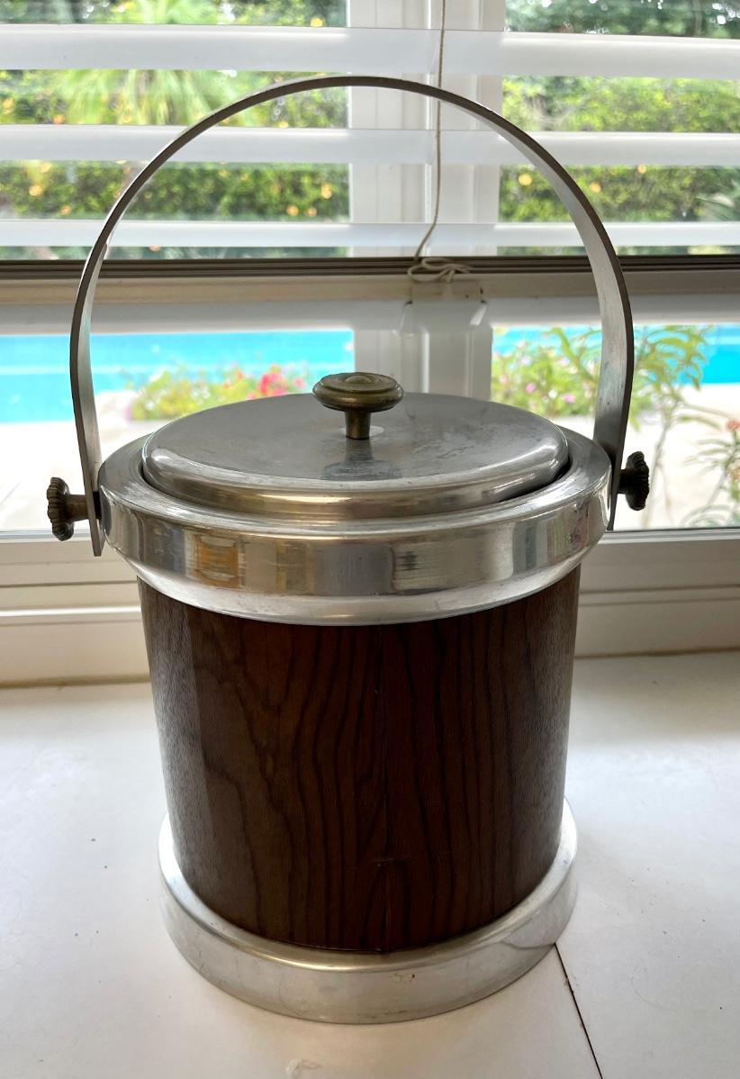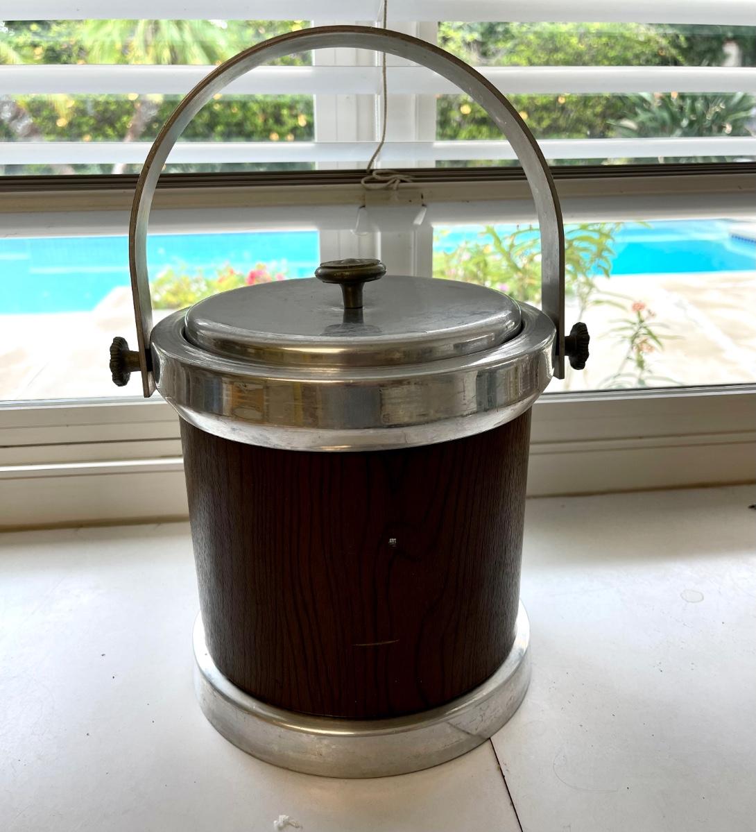 Mid century ice bucket with handle and tongs