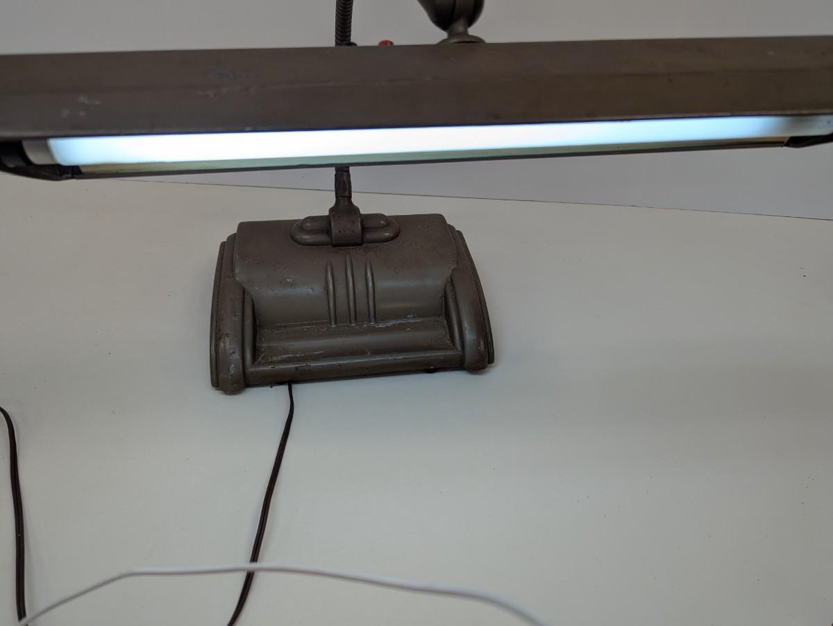 Mid Century Industrial Desk Lamp Swivel Flex Arm 1 Fluorescent Light Cubby Base Worked!