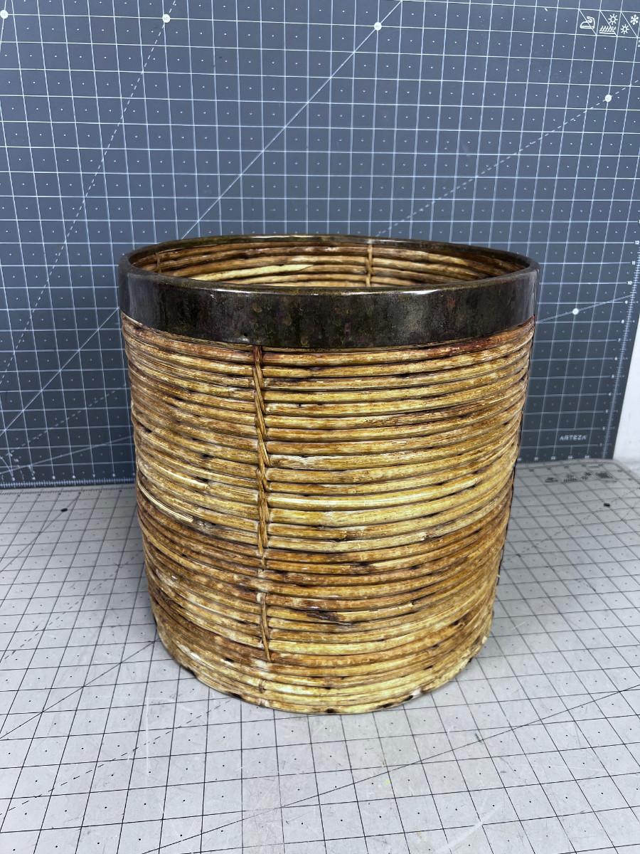 Mid Century Italian Pencil Reed  Bamboo Planter Bin in the Style Of Gabriella Crespi