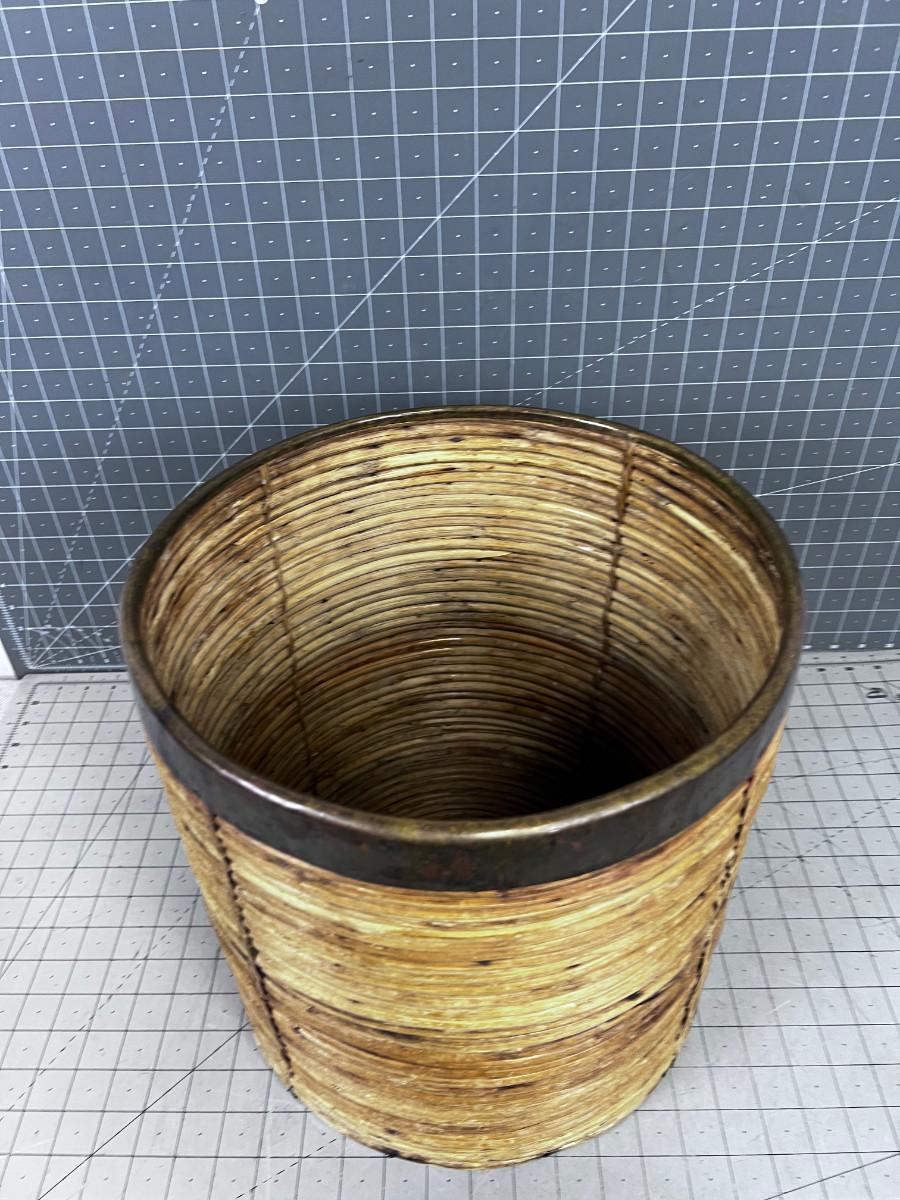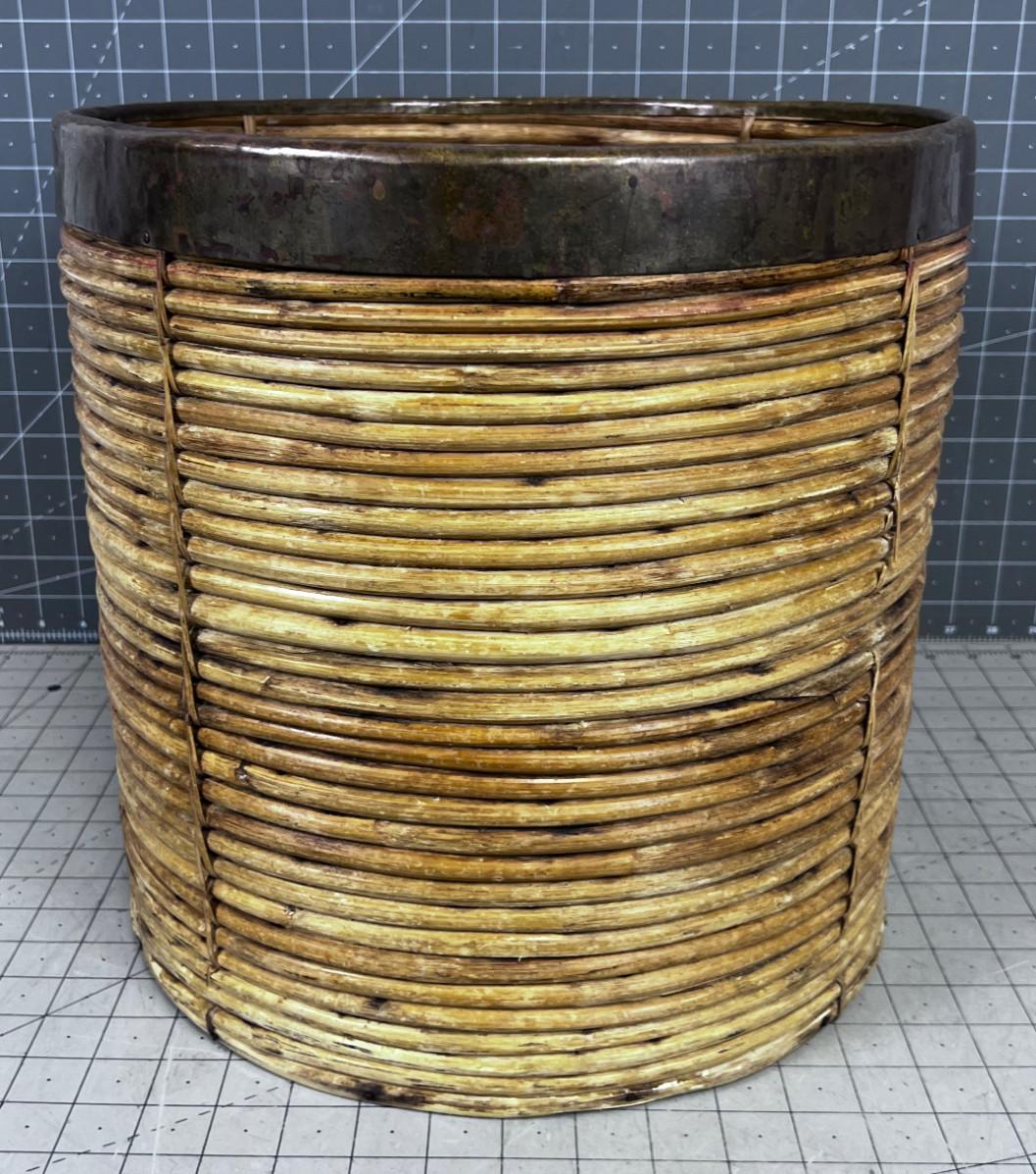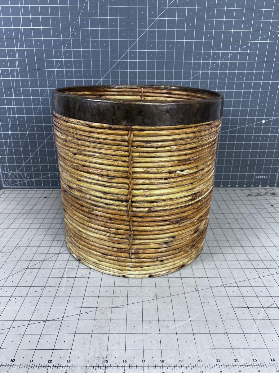 Mid Century Italian Pencil Reed Bamboo Planter Bin in the Style Of Gabriella Crespi