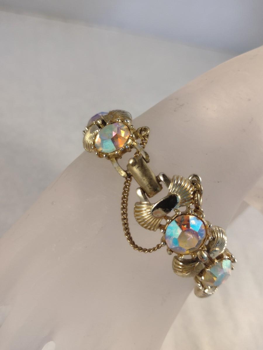Mid Century Jewelcraft Blue Stone and Gold Accent Bracelet (#7)