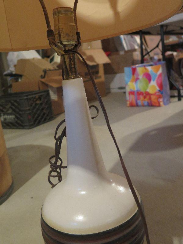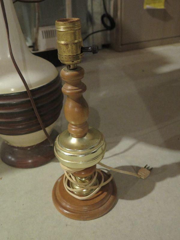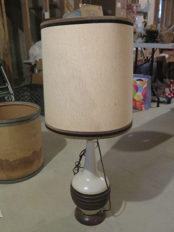 Mid century lamp with shade, and wooden lamp without shade. Untested. **Please read Terms and Conditions before placing a bid. Pick up is Wednesday July 31st, from 2 pm to 7pm in Sicklerville. All sales are final. All sales are as is, where is. Please review all photos. Any props included in photos are not included in listing. All measurements are approximate.