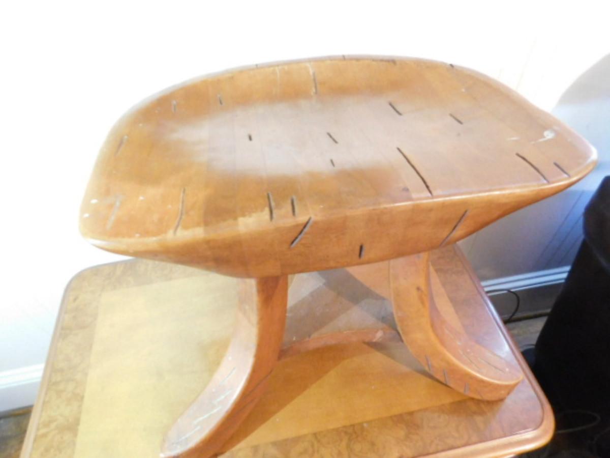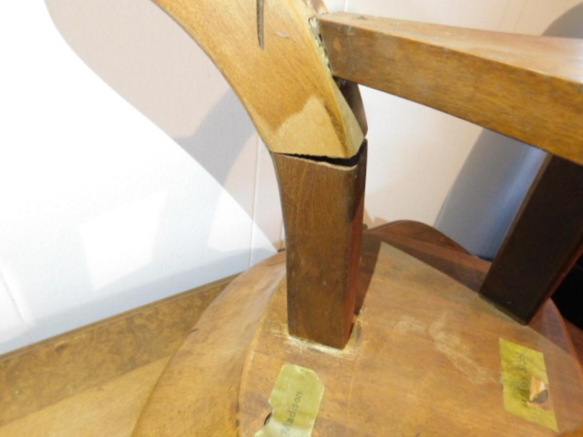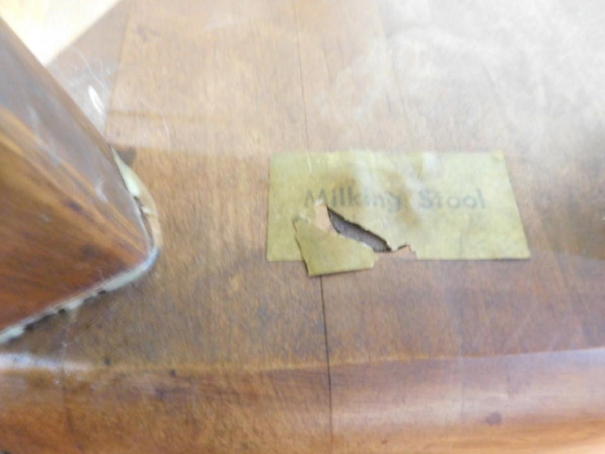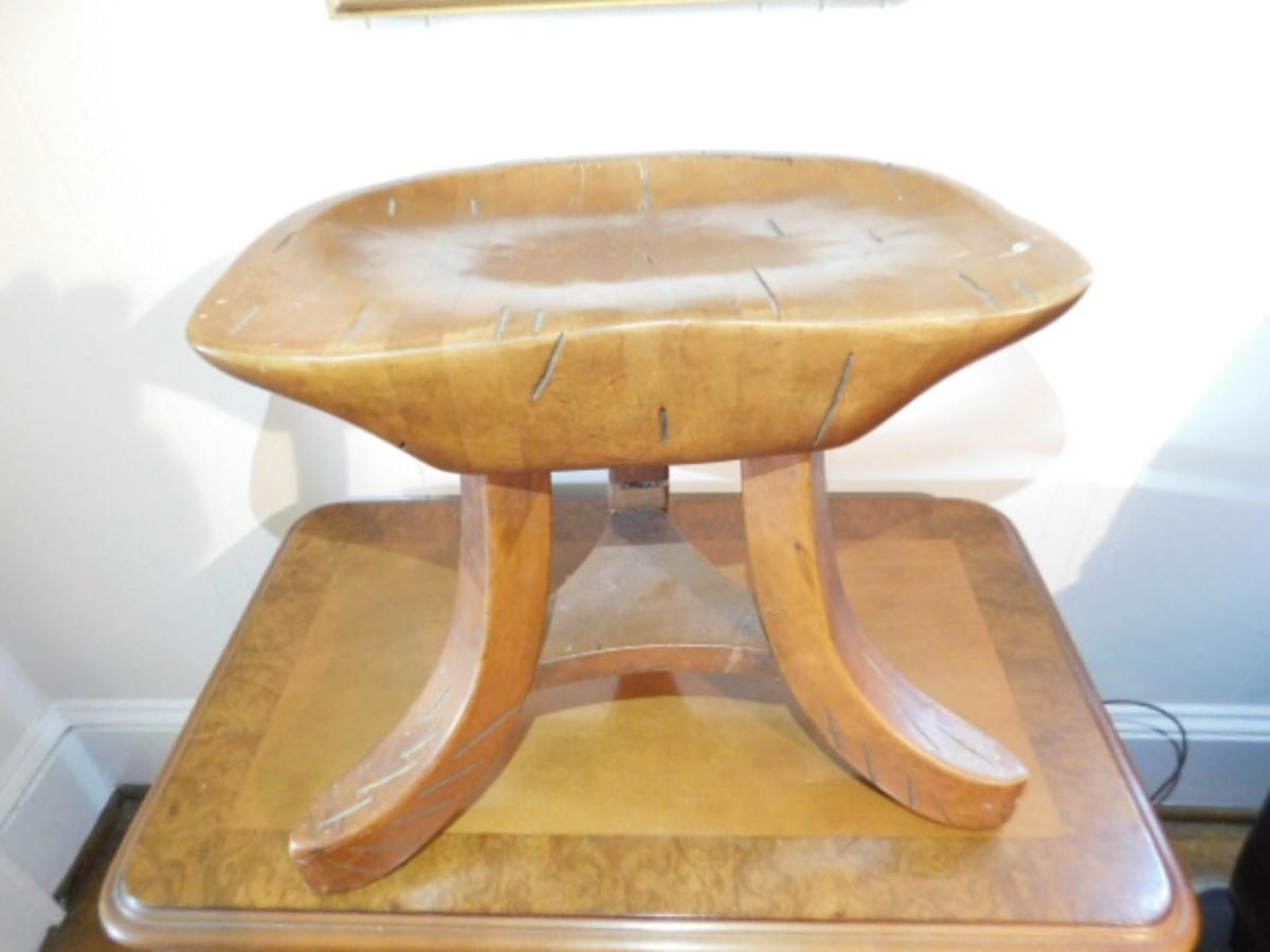 Mid Century Madison Avenue Milking Stool. Legs have had some repair as shown. Shipping via third party only i.e. UPS Store or Frontier Packing. Auction house will not personally ship this item but will make sure the item is available for shipment.