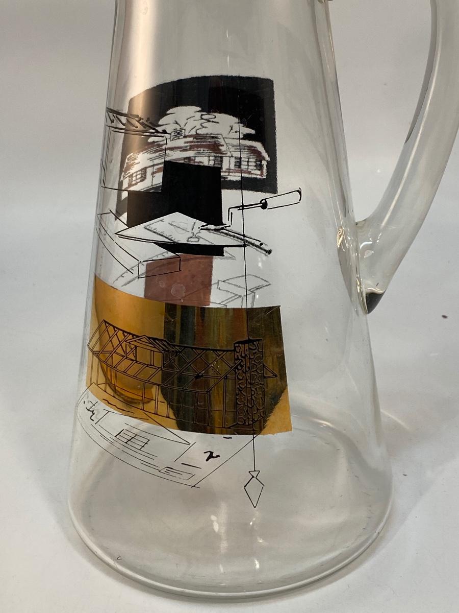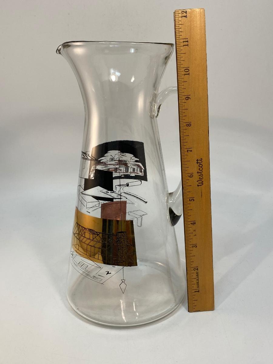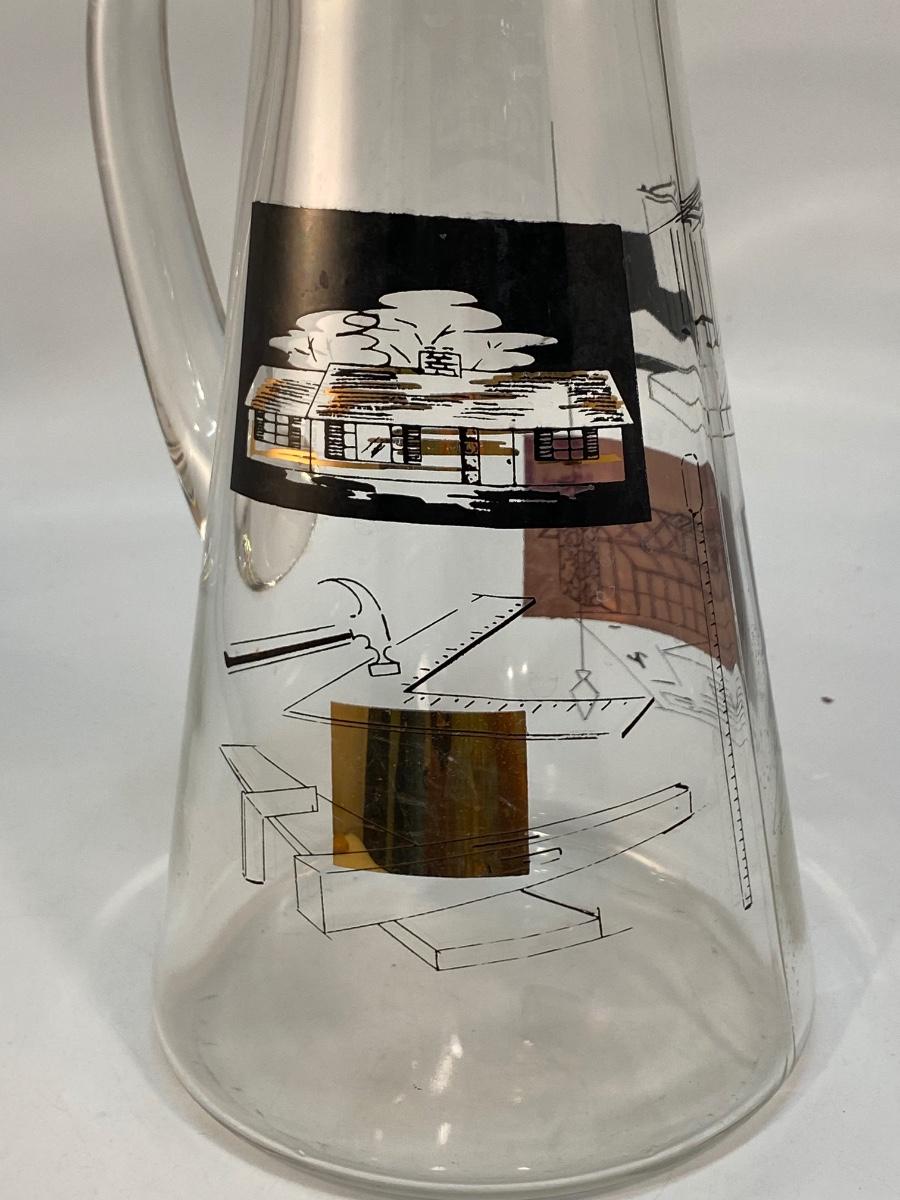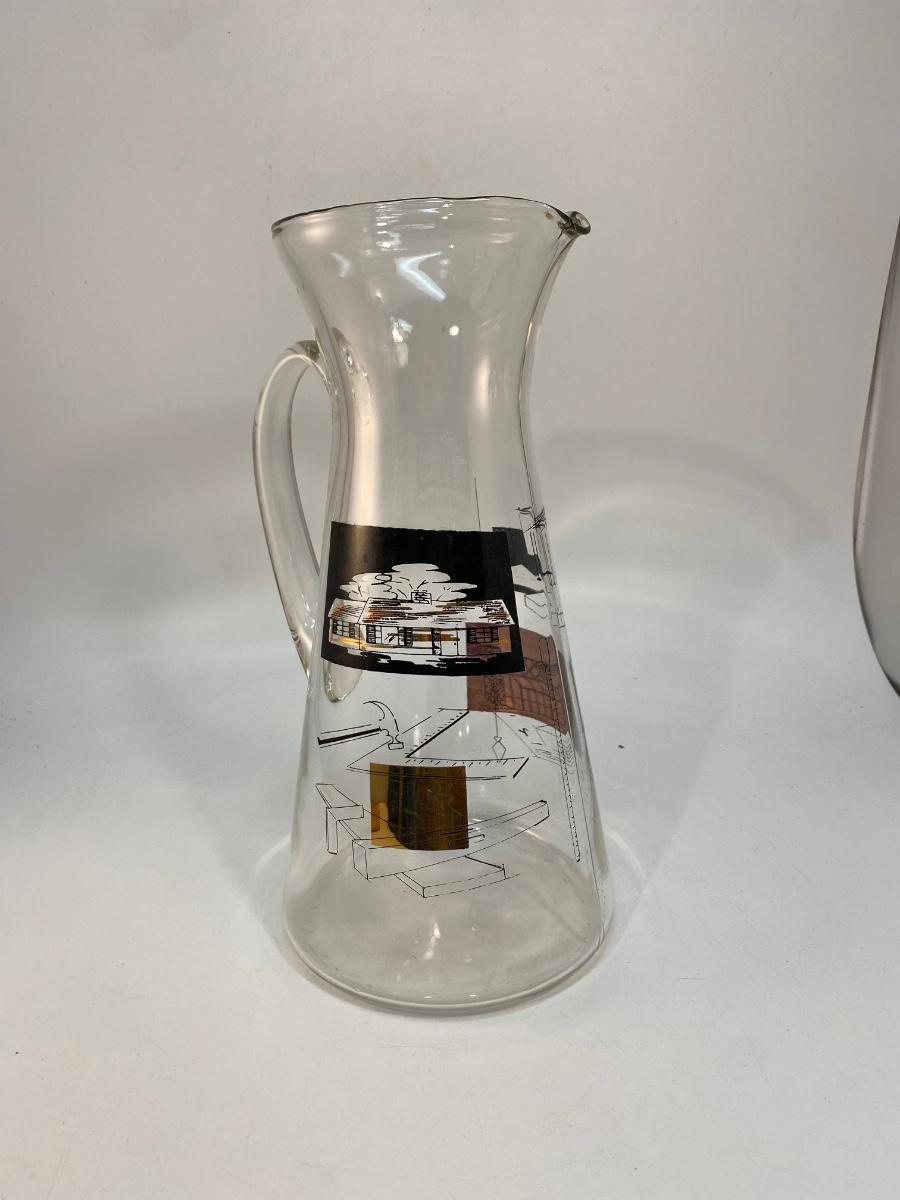 Mid Century MCM Architecture Home Builder Themed Glass Iced Tea Water Drink Pitcher