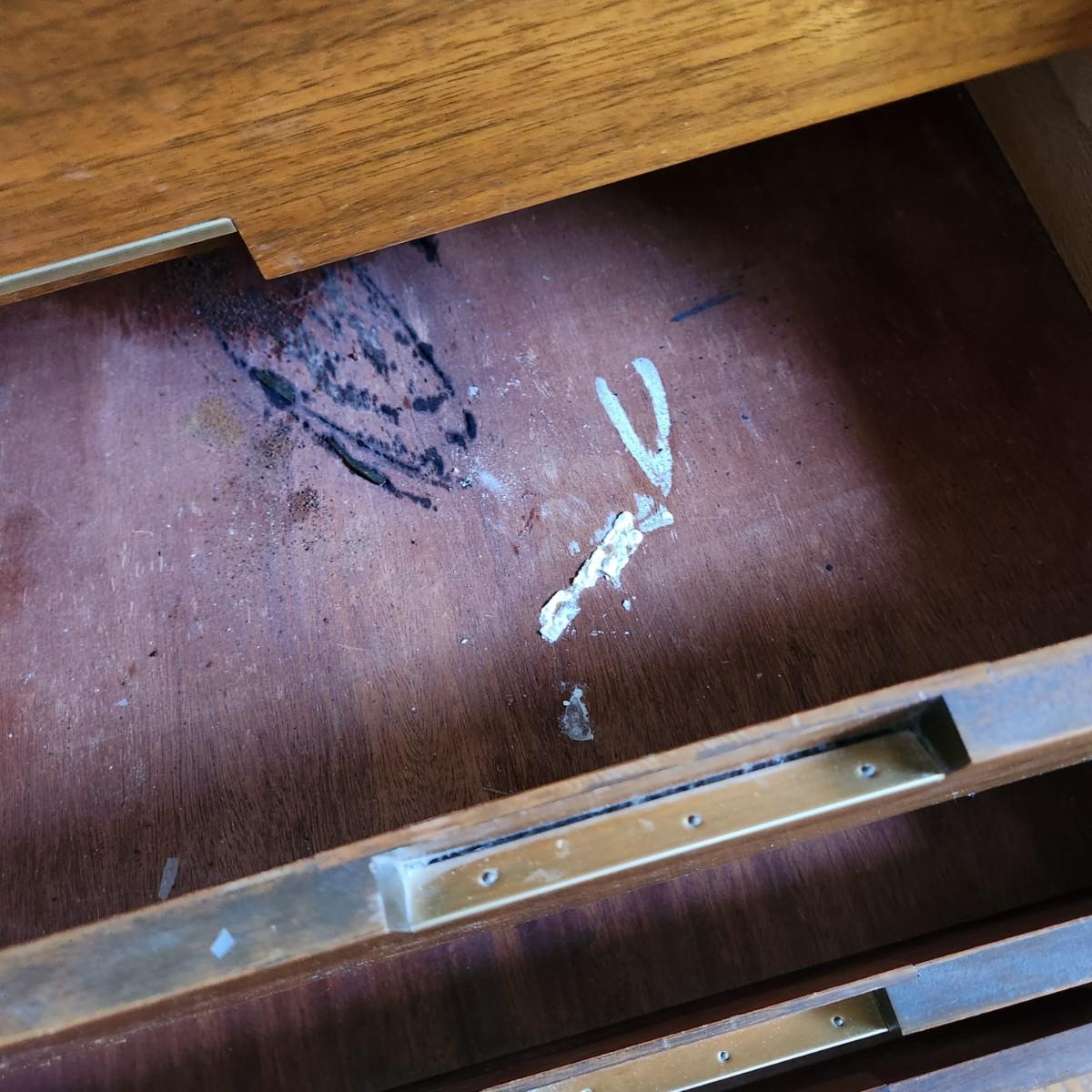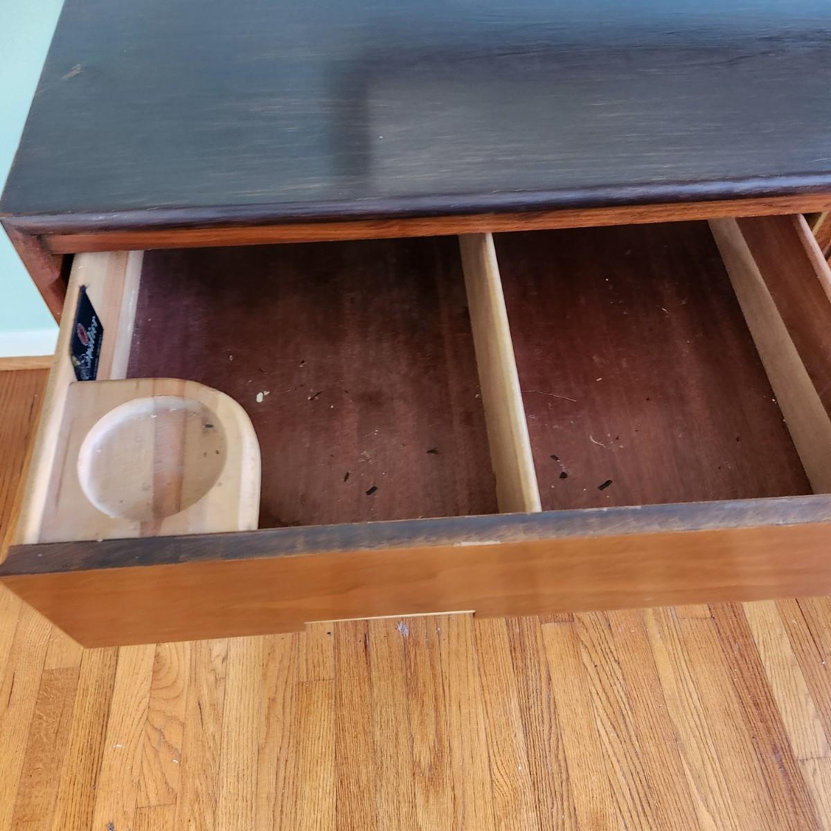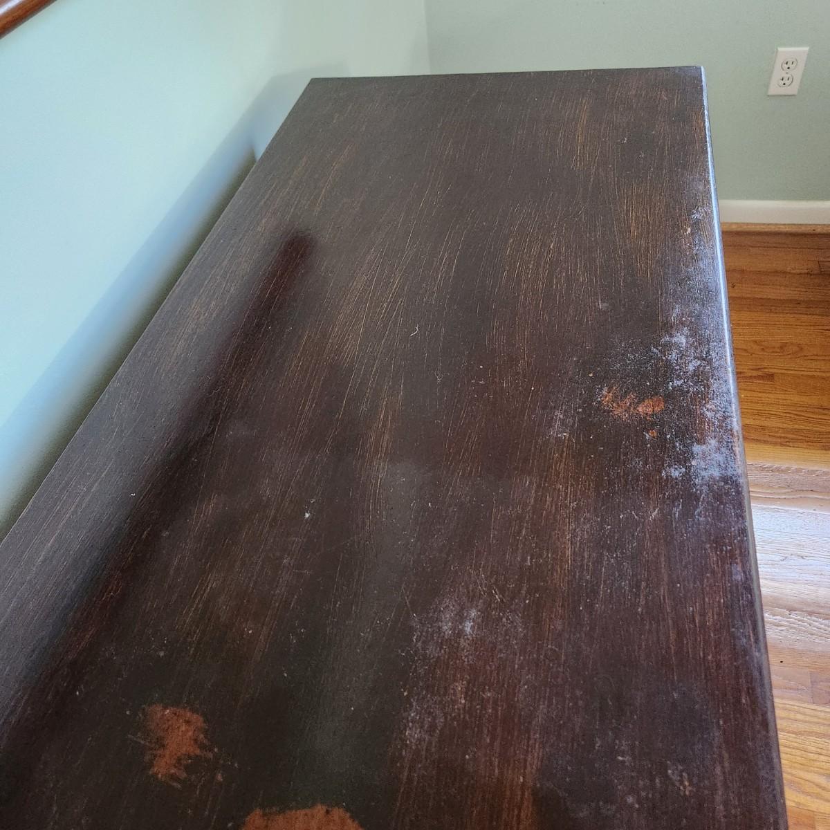 Top needs to be refinished. Owner attempted to refinish used a darker stain.