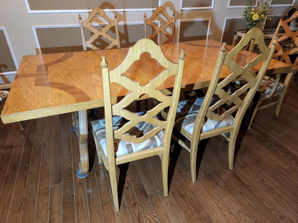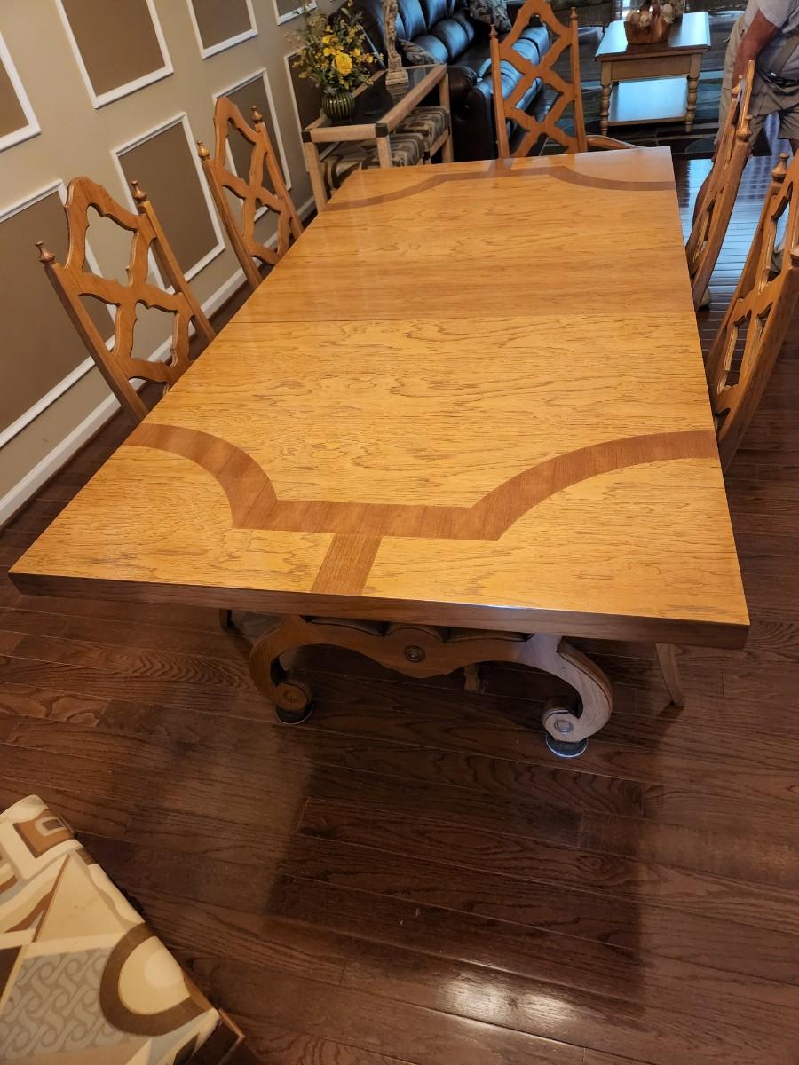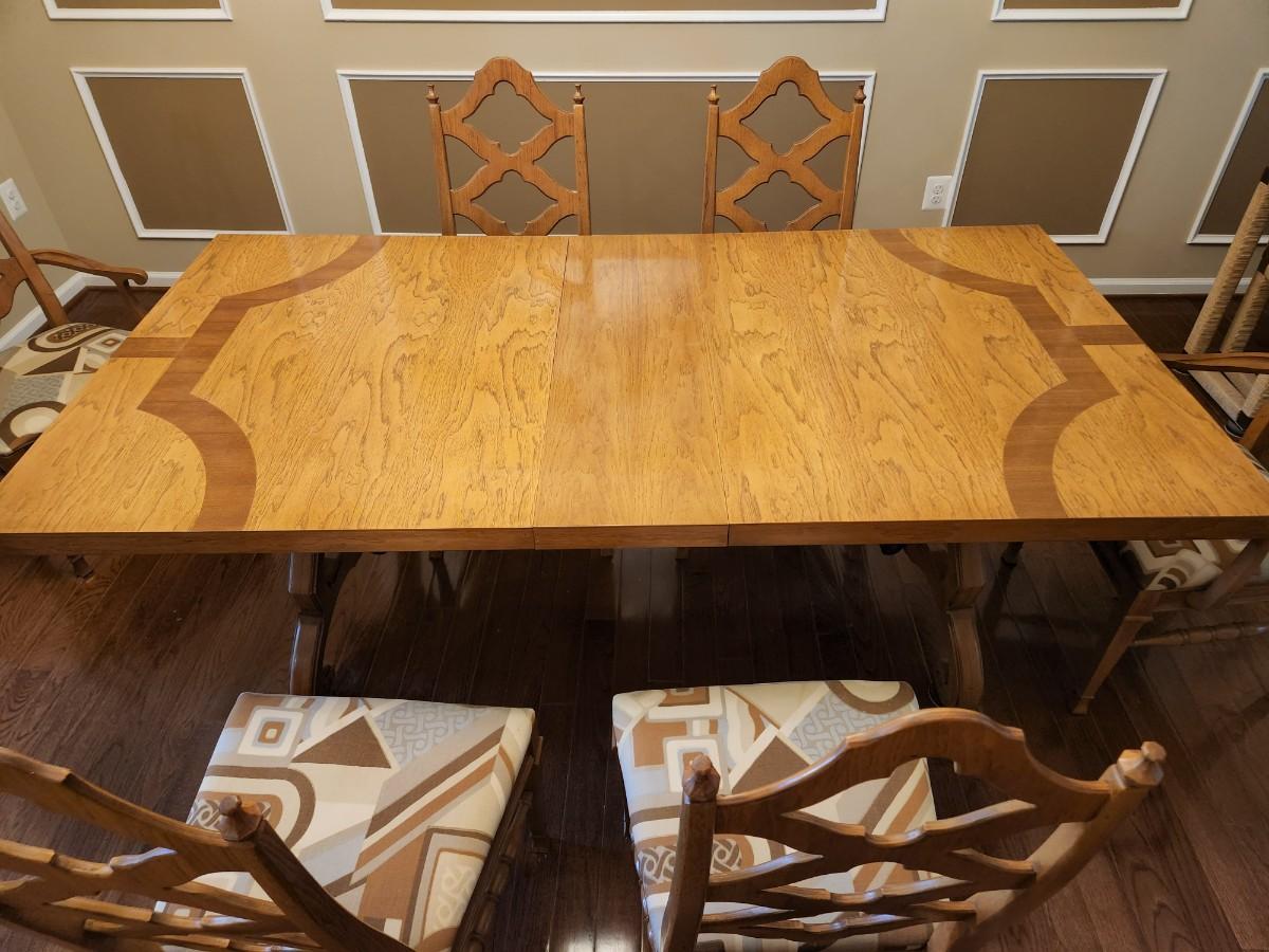 Mid Century MCM Thomasville Pecan Dining table & 6 Chairs 42"Wx68"L