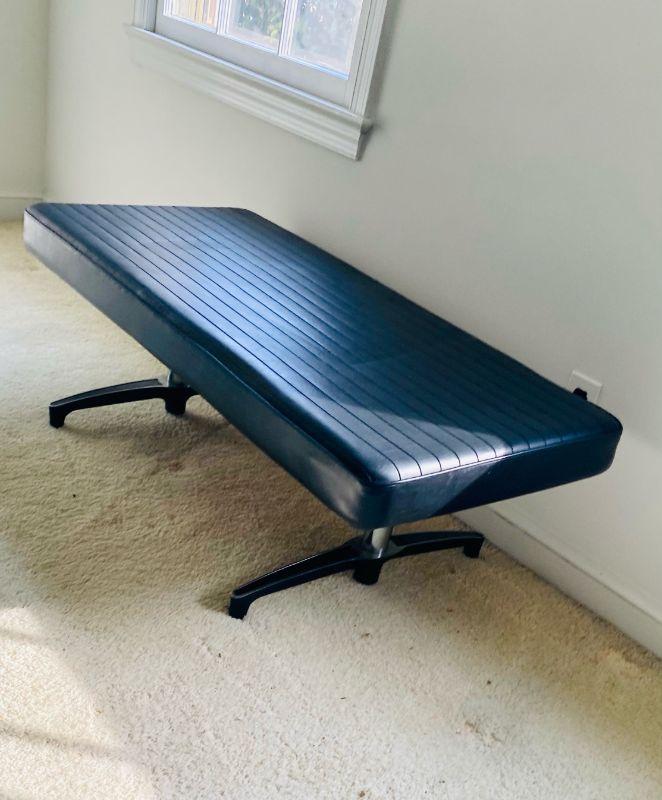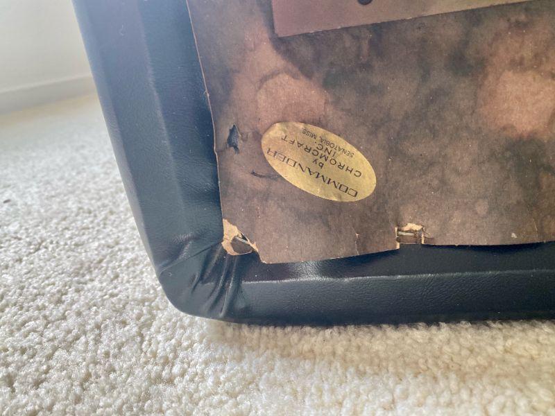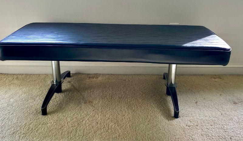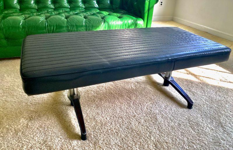 RARE gorgeous old 1960s/70s Commander Chromcraft Leather Bench or coffee table/ottoman. Original black leather with rows of stitching.