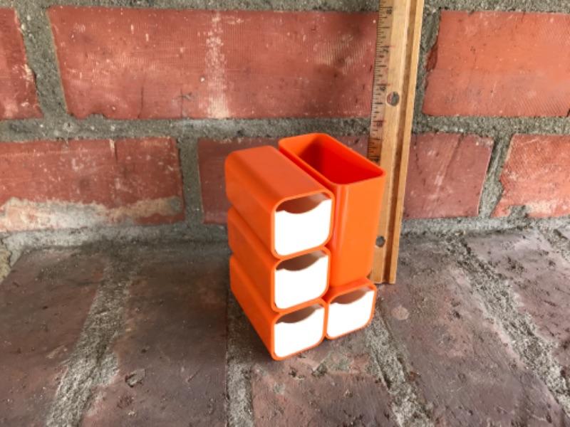 Mid Century Mod Desk Organizer / Retro Orange Plastic Desk Caddy