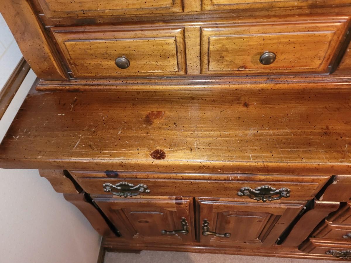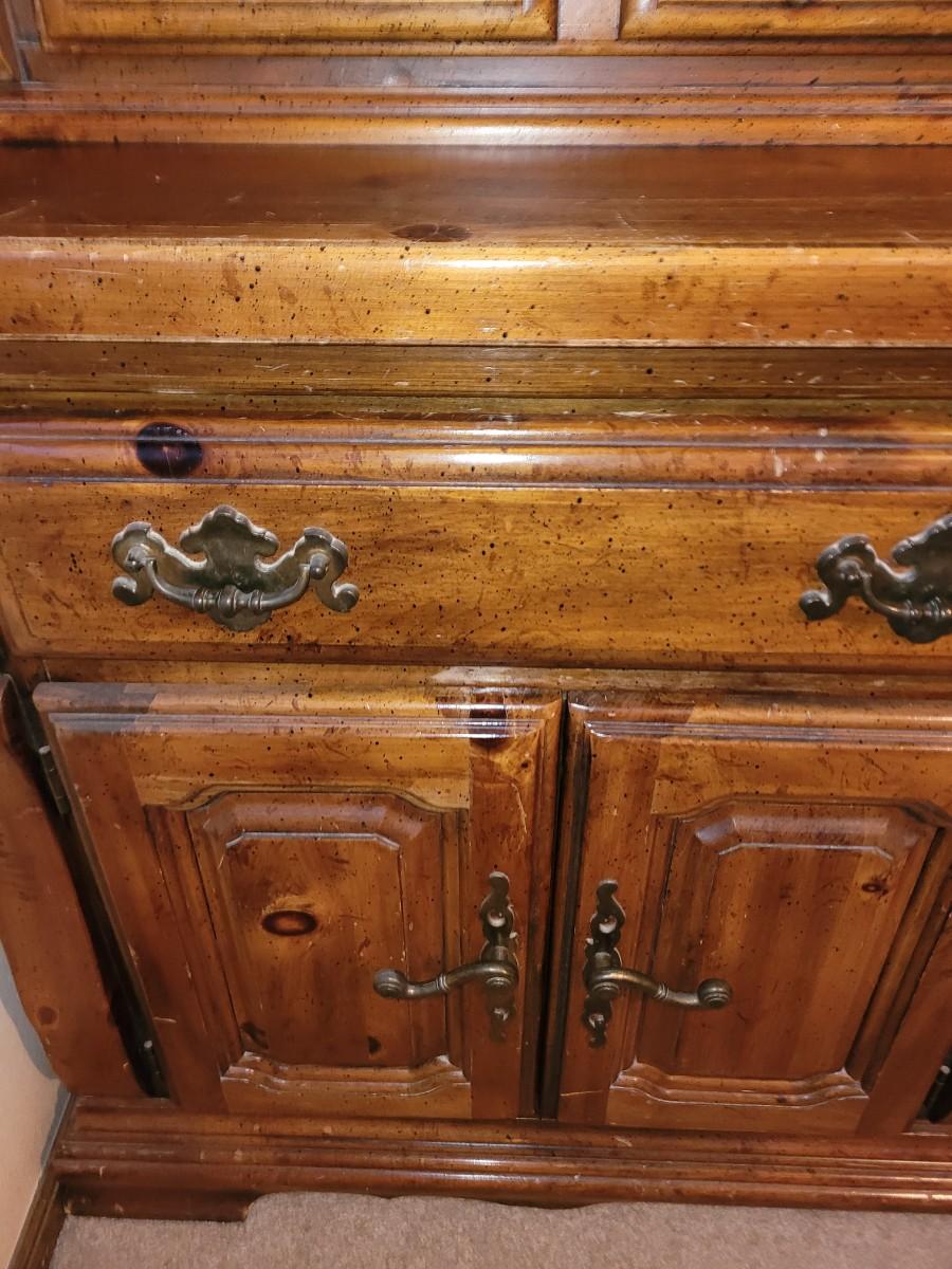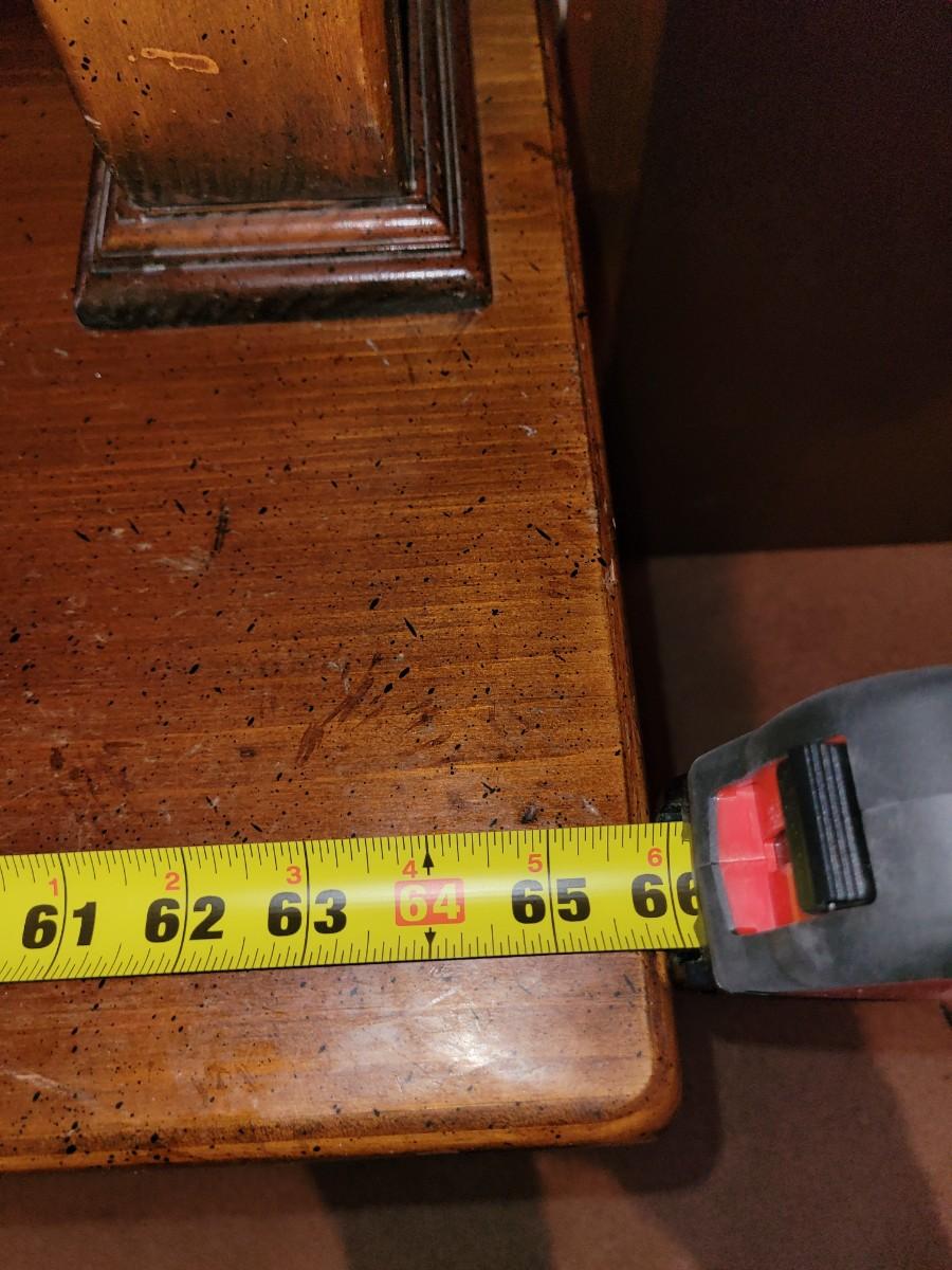Very heavy and very ornate. Needs cleaned and a bit of lemon oil, light scratching but this is a very nice piece. Can be taken apart for transport, measurements in photos