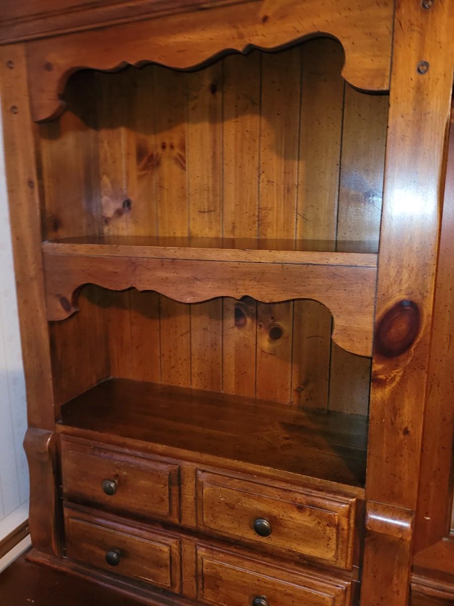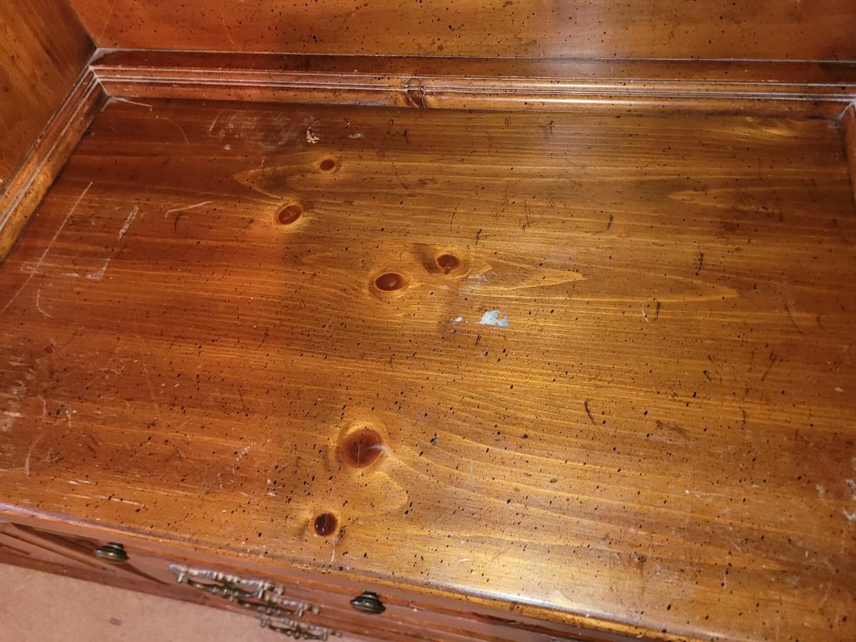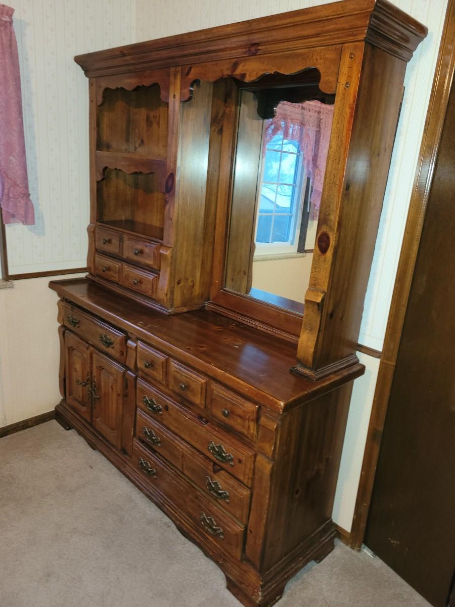 Very heavy and very ornate. Needs cleaned and a bit of lemon oil, light scratching but this is a very nice piece. Can be taken apart for transport, measurements in photos