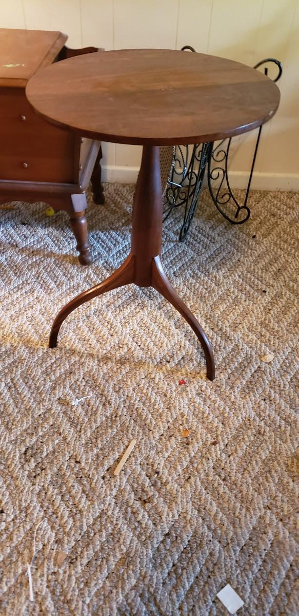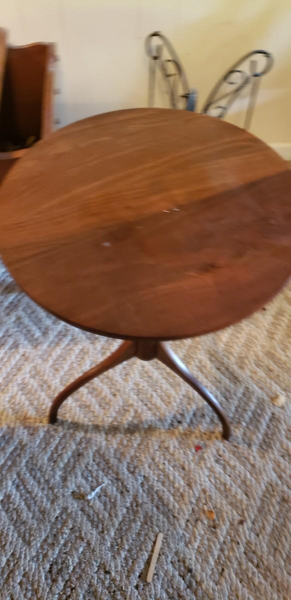 Mid-century Modern tripod walnut round accent table. Look at those legs!