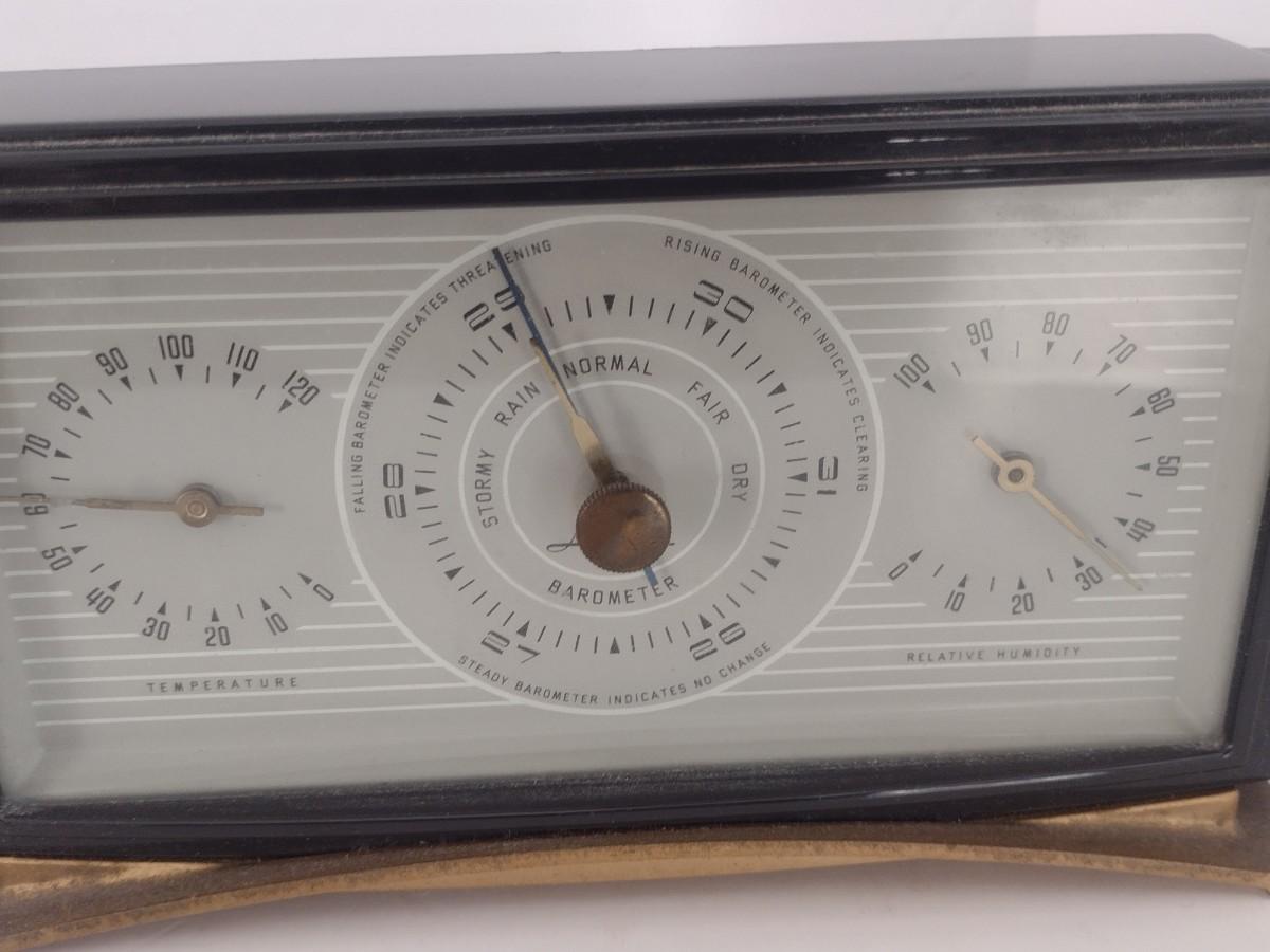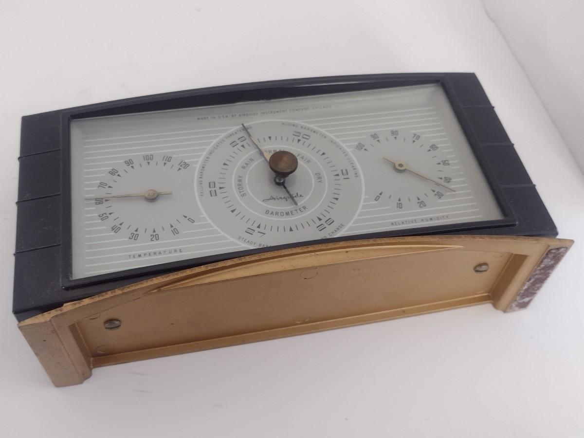 Mid Century Modern Airguide Instrument Company Desk Top Hygrometer, Thermometer, and Barometer