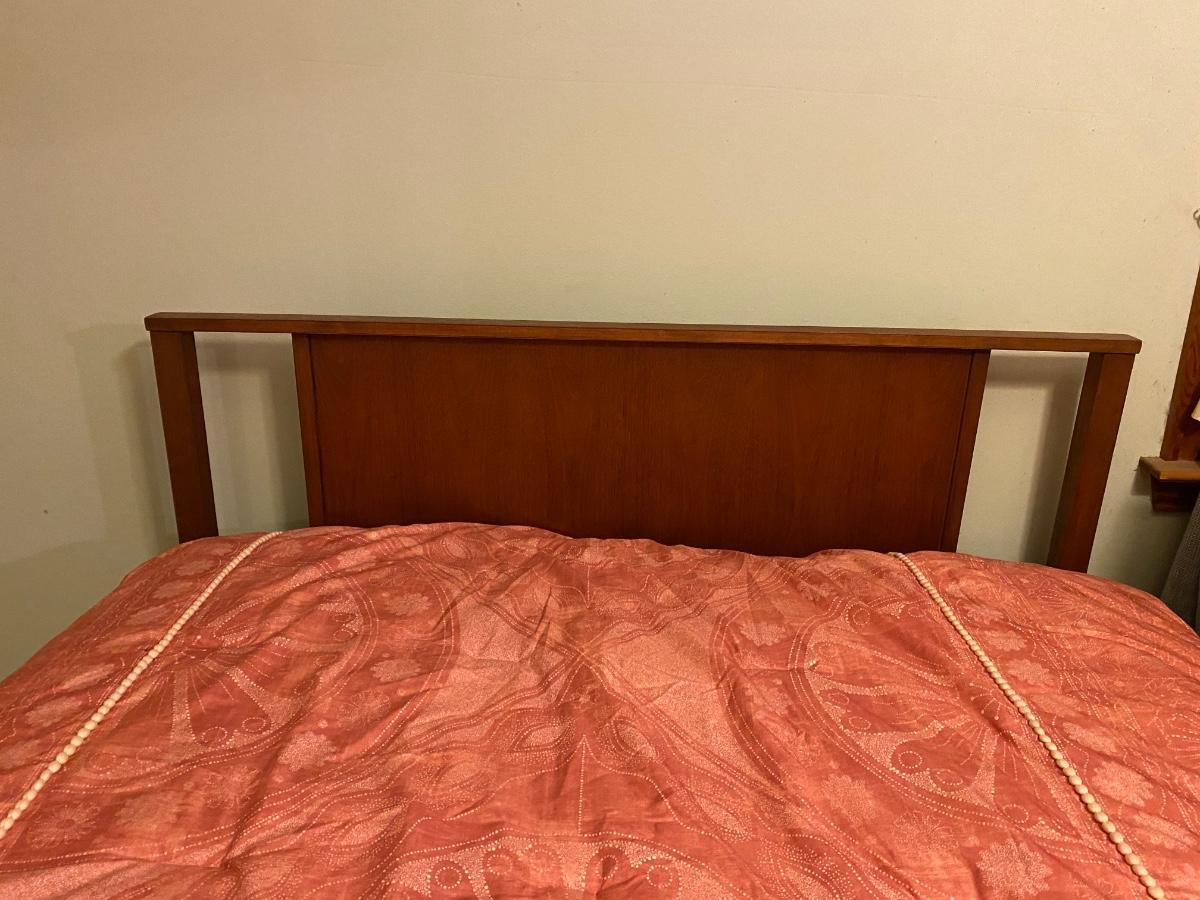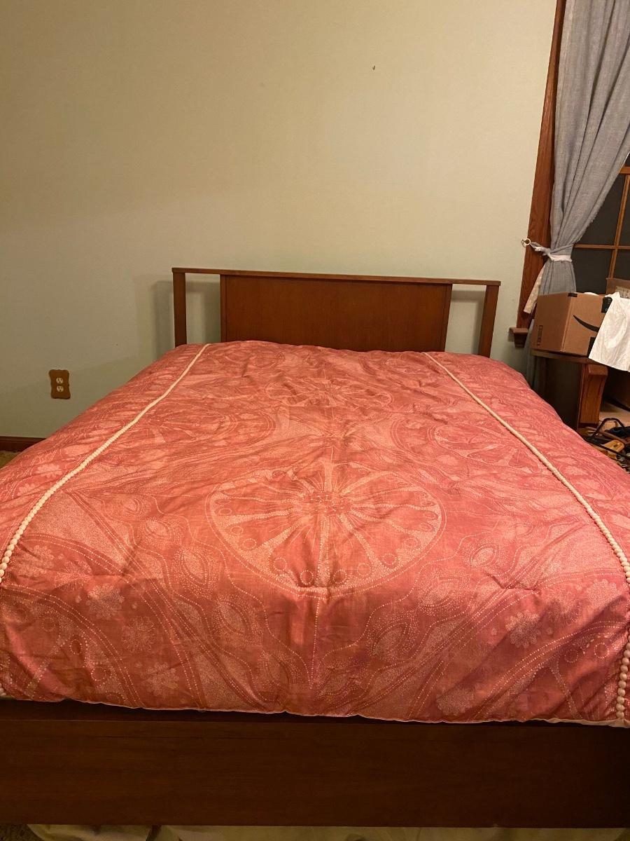 Mid century modern all wood full size bed. Mattress & box spring can be included