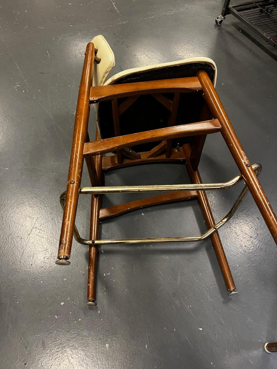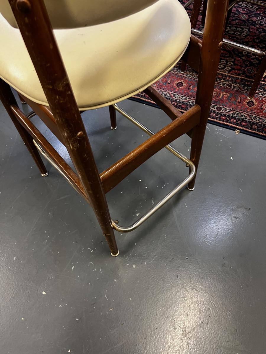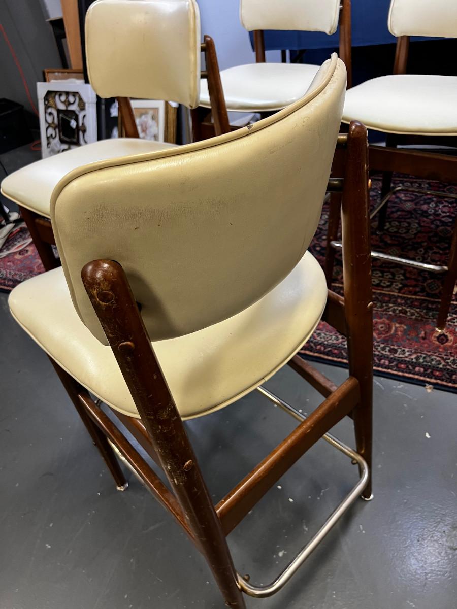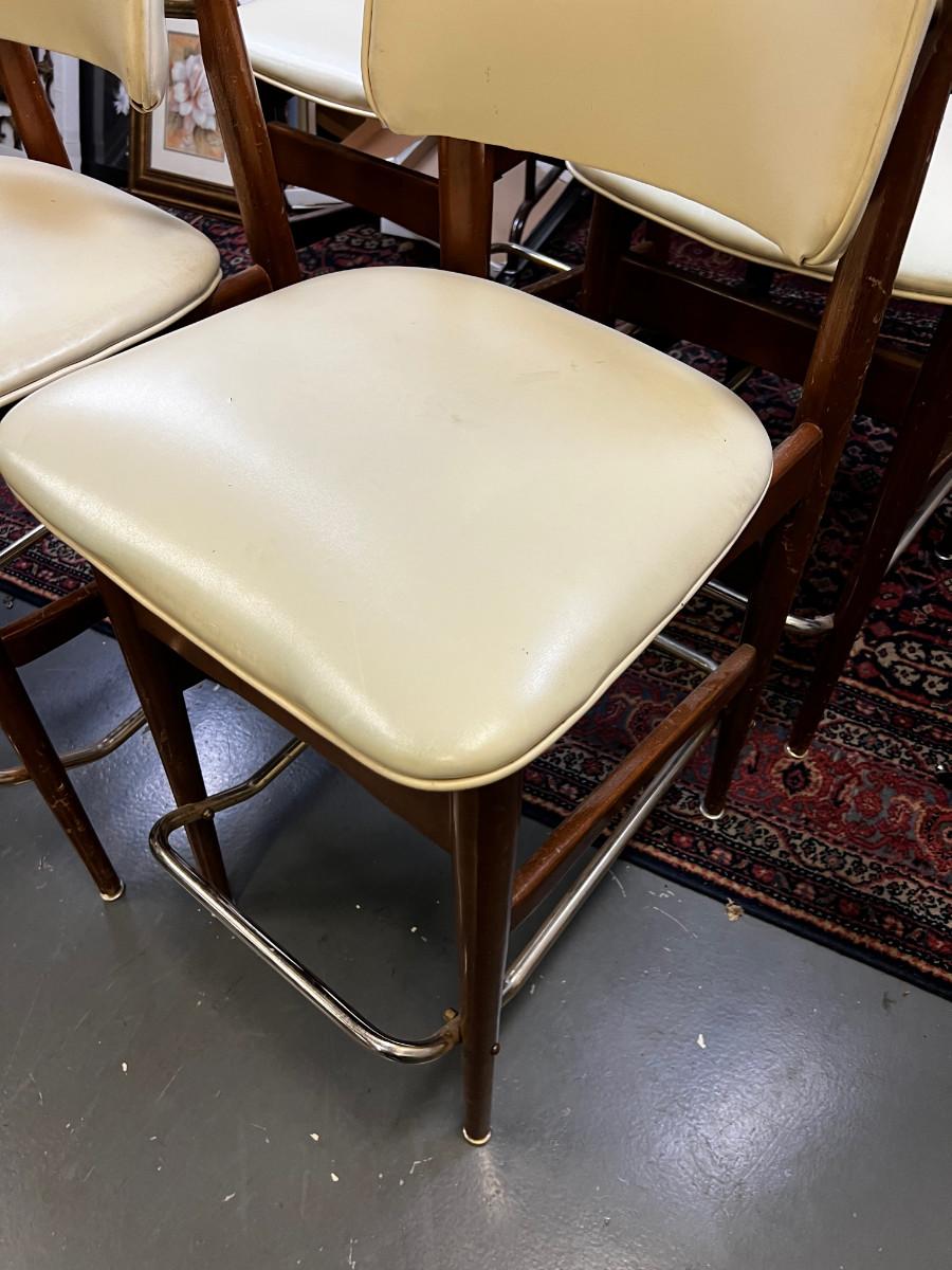 Mid Century Modern Bar Stools(4) White and Wood, With Naugahyde seat