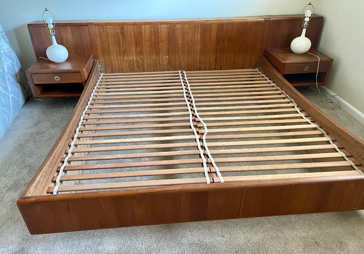 King Size Mid Century Danish Modern Bed with floating nightstands