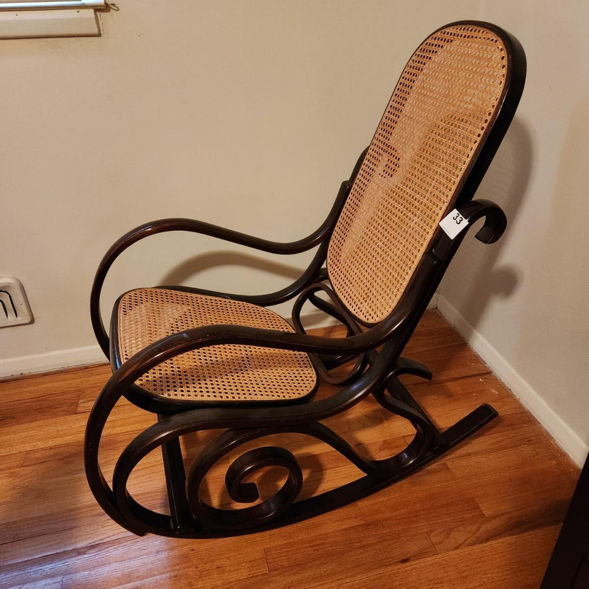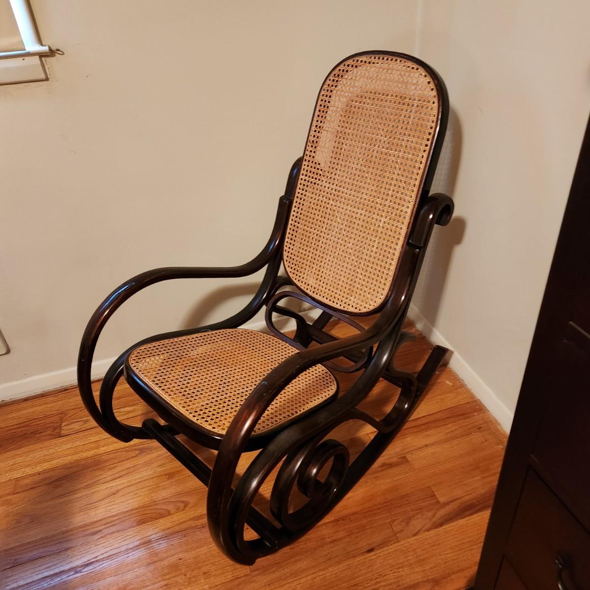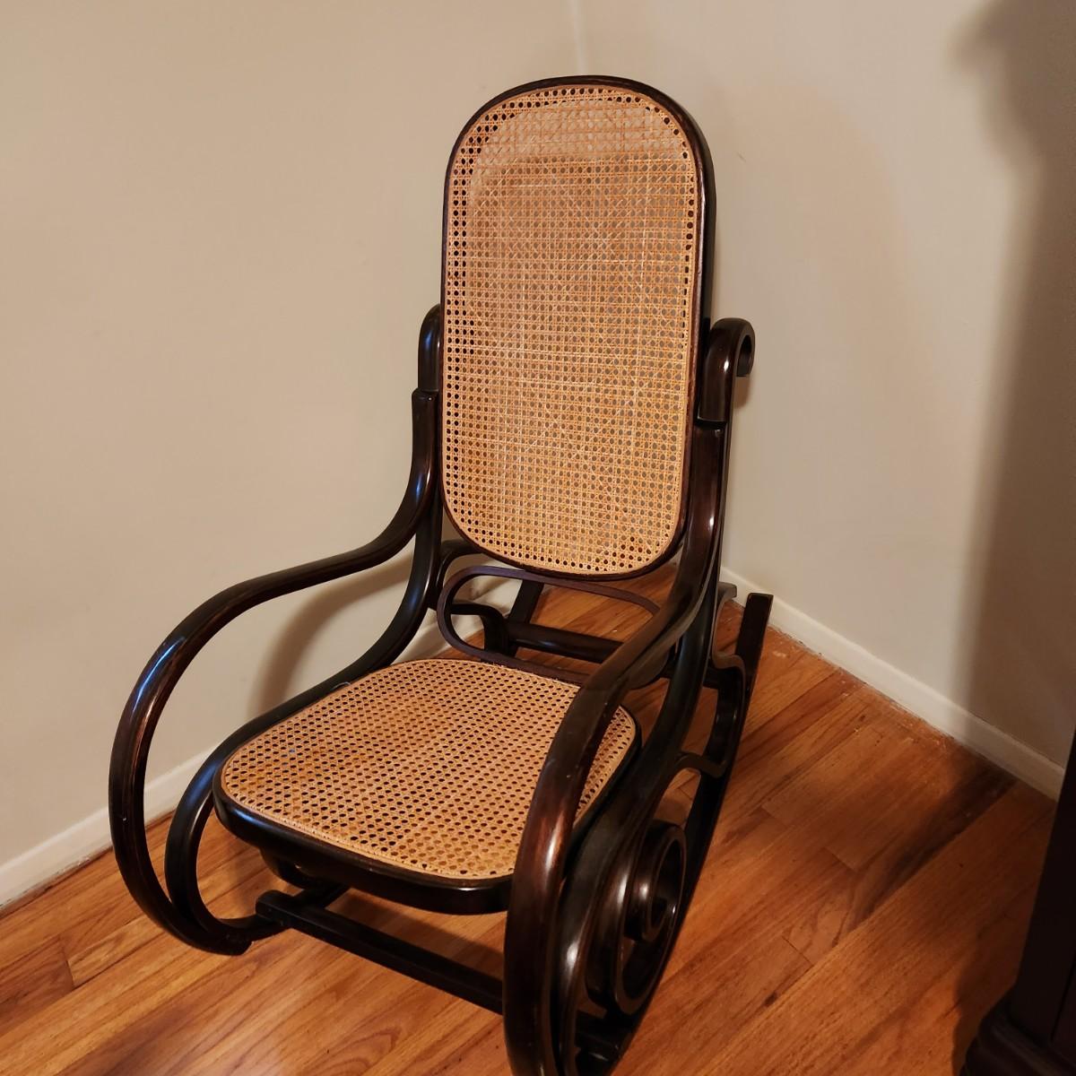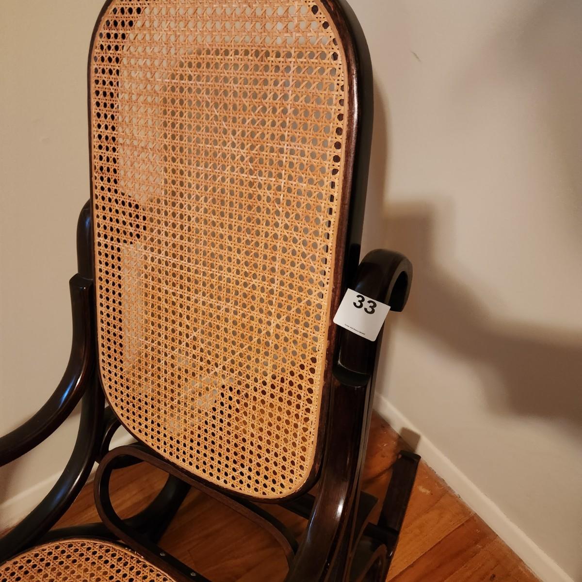 Mid Century Modern Bohemian Cane Seat Bentwood Gliding Nursery Rocking Chair