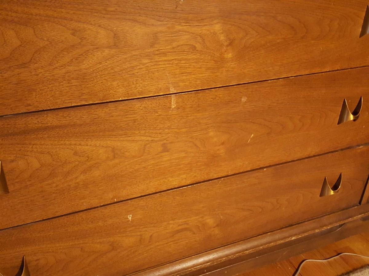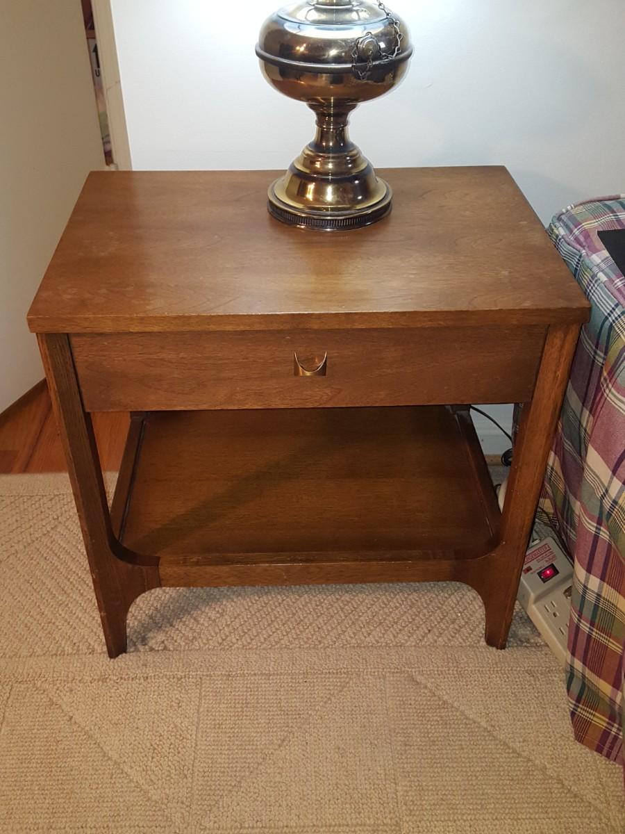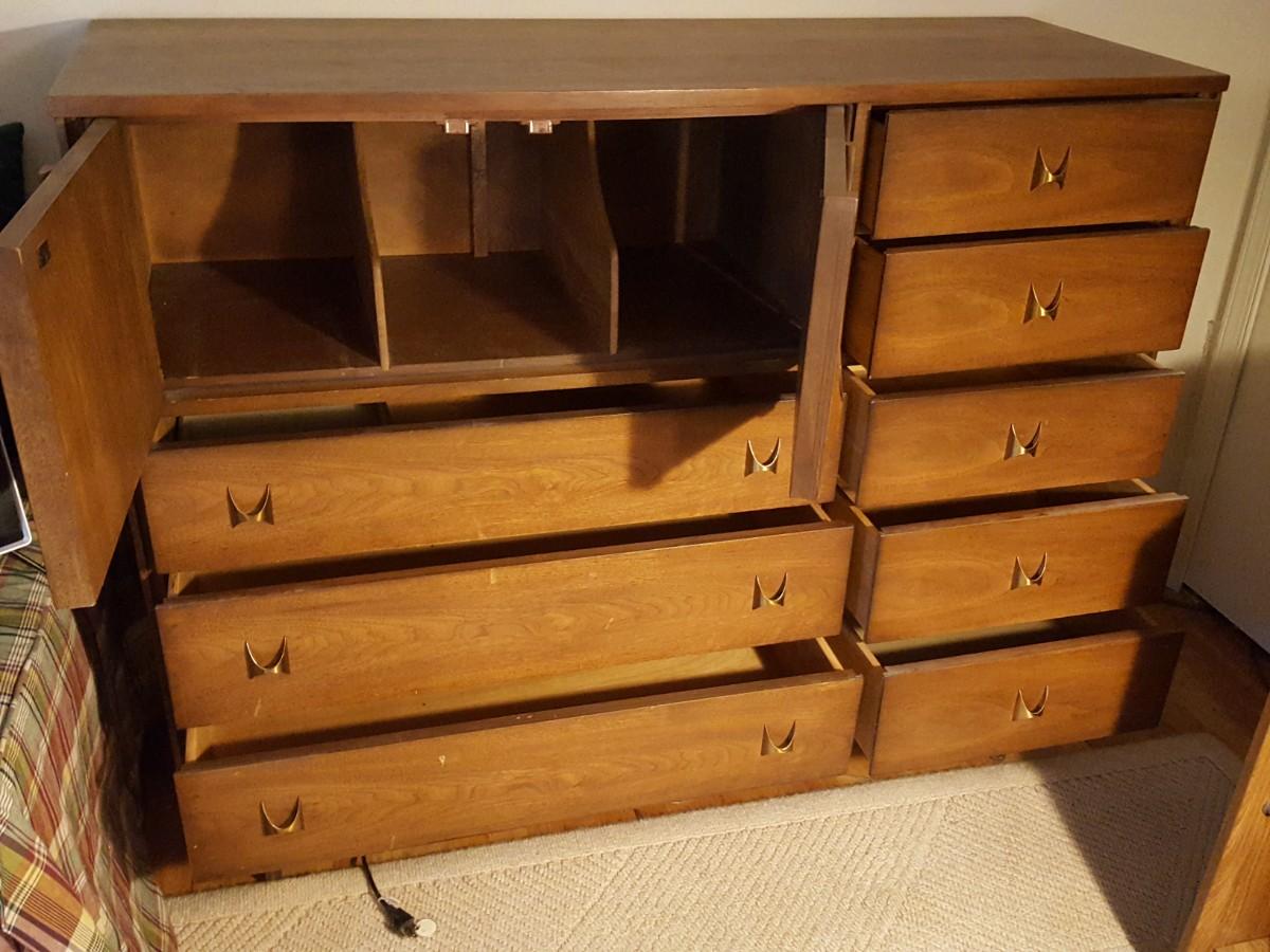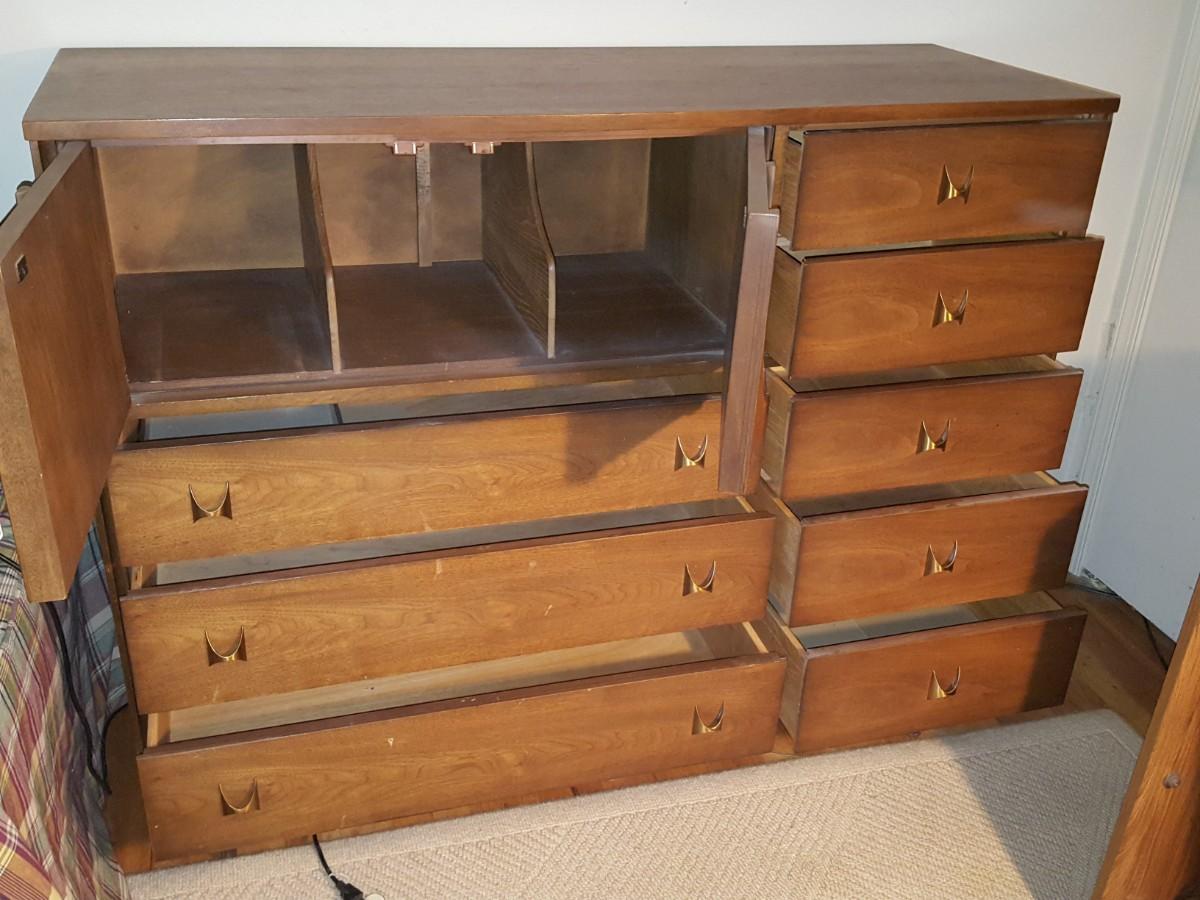 Mid Century Modern Broyhill Magna Walnut Highboy Bedroom Dresser & Night table