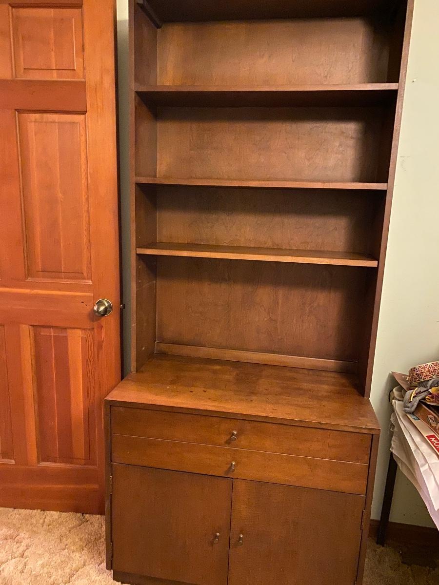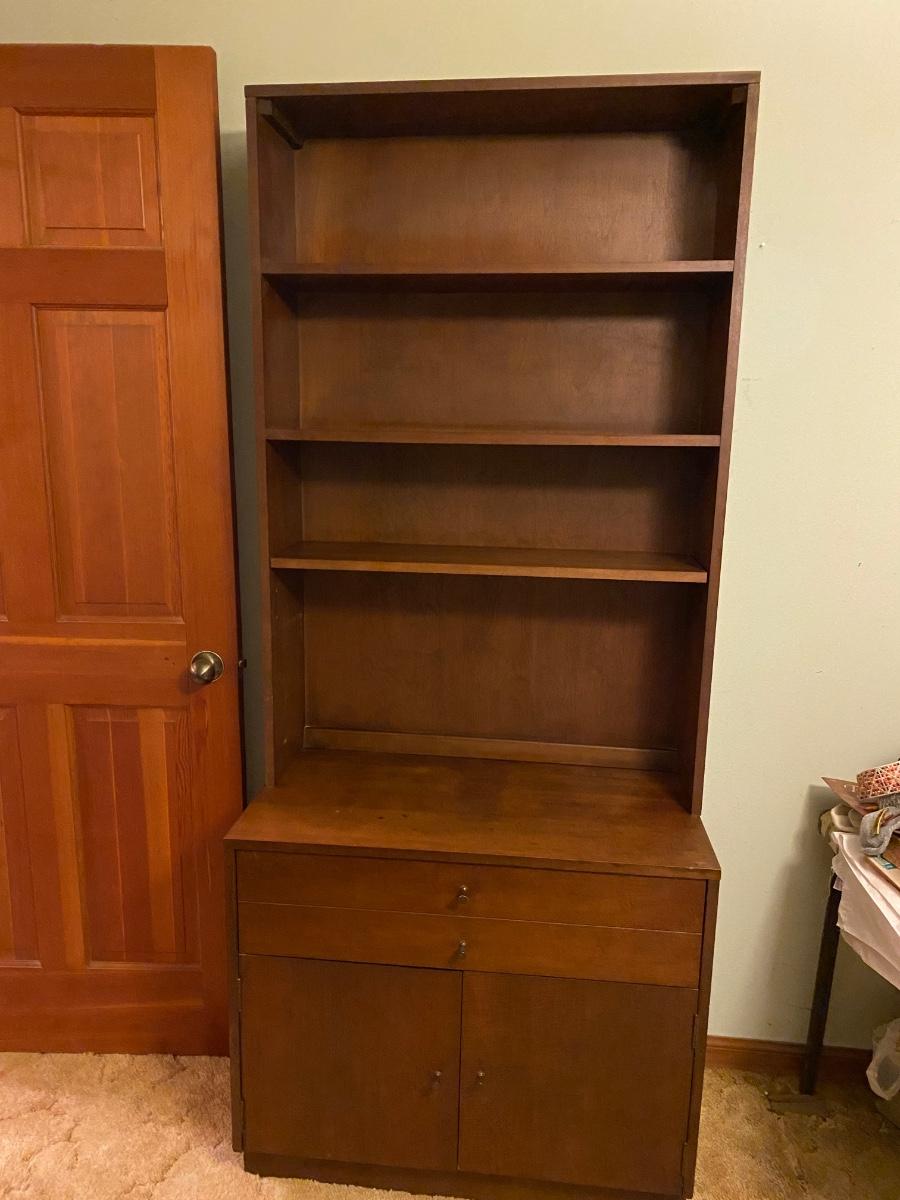Mid century modern chest with hutch, all wood, hutch is not attached. Approx 32w x 75h. Very good condition