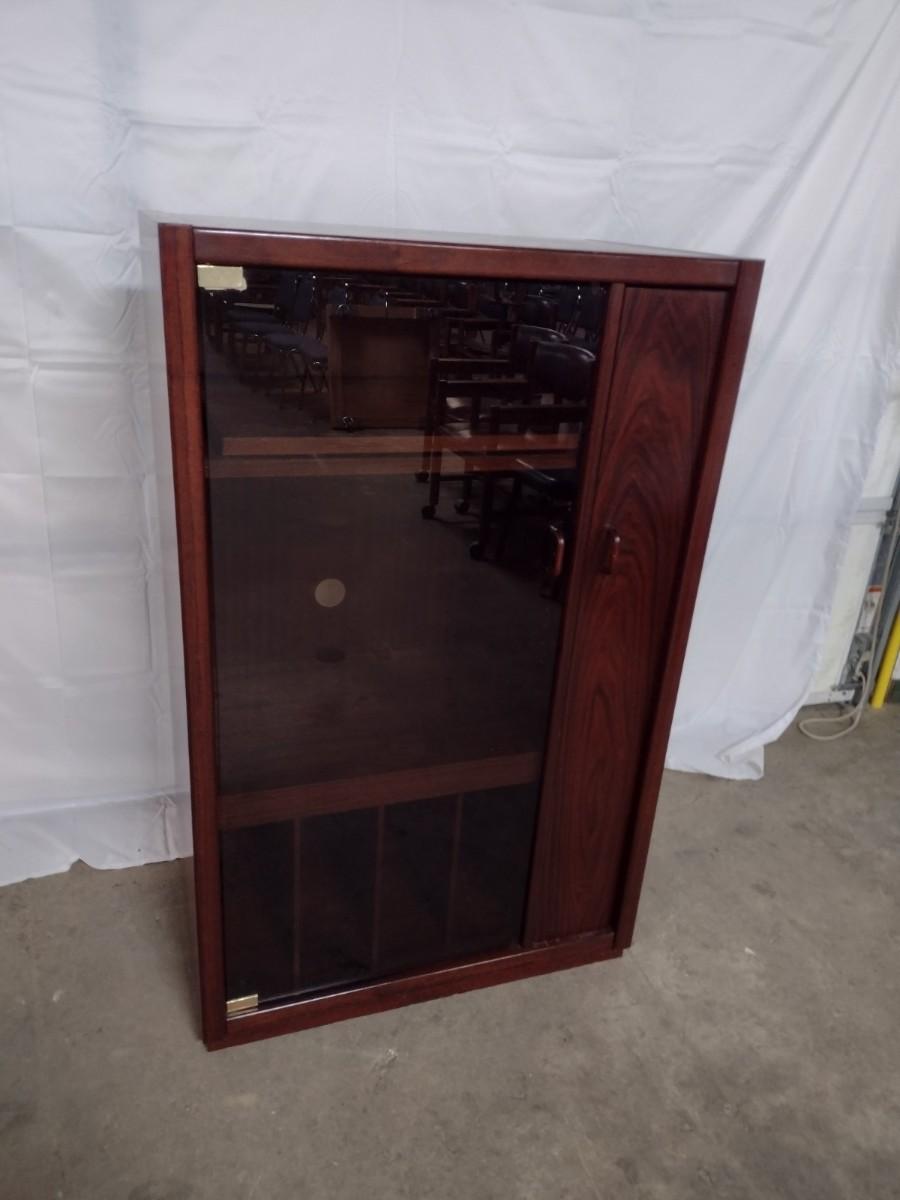 Mid Century Modern Design Media Cabinet with Vinyl Record Storage, Turntable Shelf, and CD Slide Drawer. This is a truly incredible piece. Very heavy, Belgian Made and extremely eye appealing.