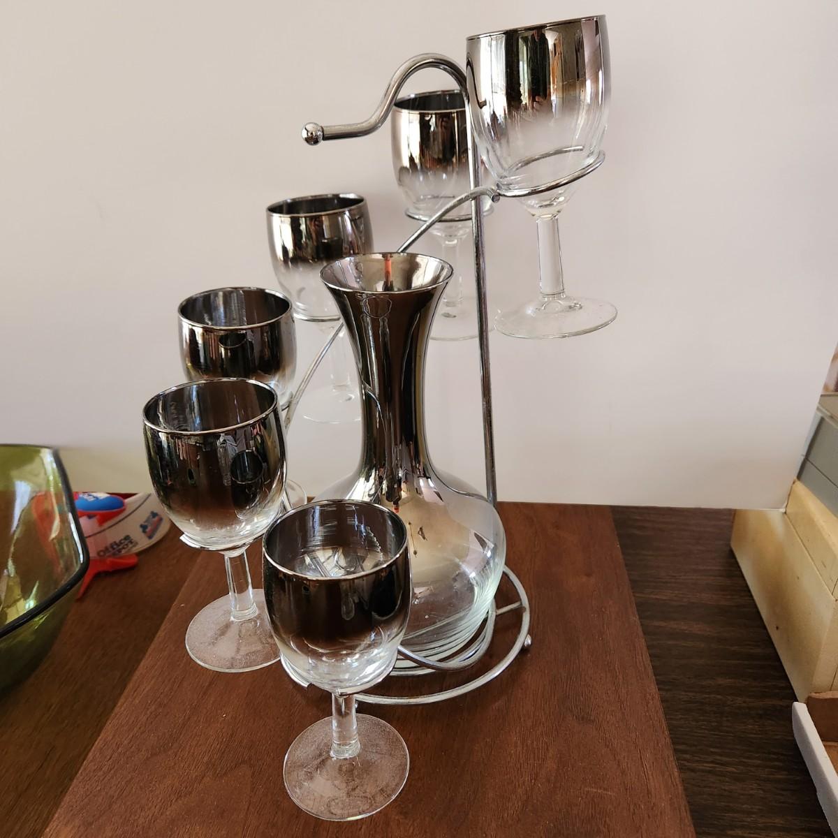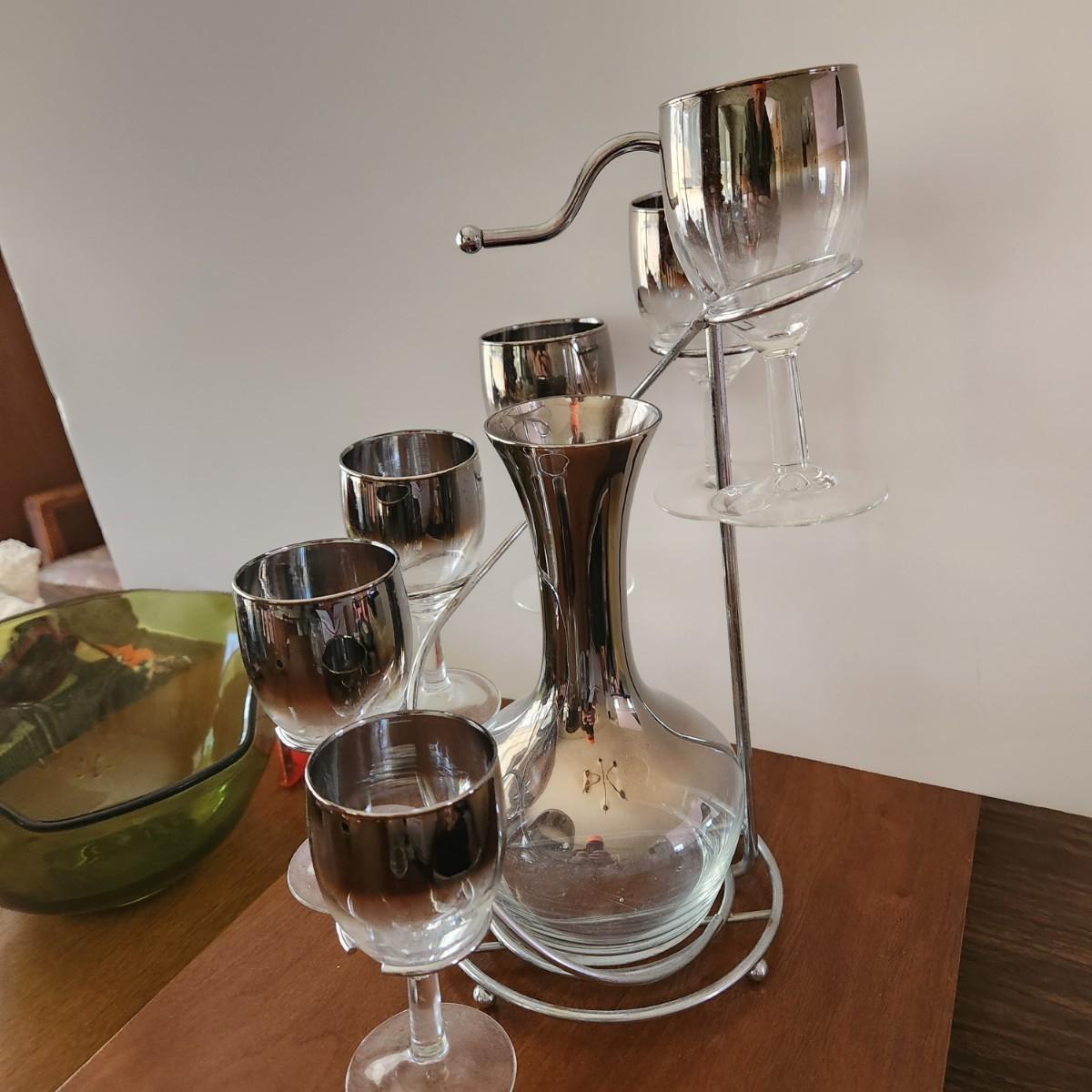 Mid Century Modern  Dorothy Thorpe Wine Glasses Carafe Spiral Caddy MCM