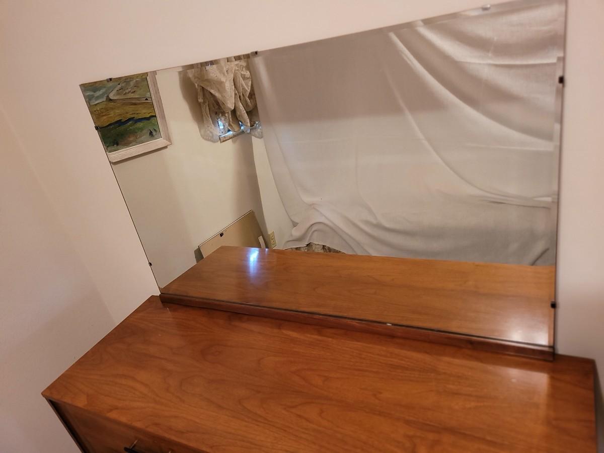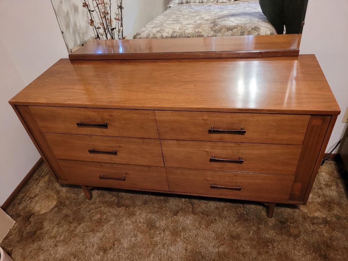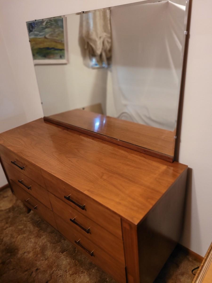 56" wide, 30" tall to top of dresser, mirror is another 31" tall and 19" deep.