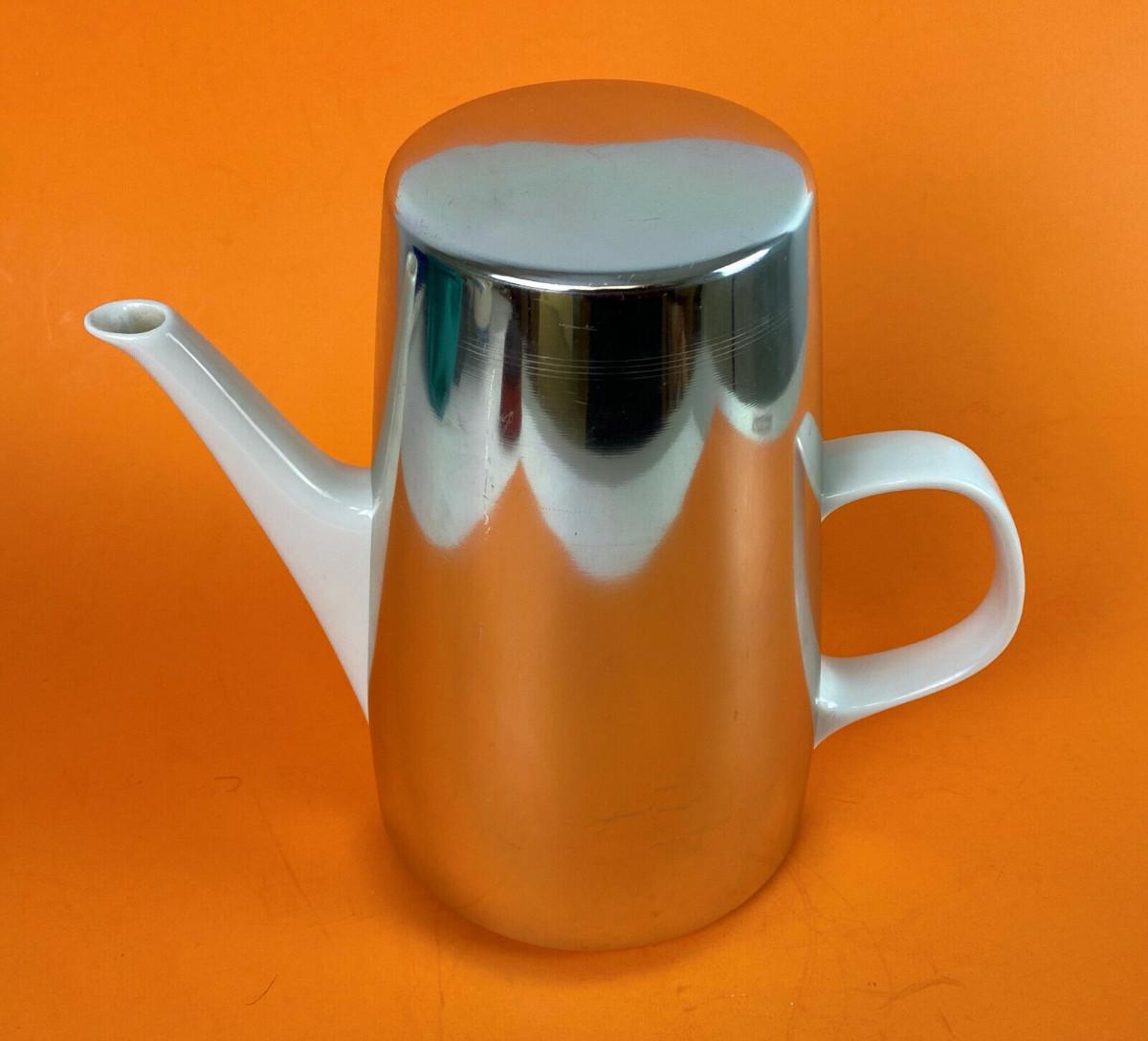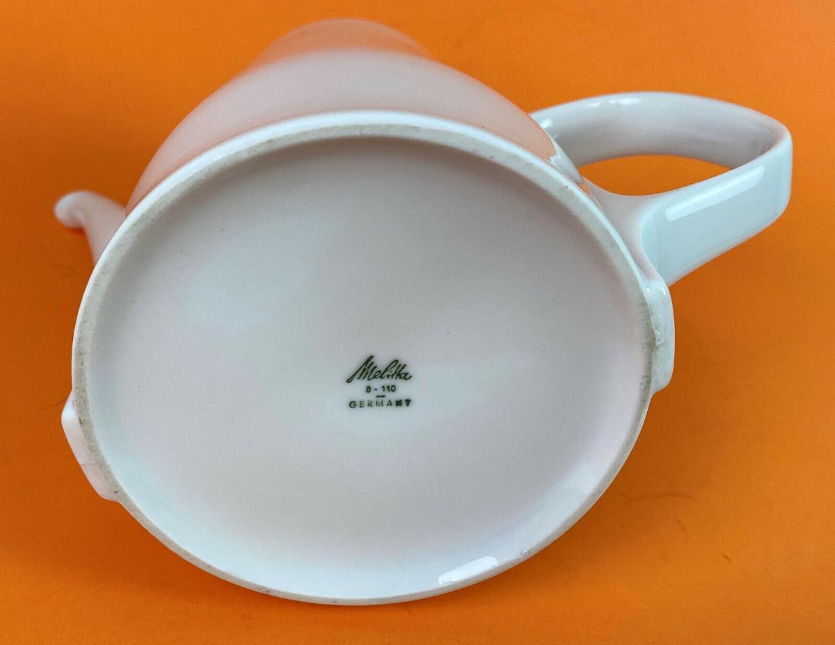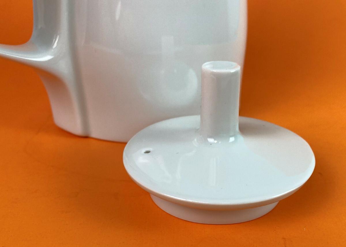 Minimalist design on this Mid Century Modern porcelain coffee pot and warming cover from Melitta the German coffee company...Circa 1950's-1960's...Condition is excellent...as shown...Stands approx 8 inches tall