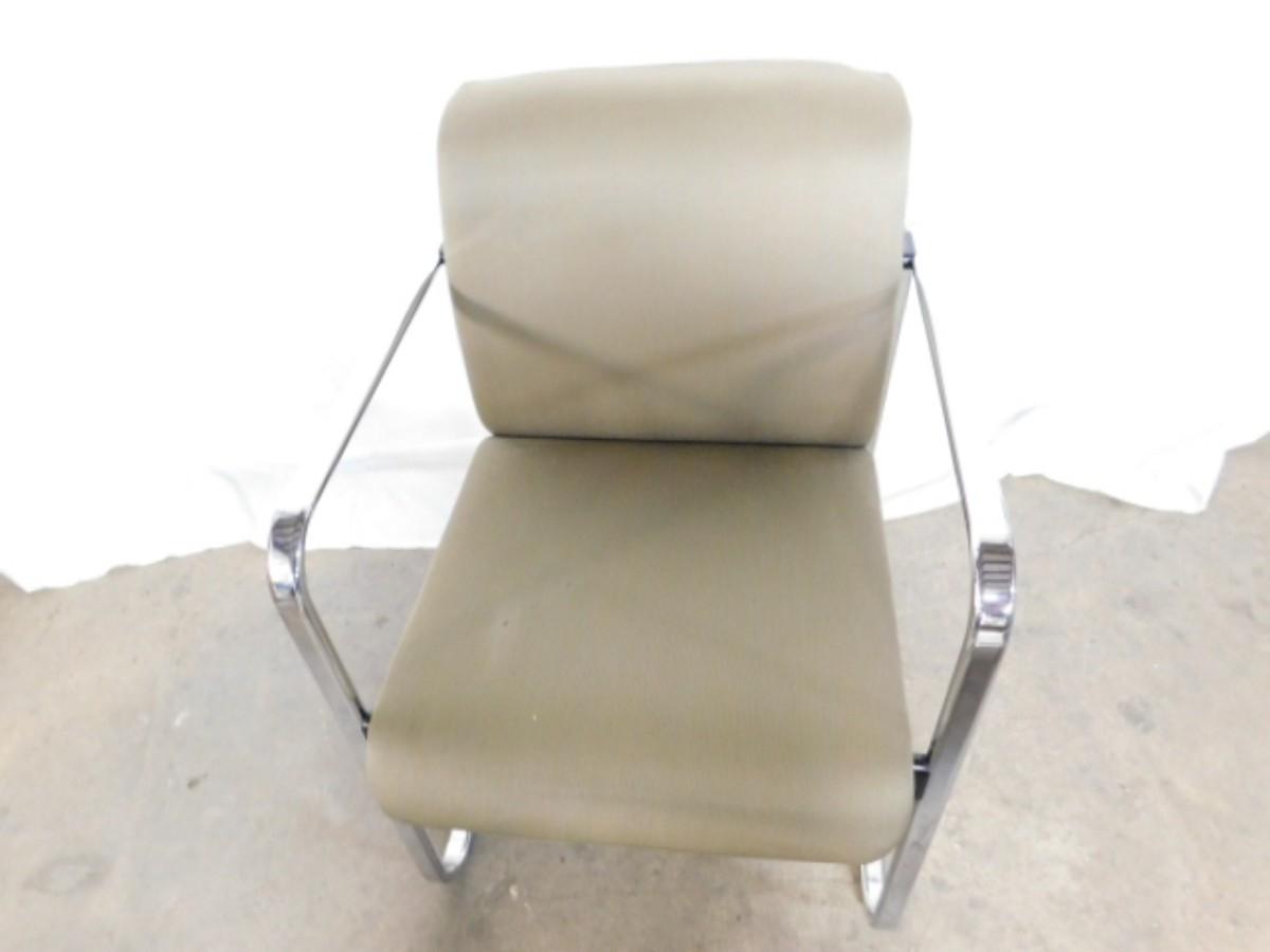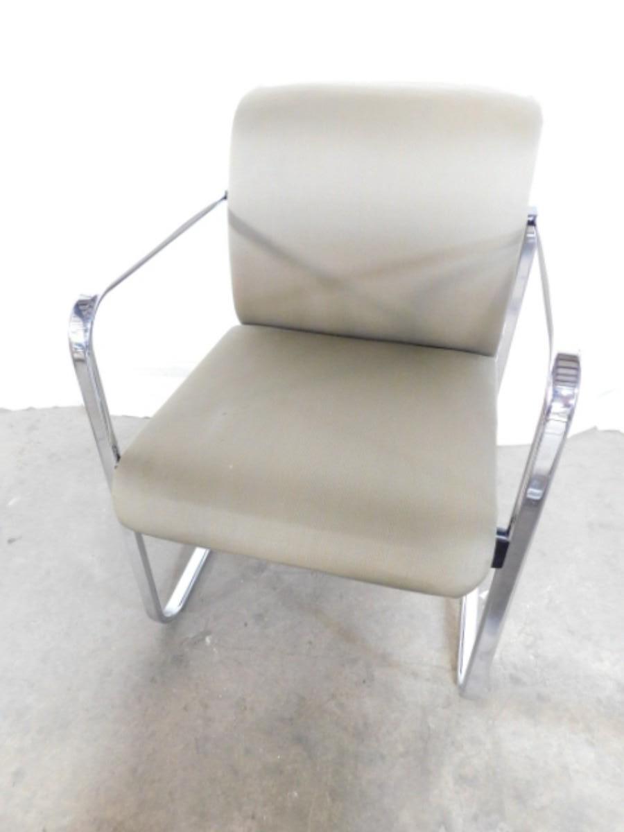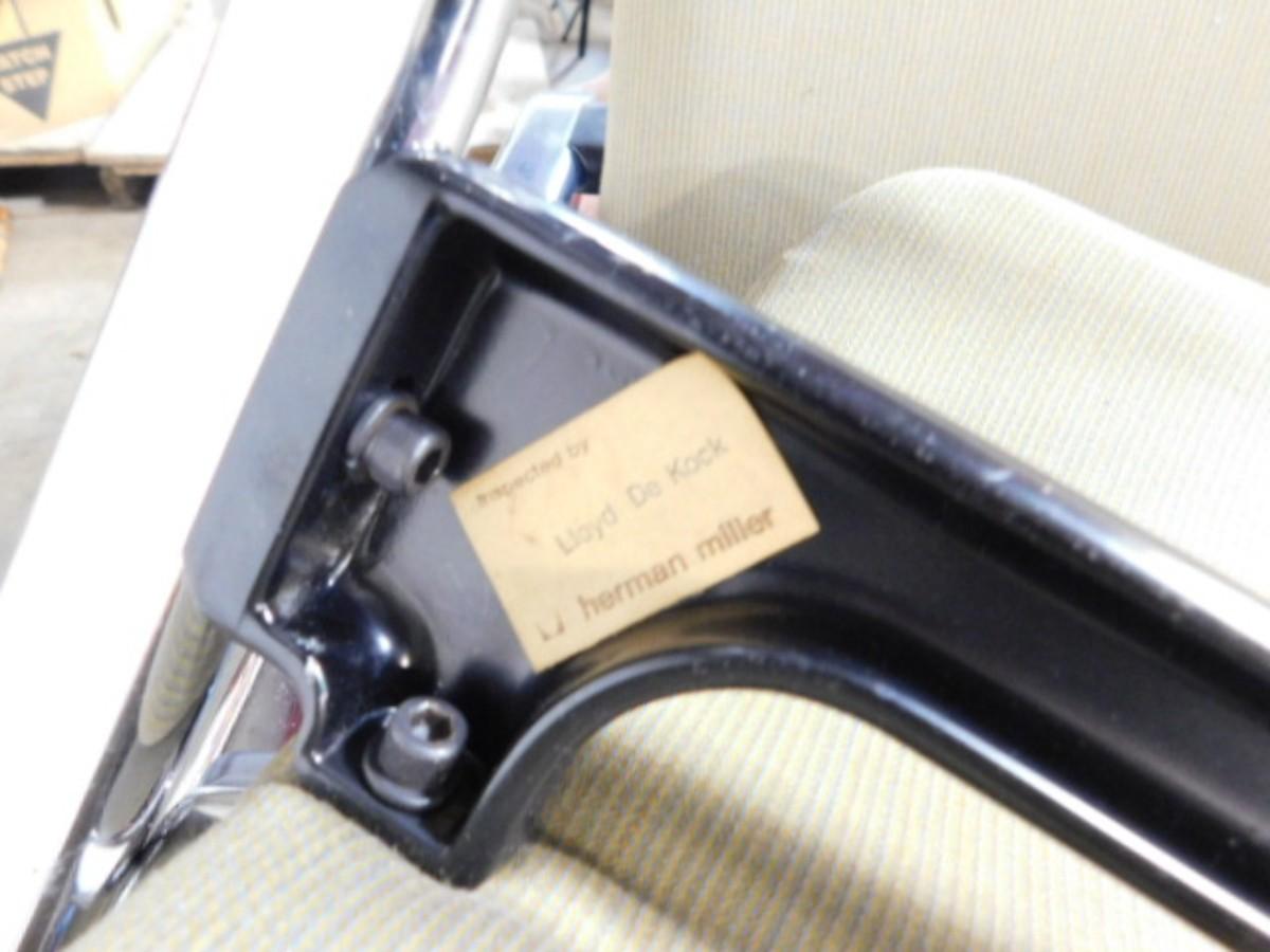 Mid Century Modern Herman Miller Upholstered Chair with Chrome Frame Choice A has some minor stains and wear on fabric as shown