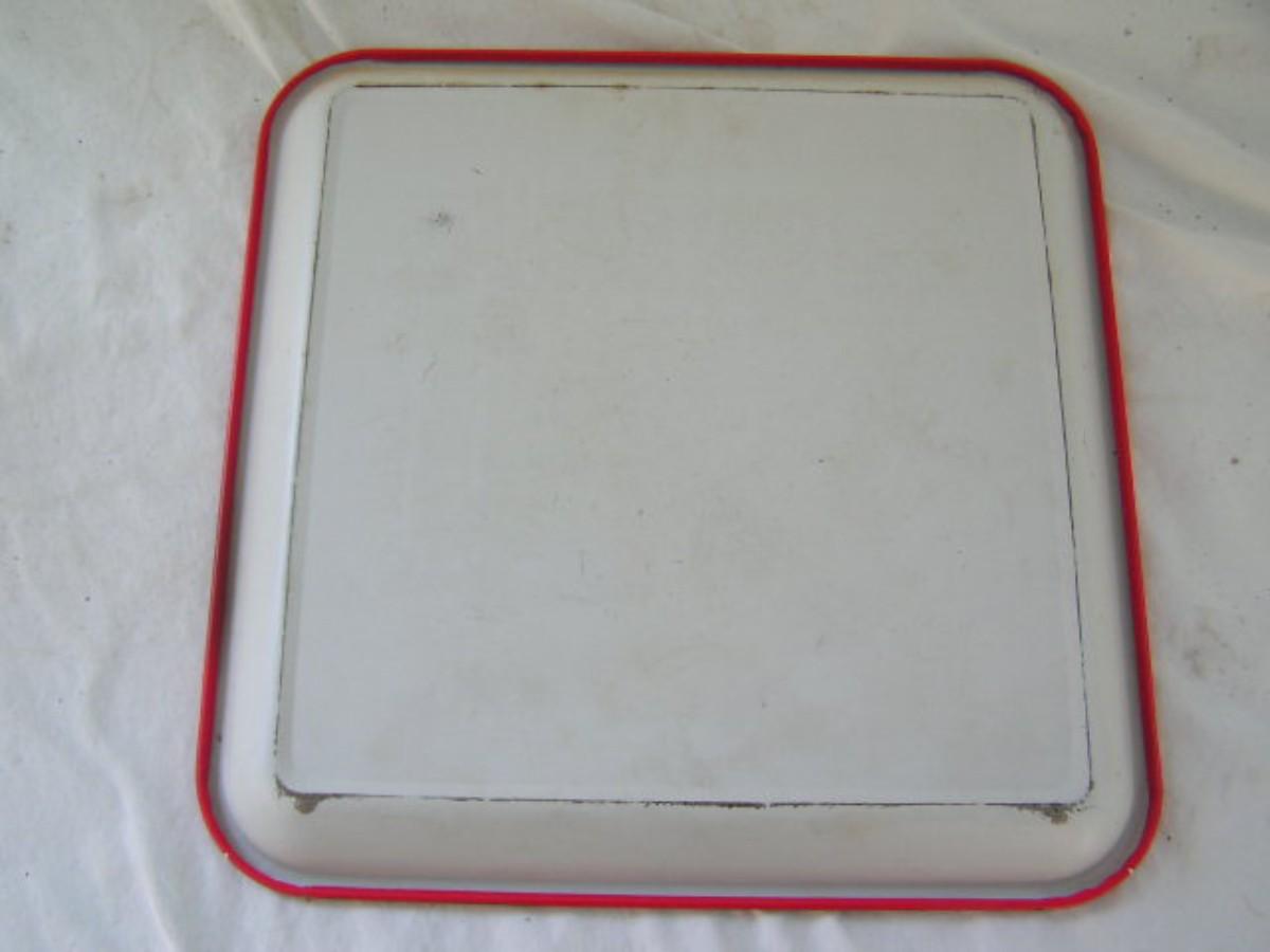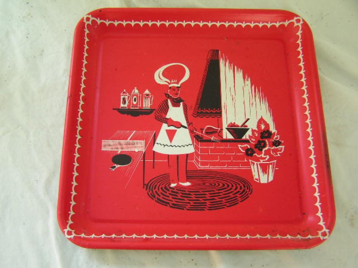 More Mid-Century items like this elsewhere in this sale. Mid Century Modern Marcelline Stoyke stamped steel tray for the BBQ chef at your house. C.1950s vintage, very collectible. Very Good (VG) condition. About 13-1/4" square.