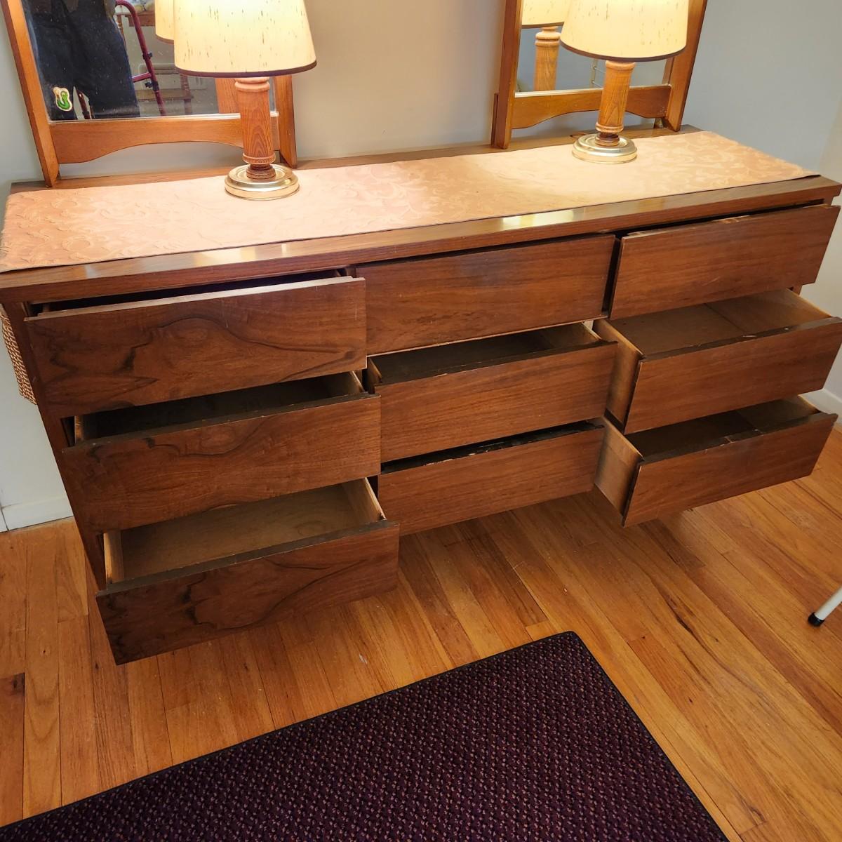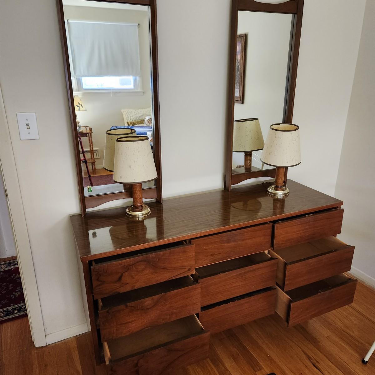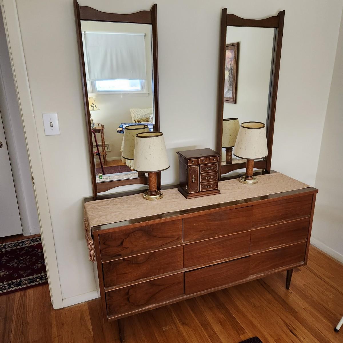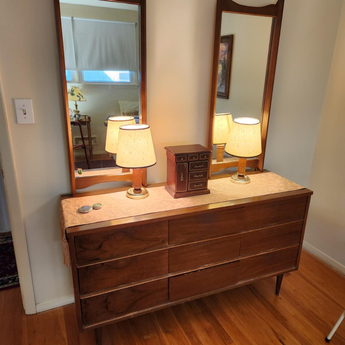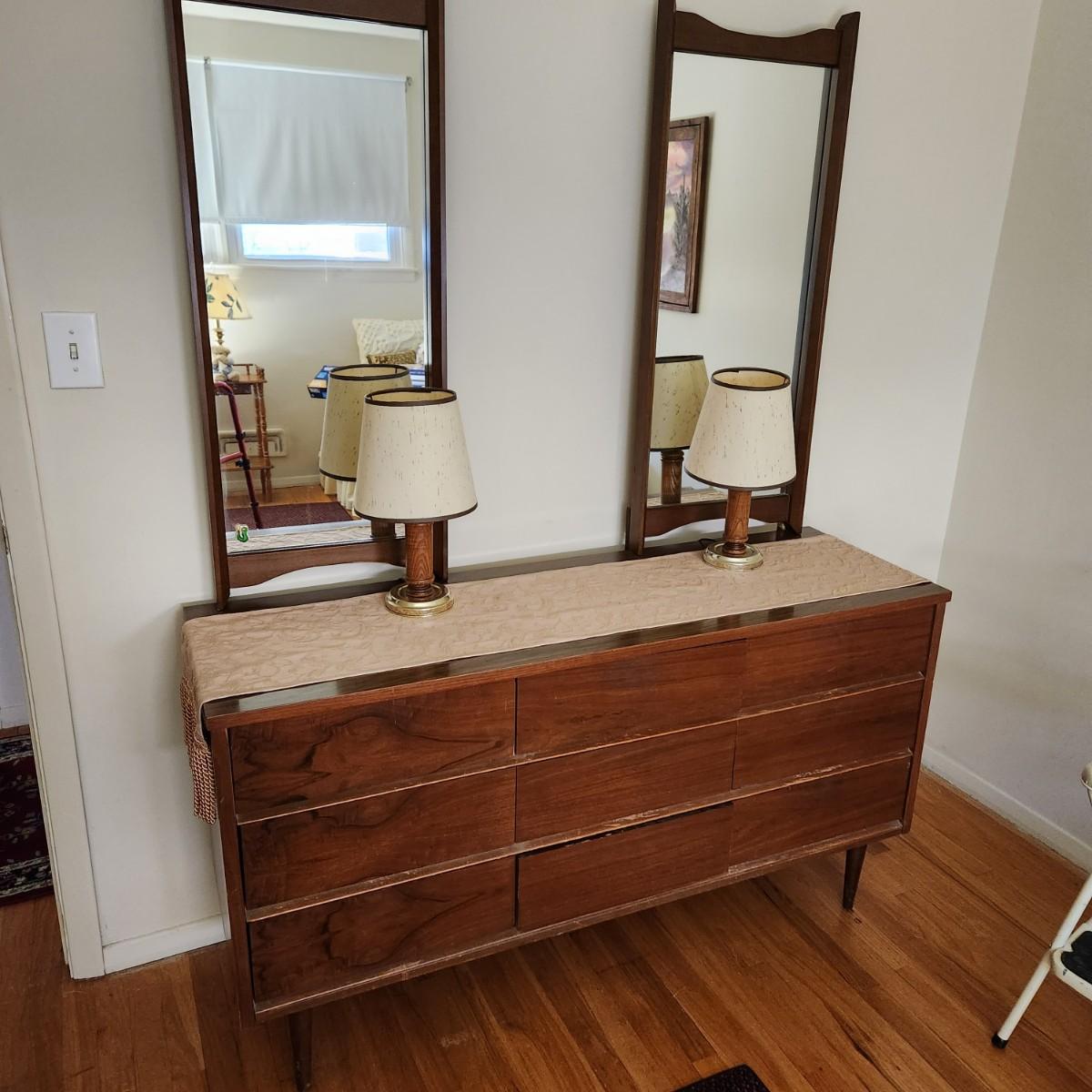 Mid Century Modern MCM Dresser with 2 Mirrors 56x18x31