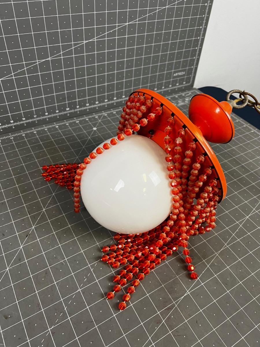 Mid Century Modern Orange Dangle Globe Light Fixture
