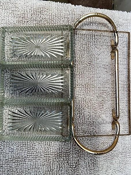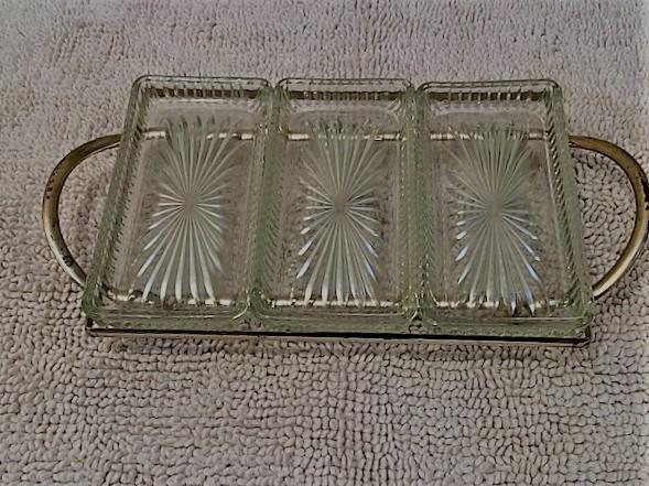 Mid Century Modern Relish Tray with Starburst pressed glass inserts